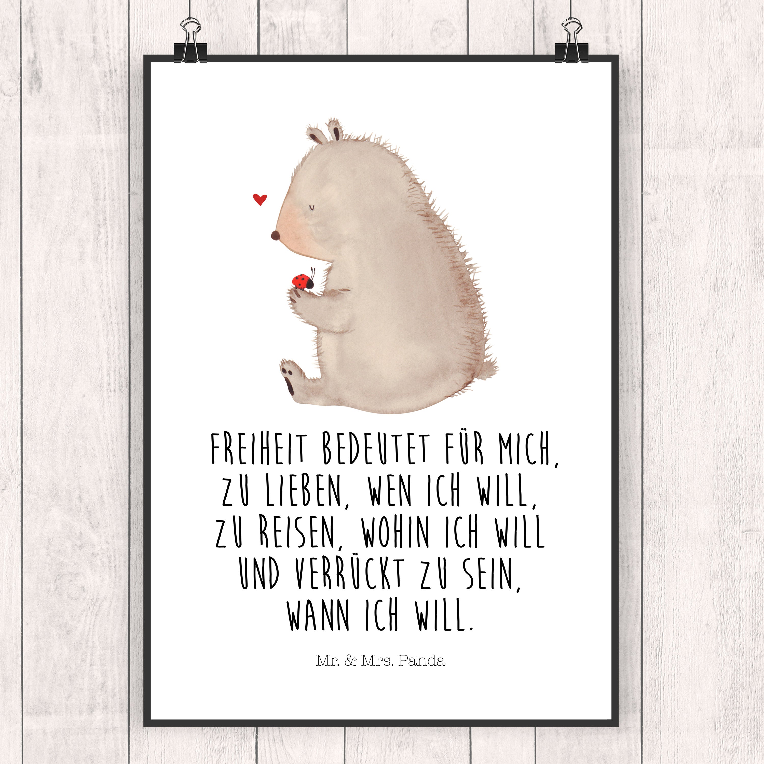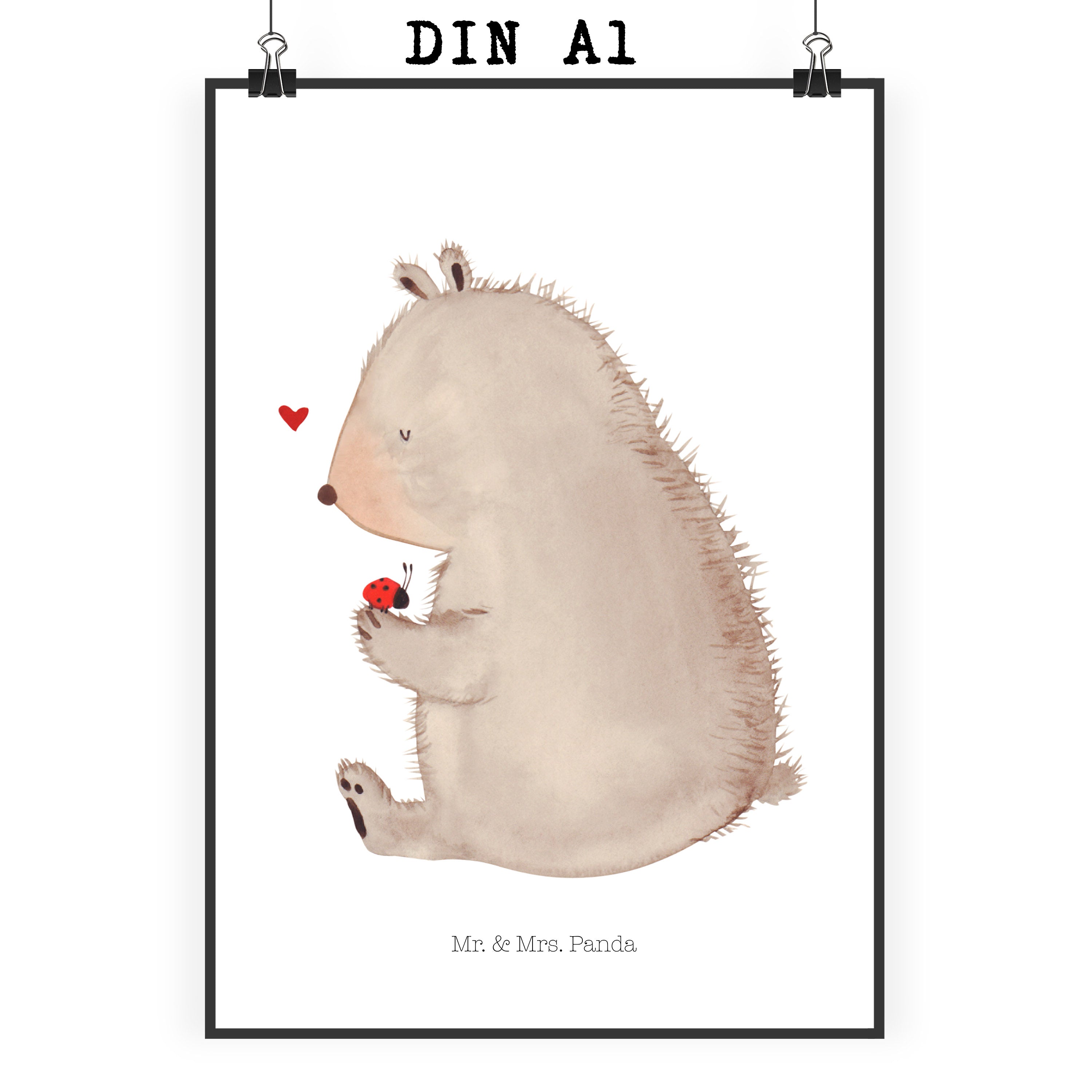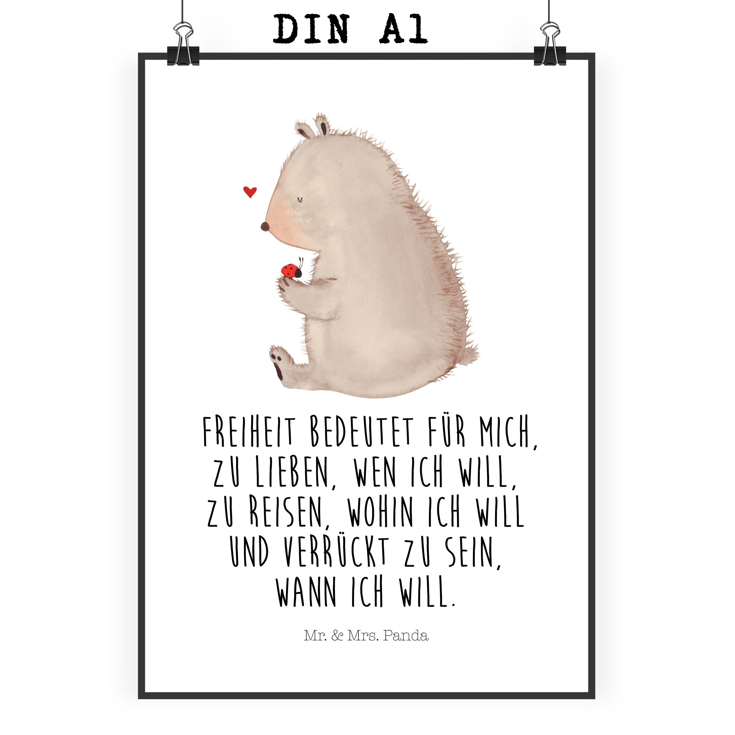 Poster Bär mit Marienkäfer Poster, Wandposter, Bild, Wanddeko, Küchenposter, Kinderposter, Wanddeko Bild, Raumdekoration, Wanddekoration, Handgemaltes Poster, Mr. & Mrs. Panda Poster, Designposter, Kunstdruck, Posterdruck, Bär, Teddy, Teddybär, Marienkäfer, Liebe, Freiheit, Motivation, Das Leben ist schön
