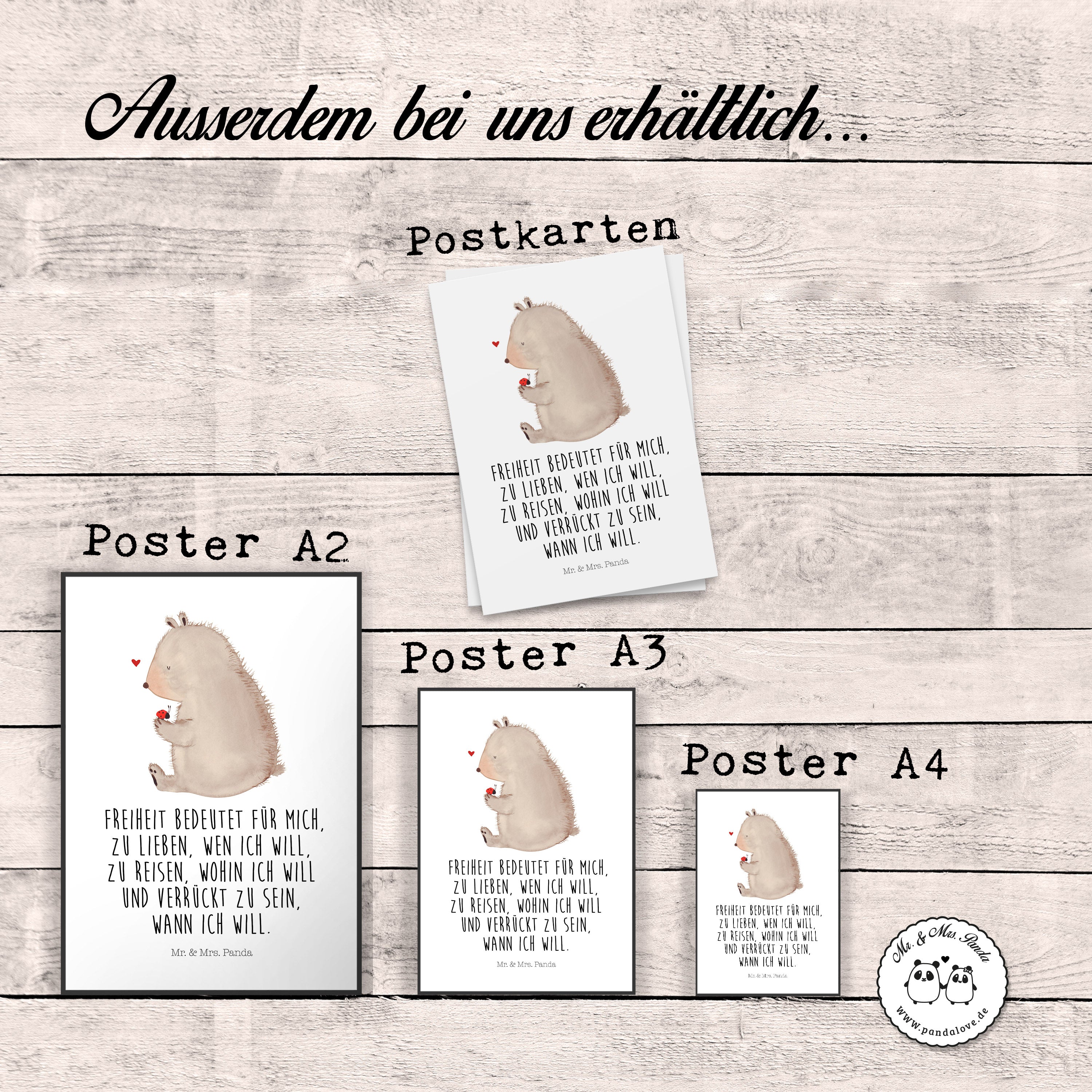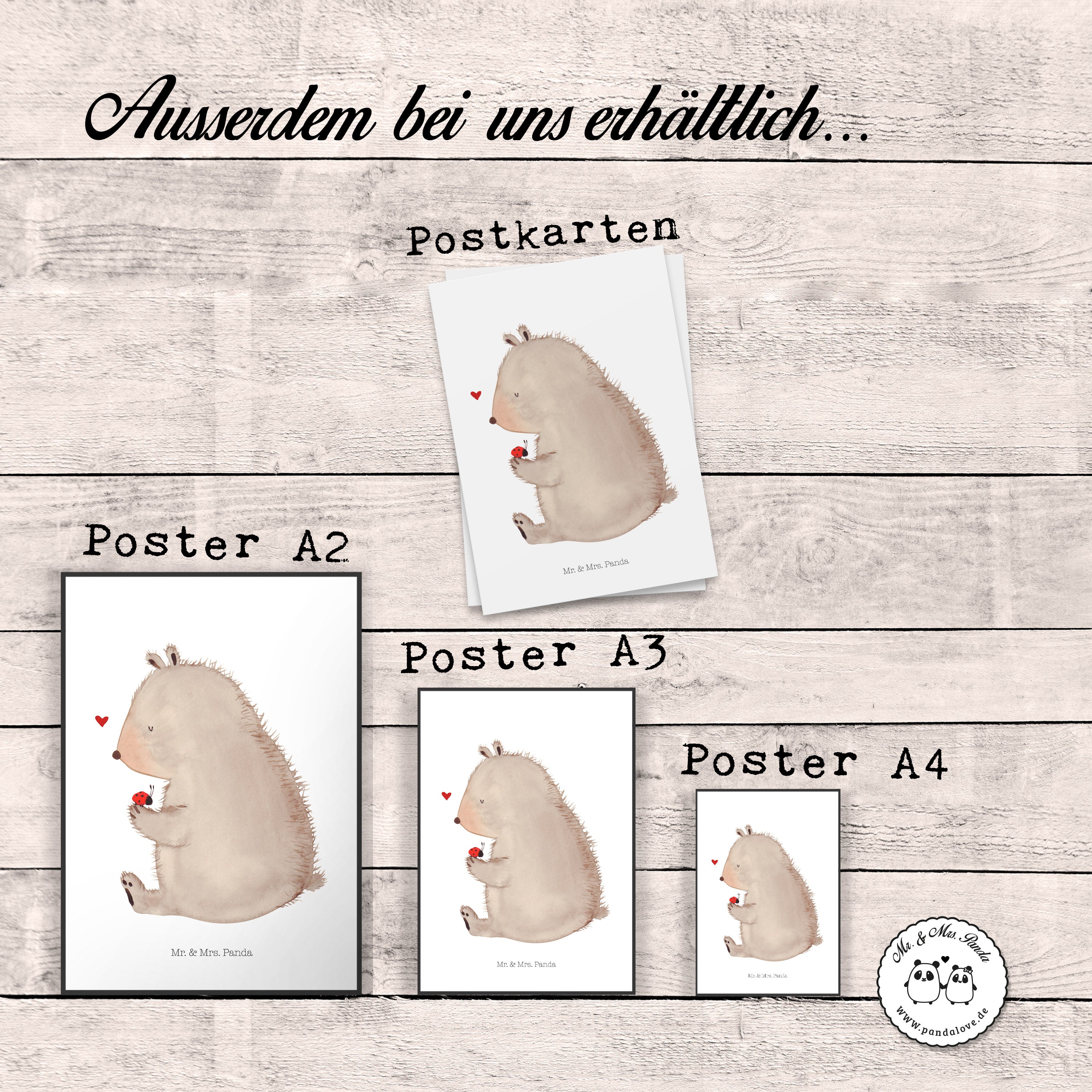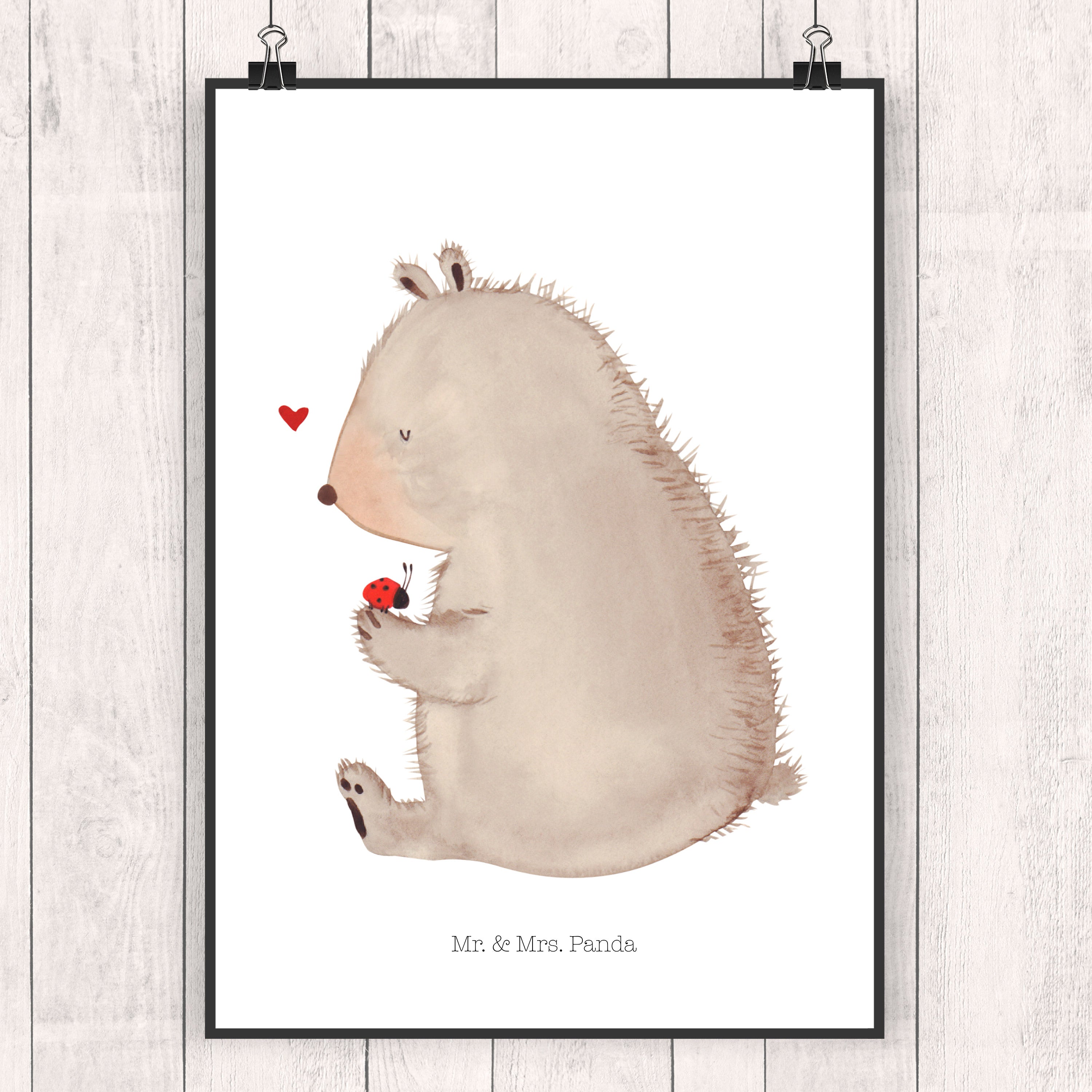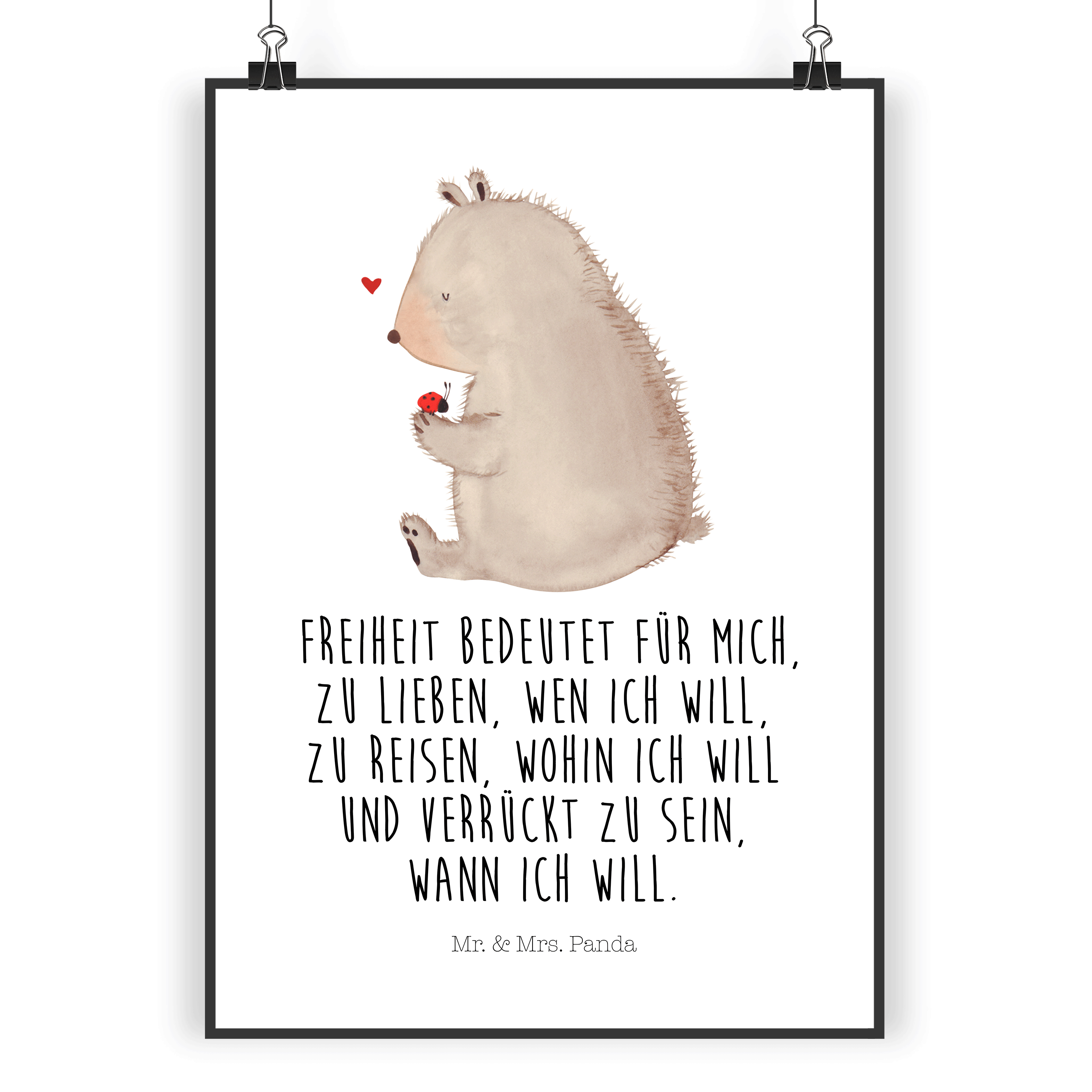 Poster Bär mit Marienkäfer Poster, Wandposter, Bild, Wanddeko, Küchenposter, Kinderposter, Wanddeko Bild, Raumdekoration, Wanddekoration, Handgemaltes Poster, Mr. & Mrs. Panda Poster, Designposter, Kunstdruck, Posterdruck, Bär, Teddy, Teddybär, Marienkäfer, Liebe, Freiheit, Motivation, Das Leben ist schön