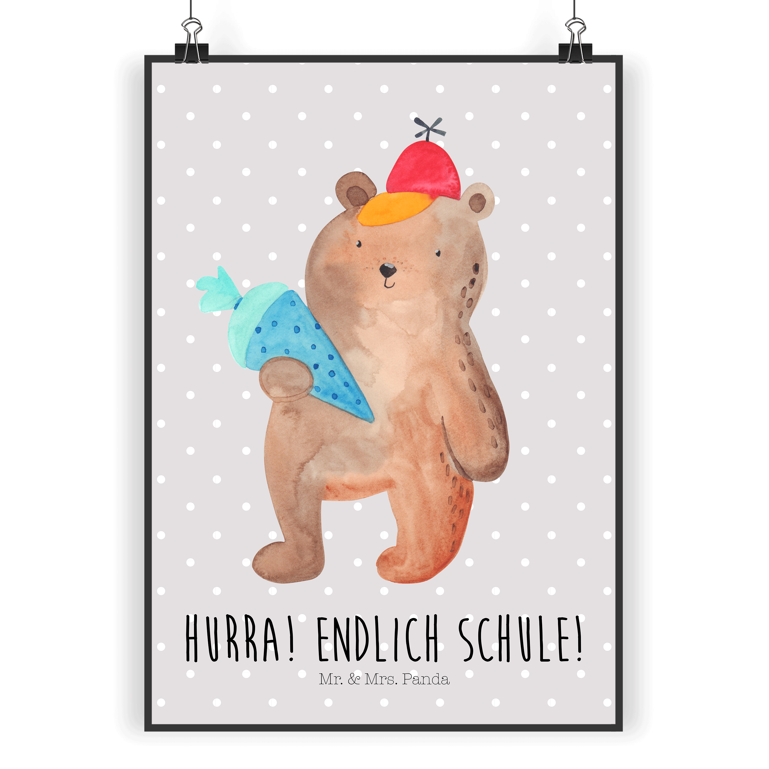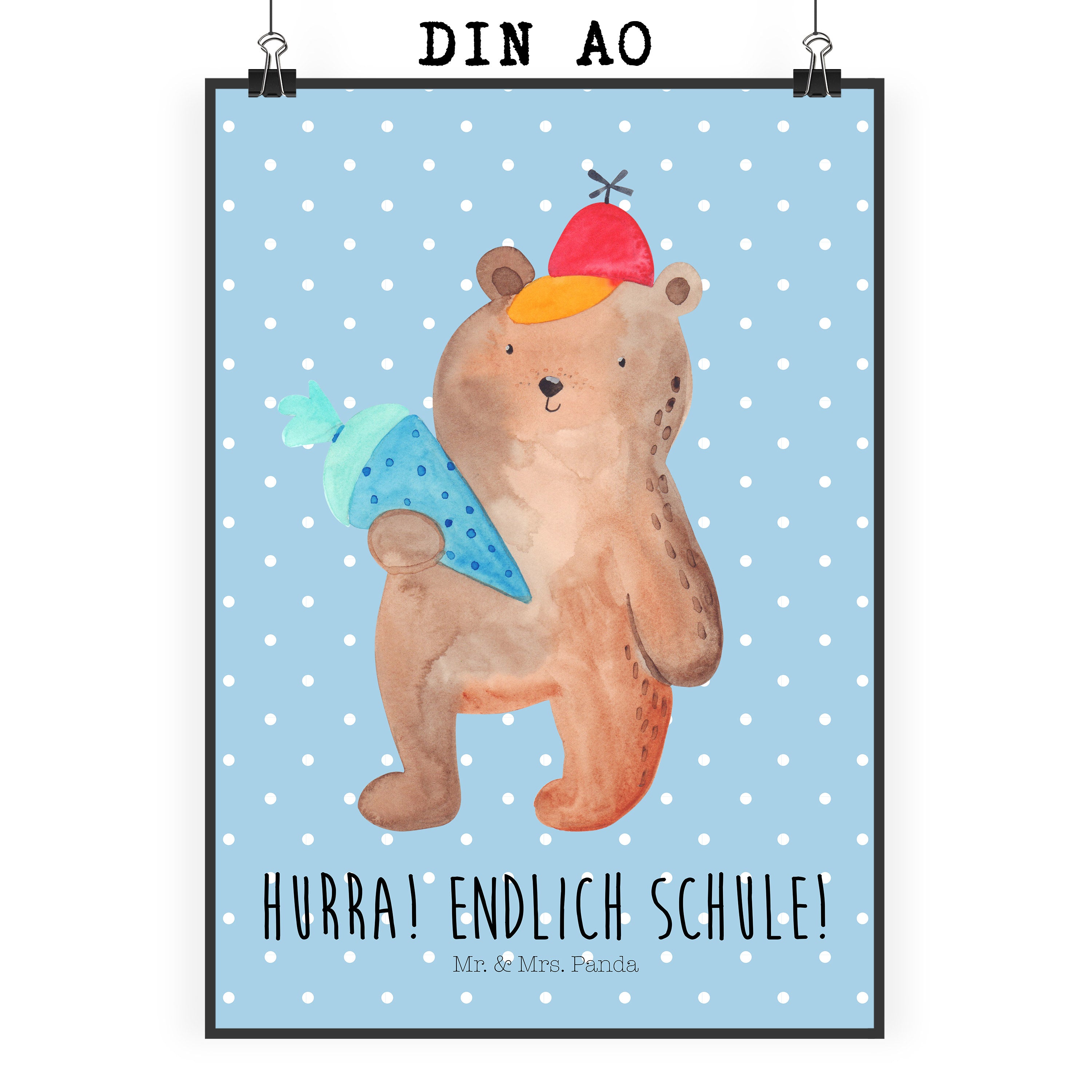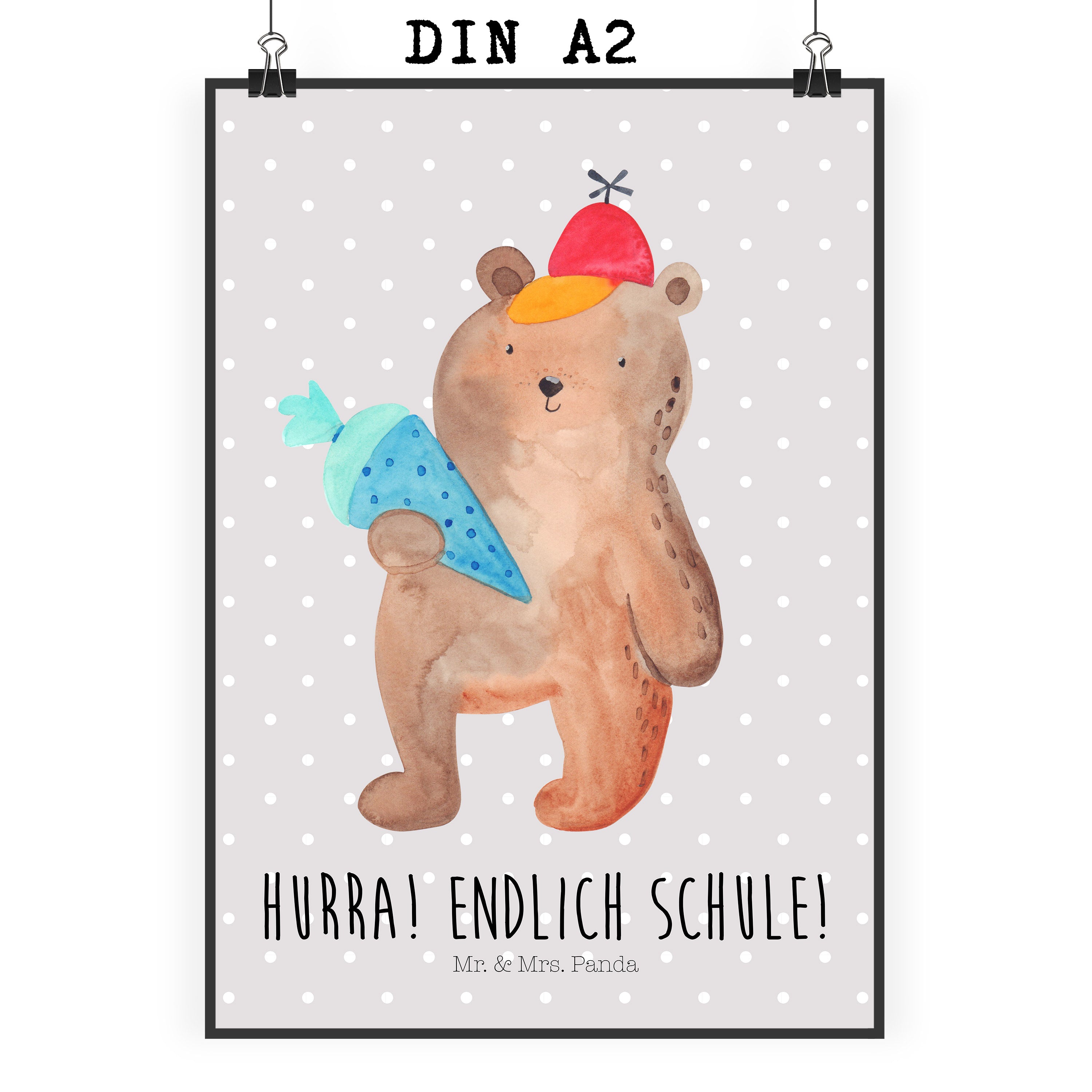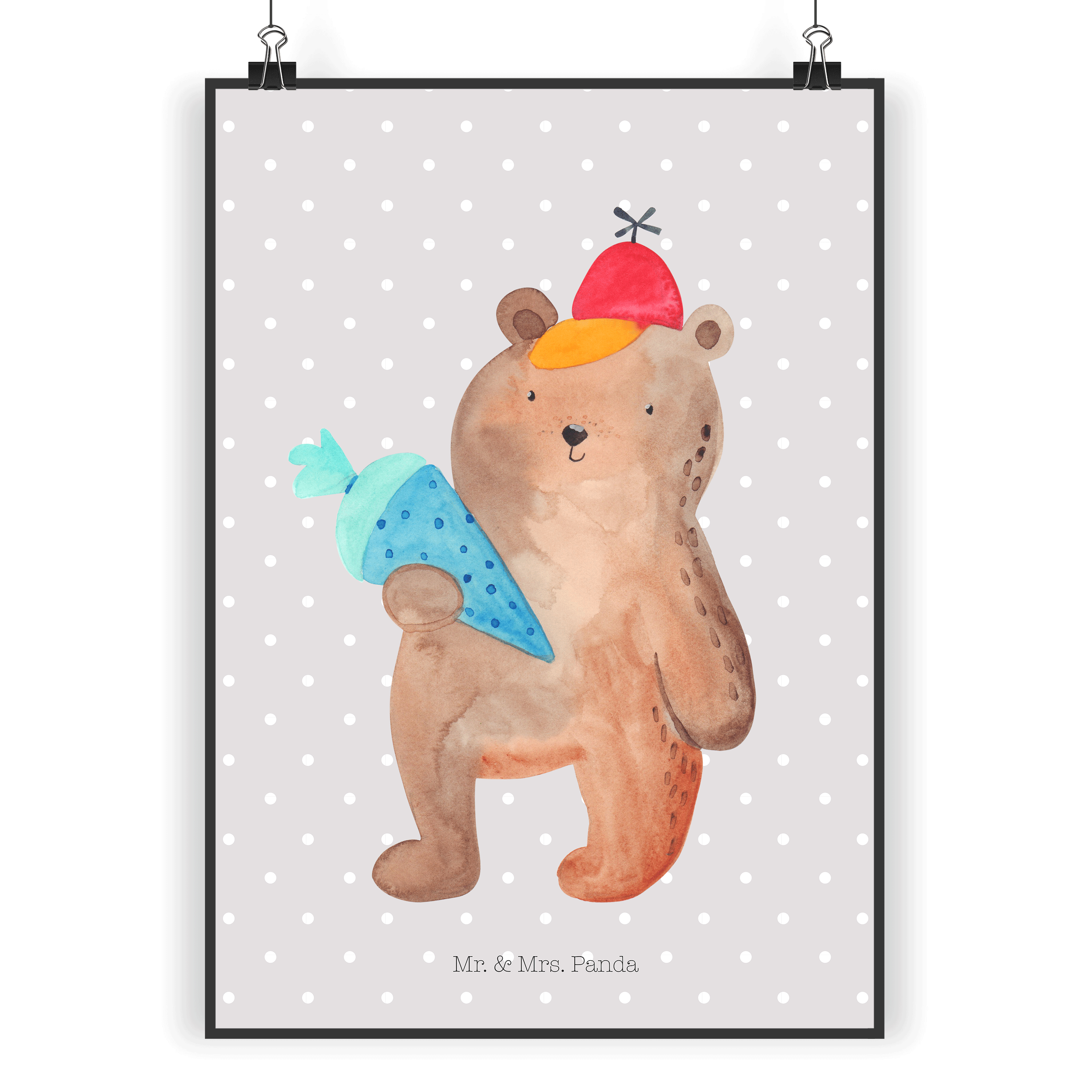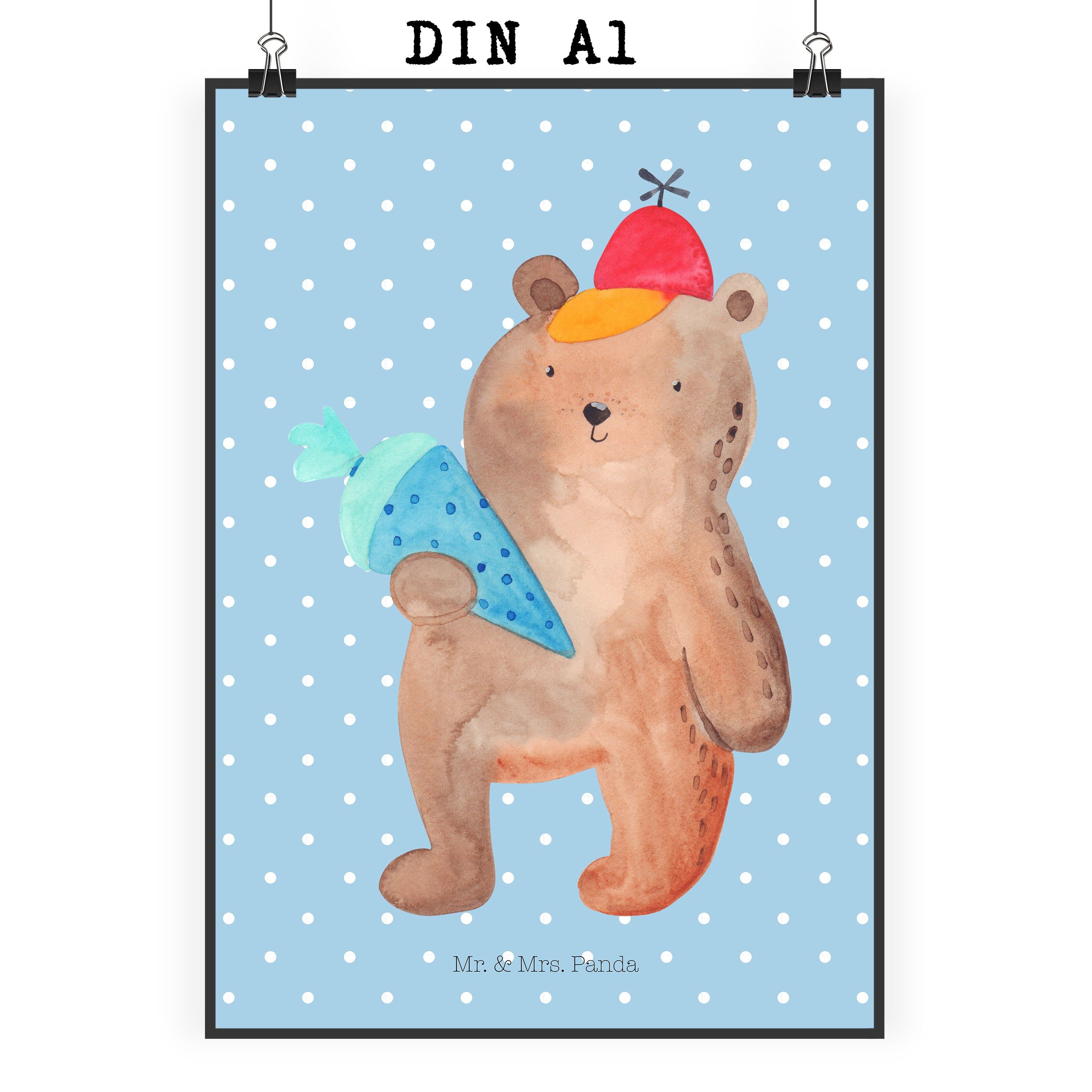 Poster Bär mit Schultüte Poster, Wandposter, Bild, Wanddeko, Küchenposter, Kinderposter, Wanddeko Bild, Raumdekoration, Wanddekoration, Handgemaltes Poster, Mr. & Mrs. Panda Poster, Designposter, Kunstdruck, Posterdruck, Bär, Teddy, Teddybär, Bär Motiv, Schultüte, Erster Schultag Geschenk, Einschulung Geschenk, Schule Geschenk, Grundschule, Schulanfang, Schulbeginn