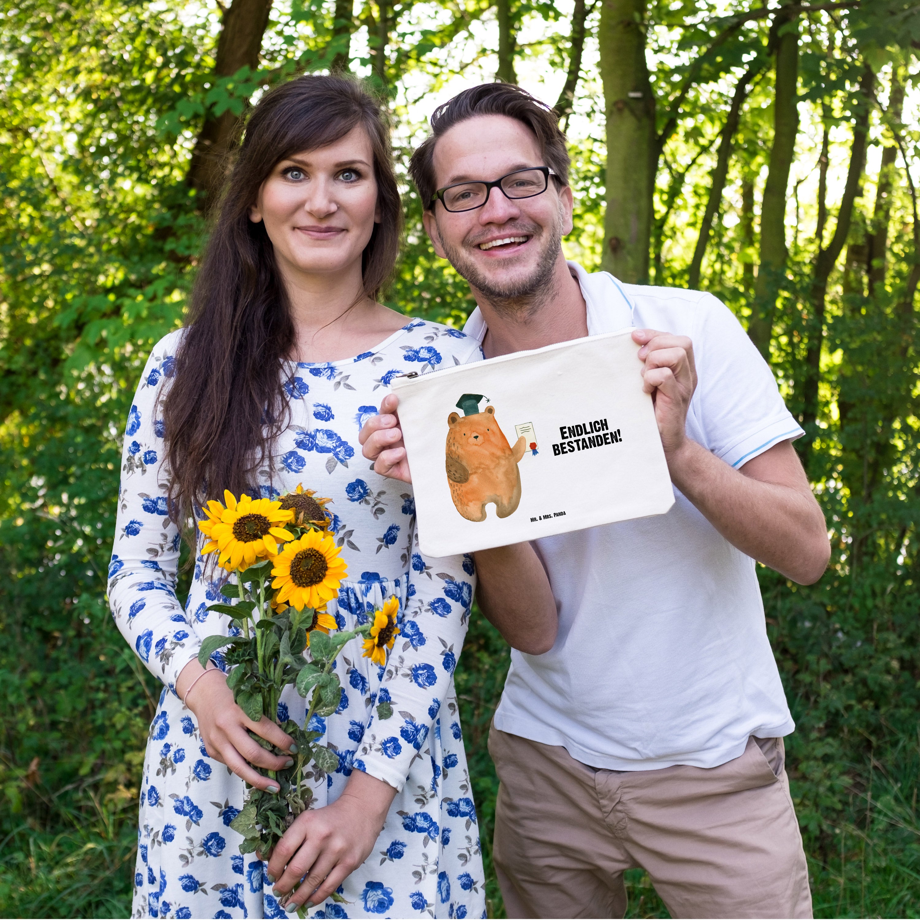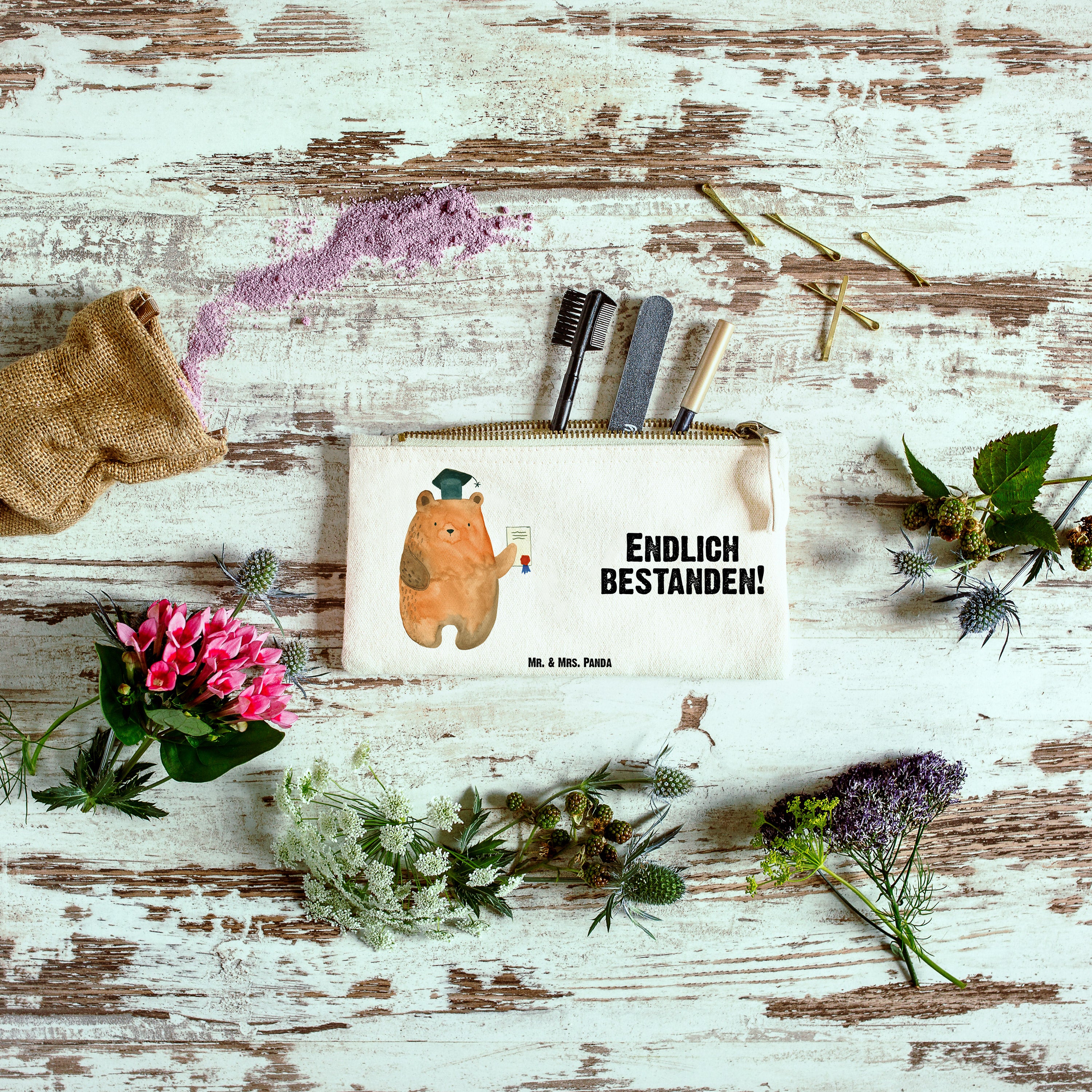 Eine wunderschöne Schminktasche von Mr. & Mrs. Panda mit Reißverschlussfach. Diese Kosmetiktasche oder Kosmetikbeutel ist aus 100% Baumwolle und bedruckt mit unseren wunderschönen handgezeichneten Motiven. Hol dir dieses einzigartige Etui direkt nach Hause - du kannst die Tasche auch perfekt als Stiftemäppchen, Federmappe, Schlamper oder Etui verwenden.