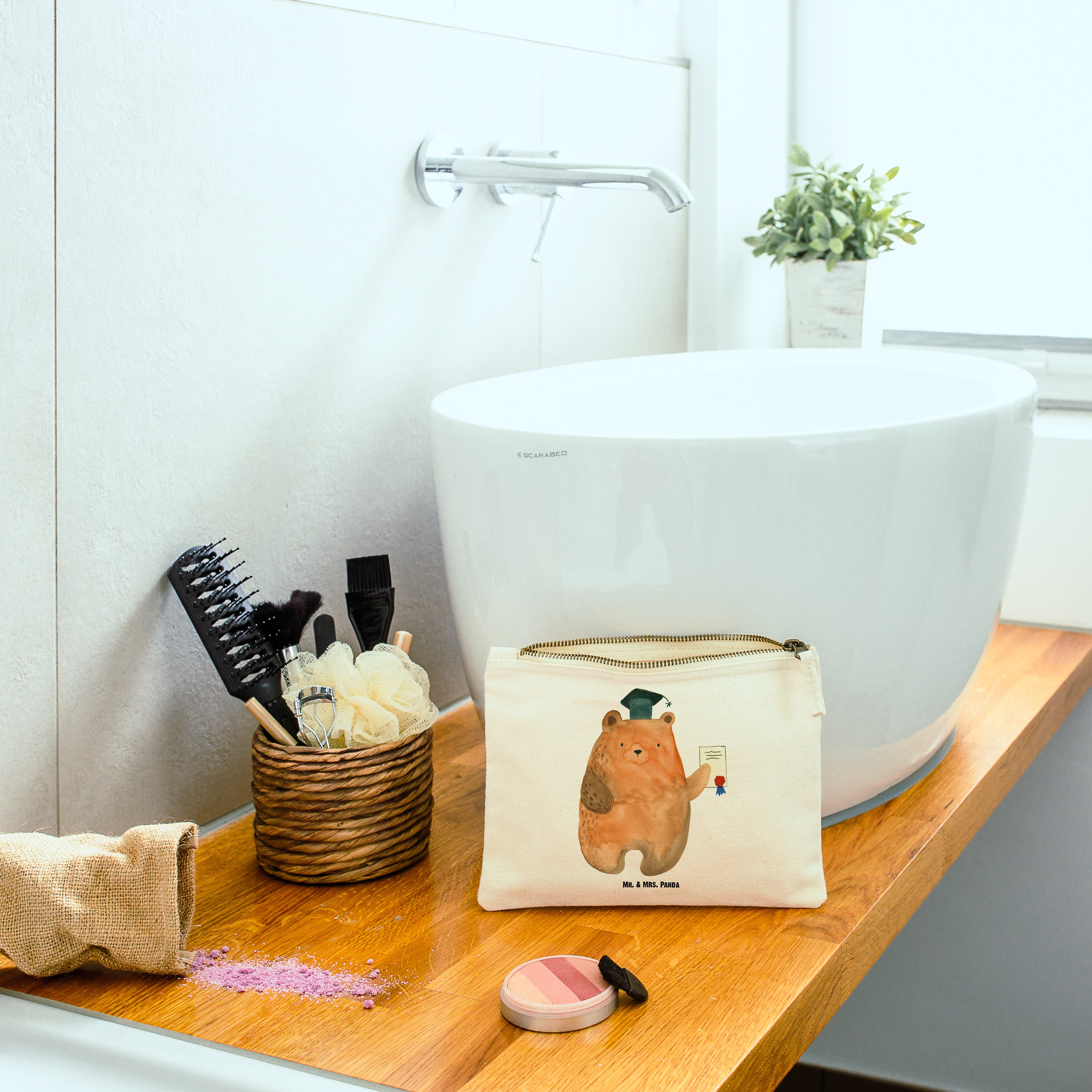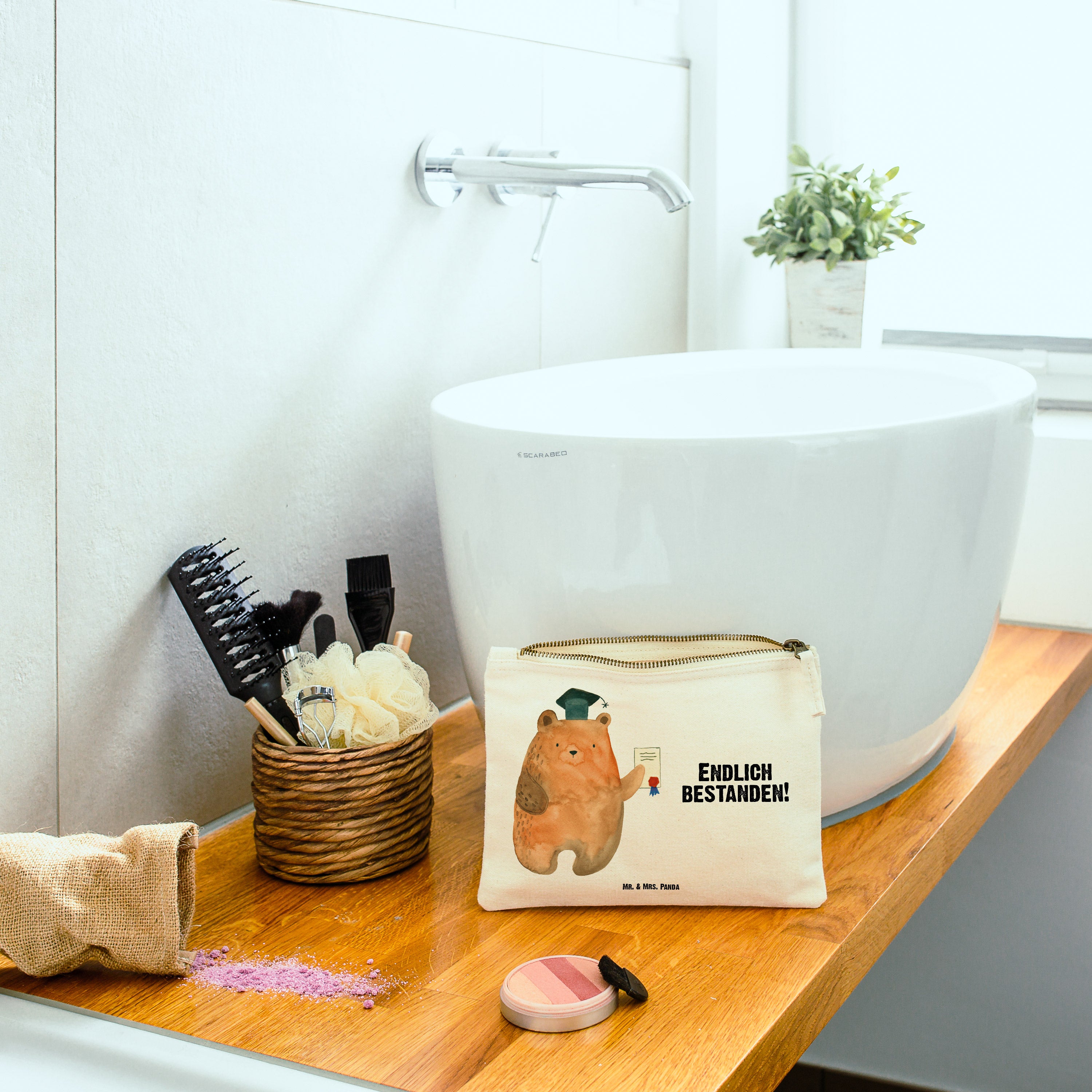 Schminktasche Prüfungsbär Schminktasche, Kosmetiktasche, Kosmetikbeutel, Stiftemäppchen, Etui, Federmappe, Makeup, XXL, Schminketui, Kosmetiketui, Schlamperetui, Bär, Teddy, Teddybär, Abitur, Prüfungen, Prüfung bestanden, Abschluss, Zeugnis, Abschlusszeugnis