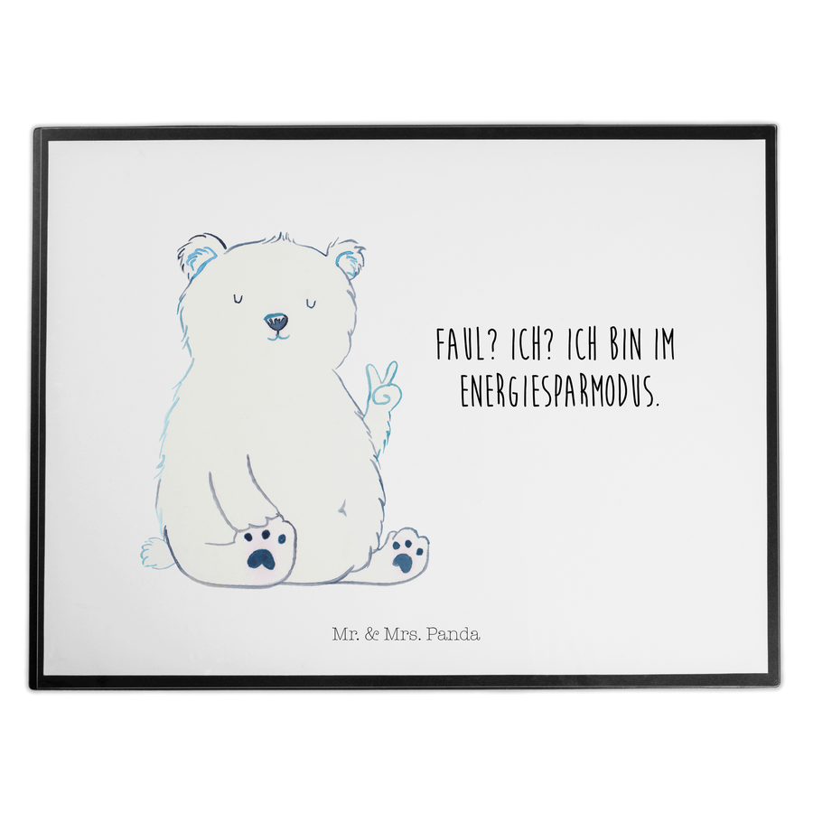 Schreibtischunterlage Eisbär Faul - mit Spruch - Weiß