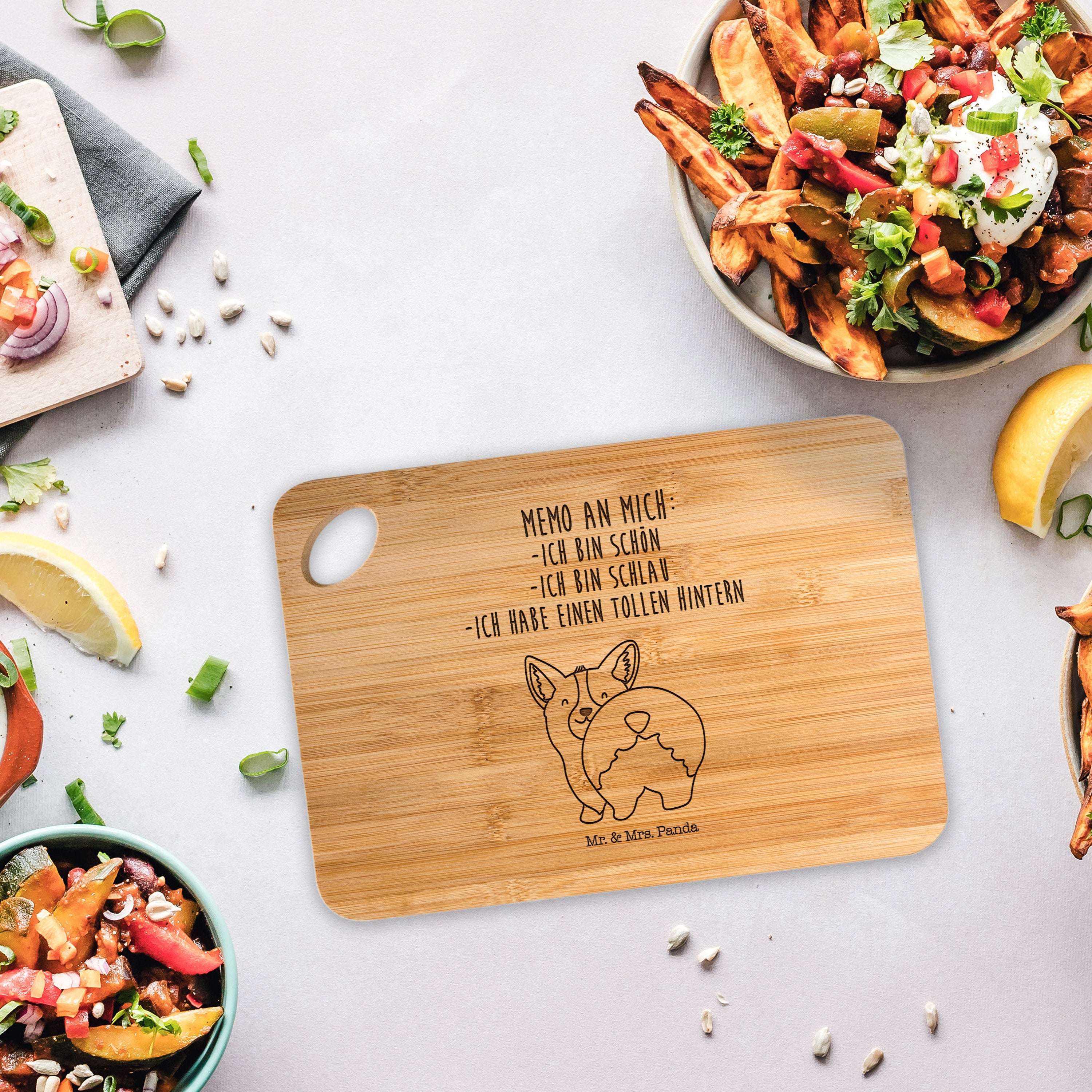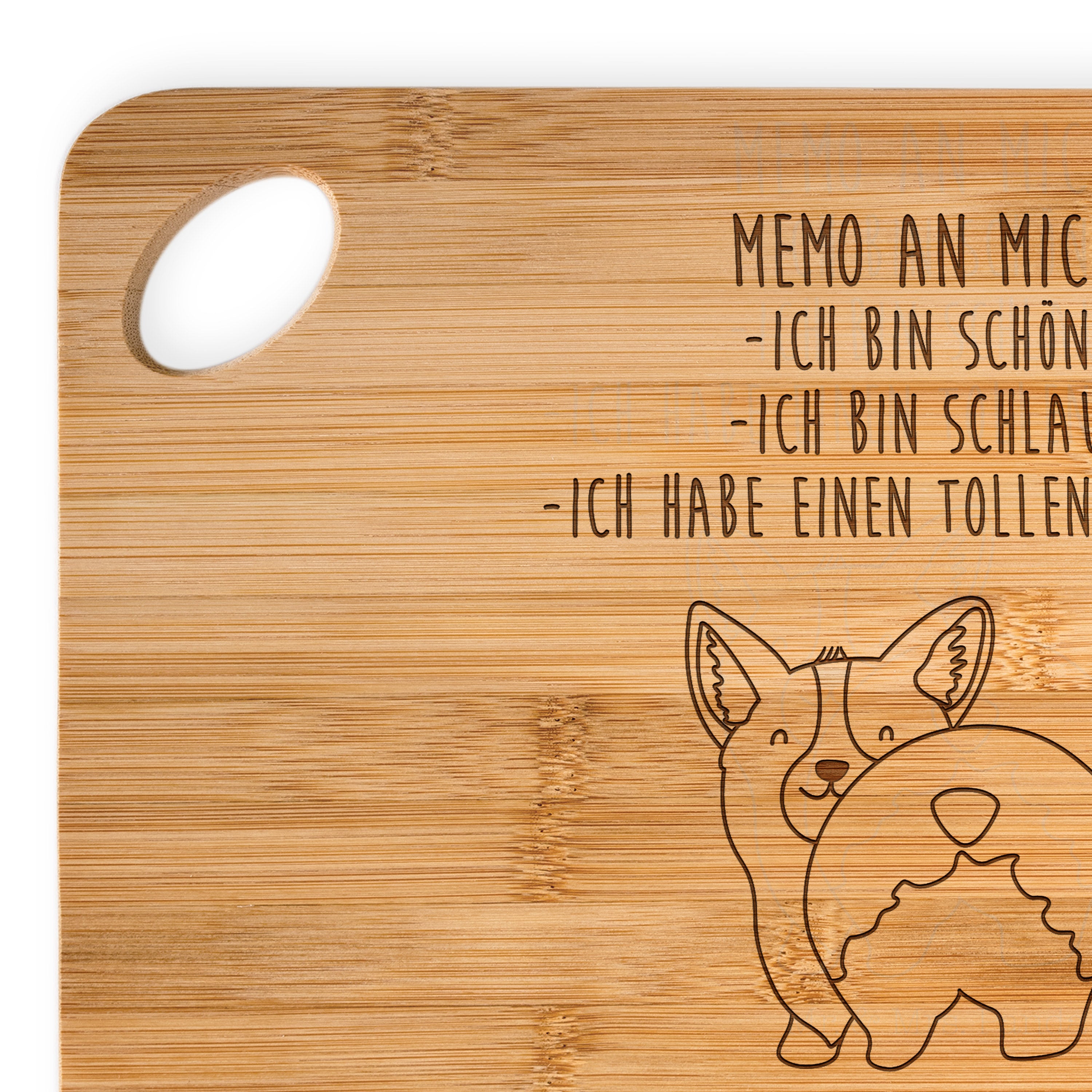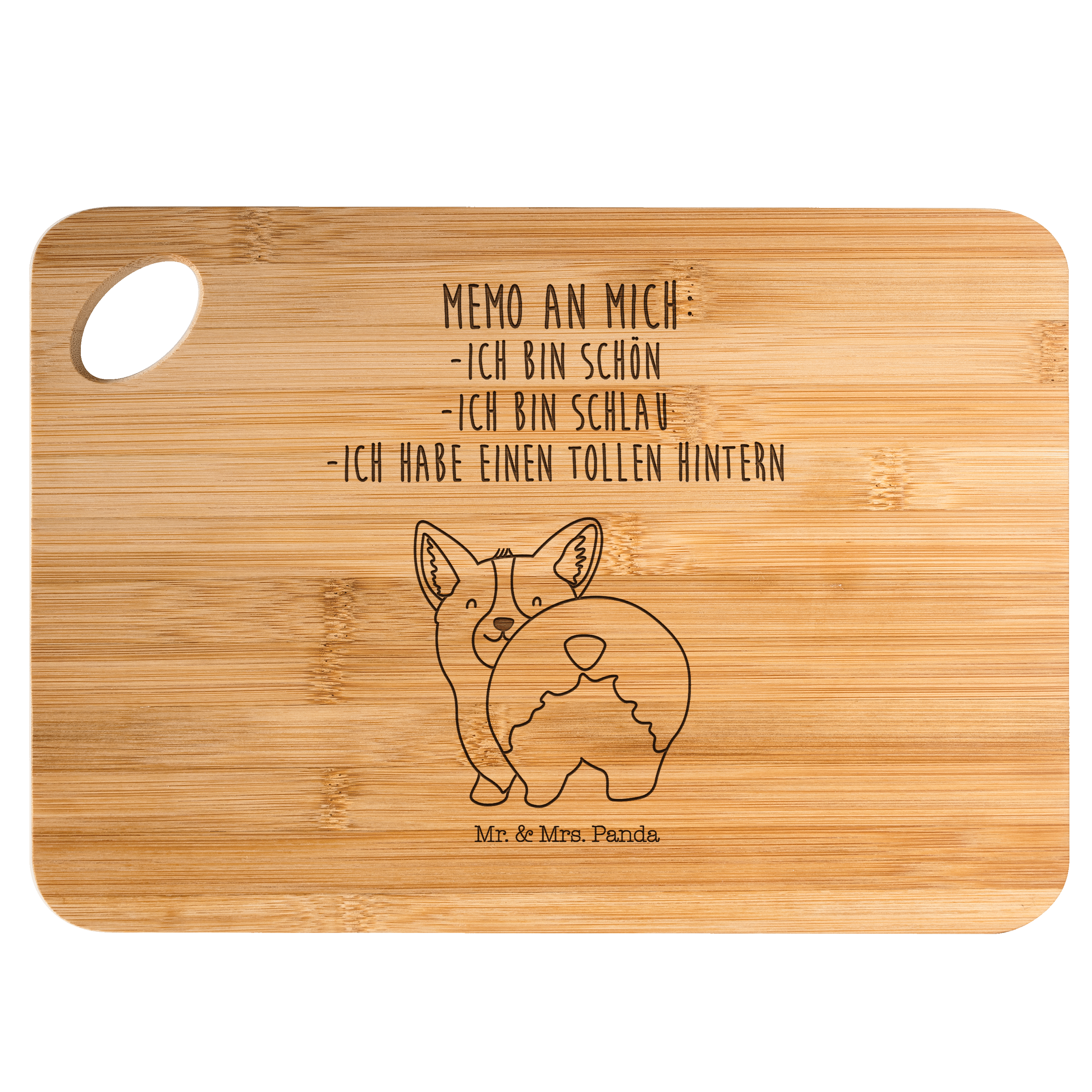 Bambus - Schneidebrett Corgie Po - mit Spruch