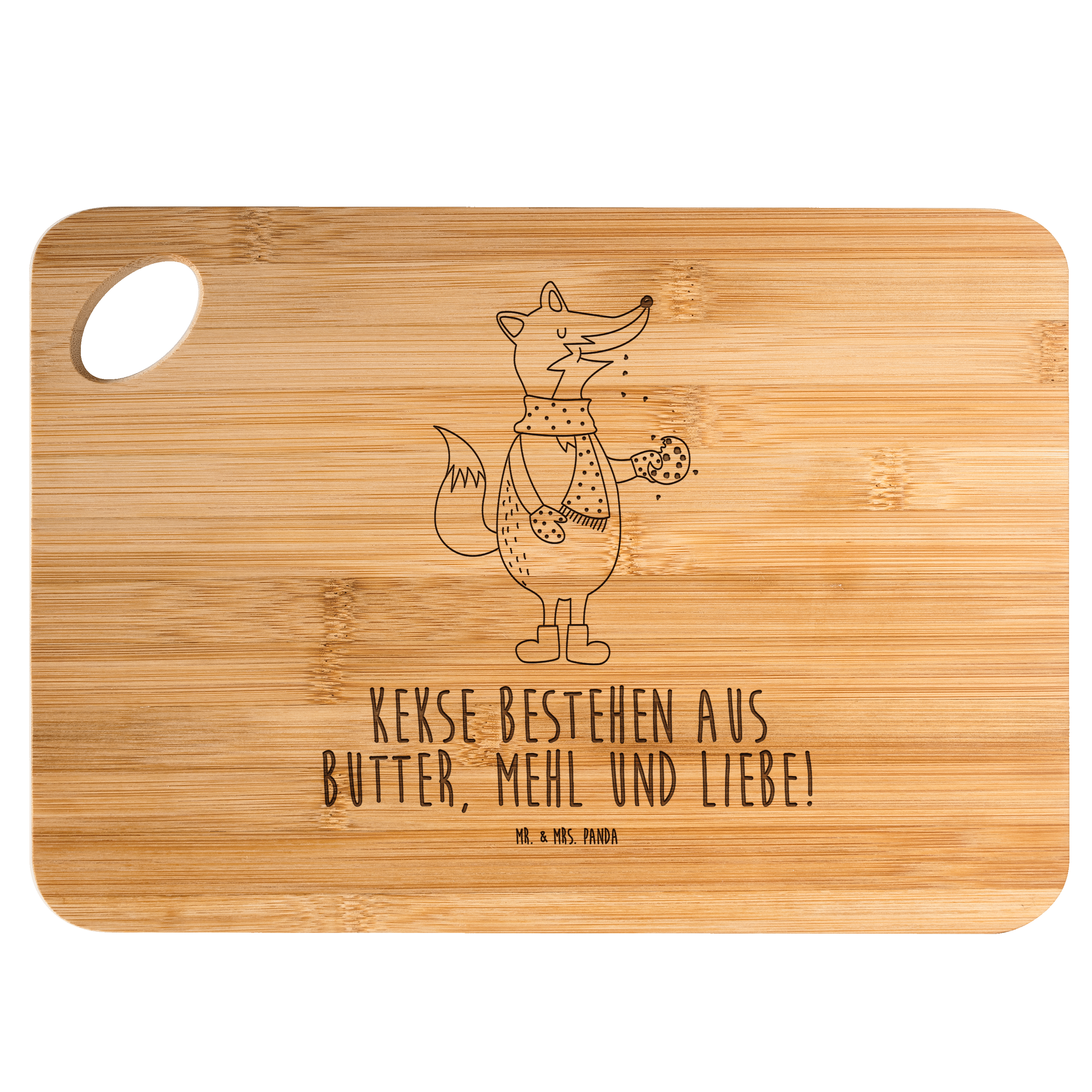 Bambus - Schneidebrett Fuchs Keks Küchenbrett, Frühstücksbrett, Hackbrett, Brett, Holzbrettchen, Fuchs, Füchse, Backen Spruch, Kekse, Winter, Weihnachtszeit, Plätzchen, Liebe, Küche Deko