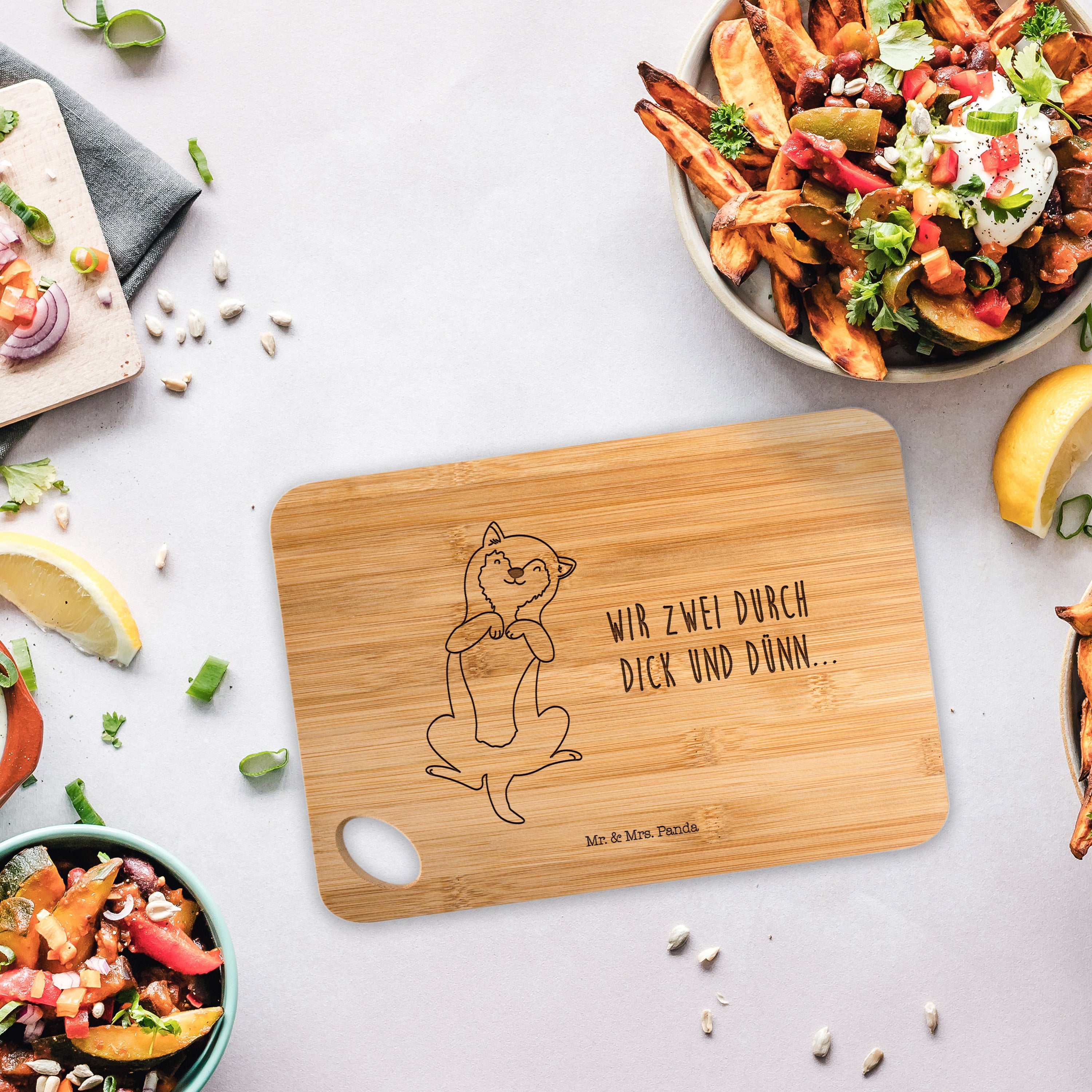 Das gravierte Holz-Schneidebrett von Mr. & Mrs. Panda besteht aus wunderschönem Bambusholz. Bambus ist sehr strapazierfähig, sodass es dir lange erhalten bleiben wird. Das massive und robuste Brettchen wurde liebevoll in unserer Manufaktur in Hannover für dich graviert.
