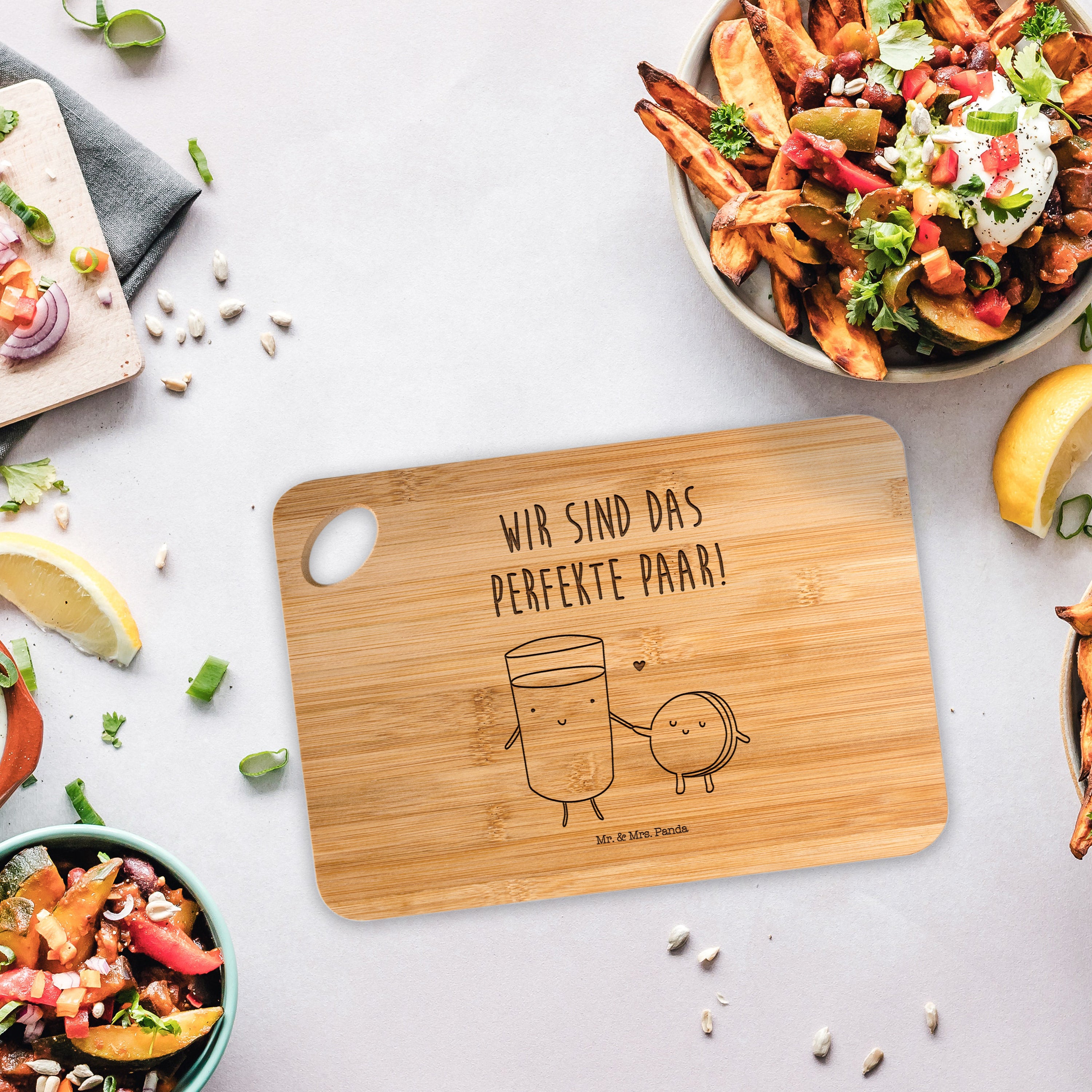 Bambus - Schneidebrett Milch & Keks - mit Spruch