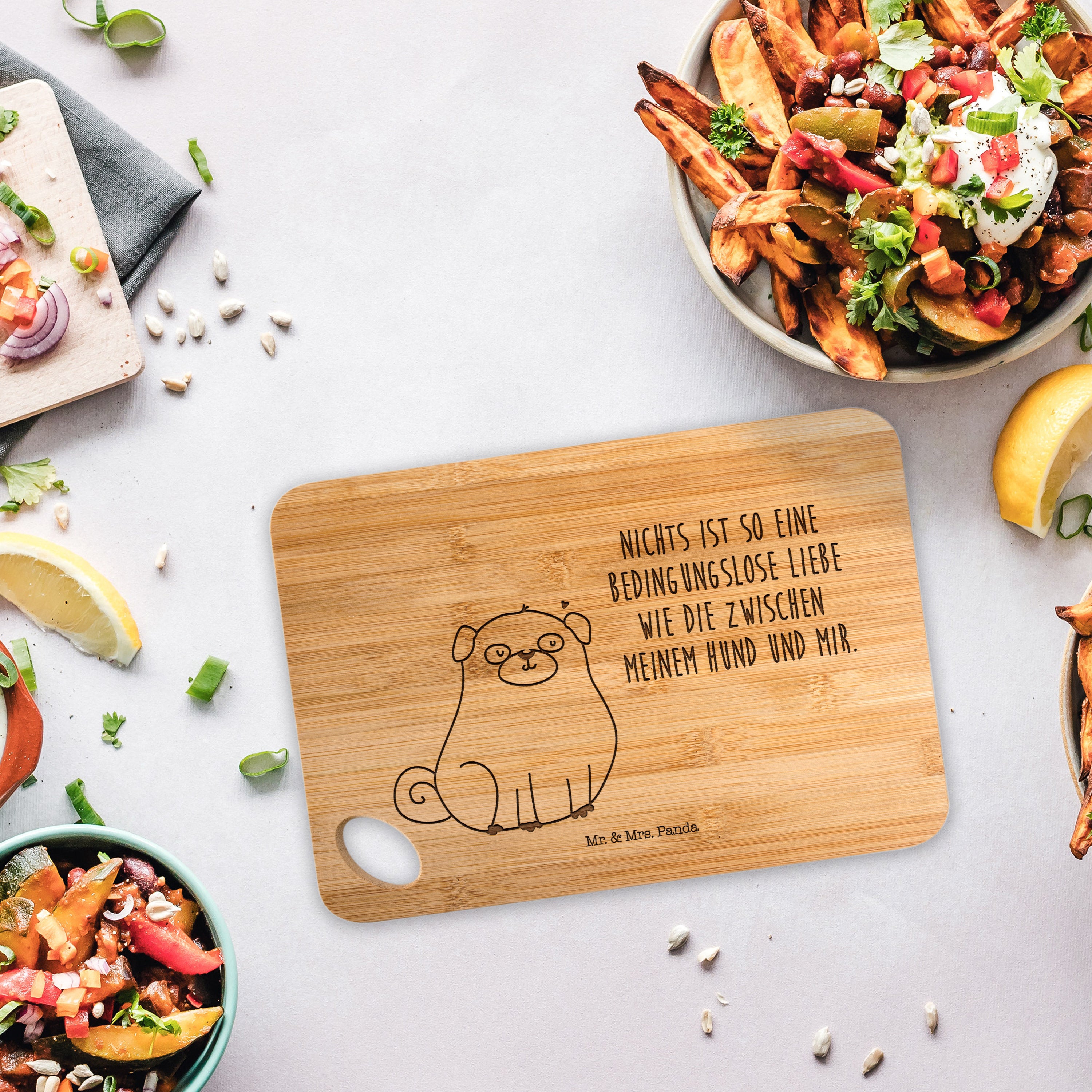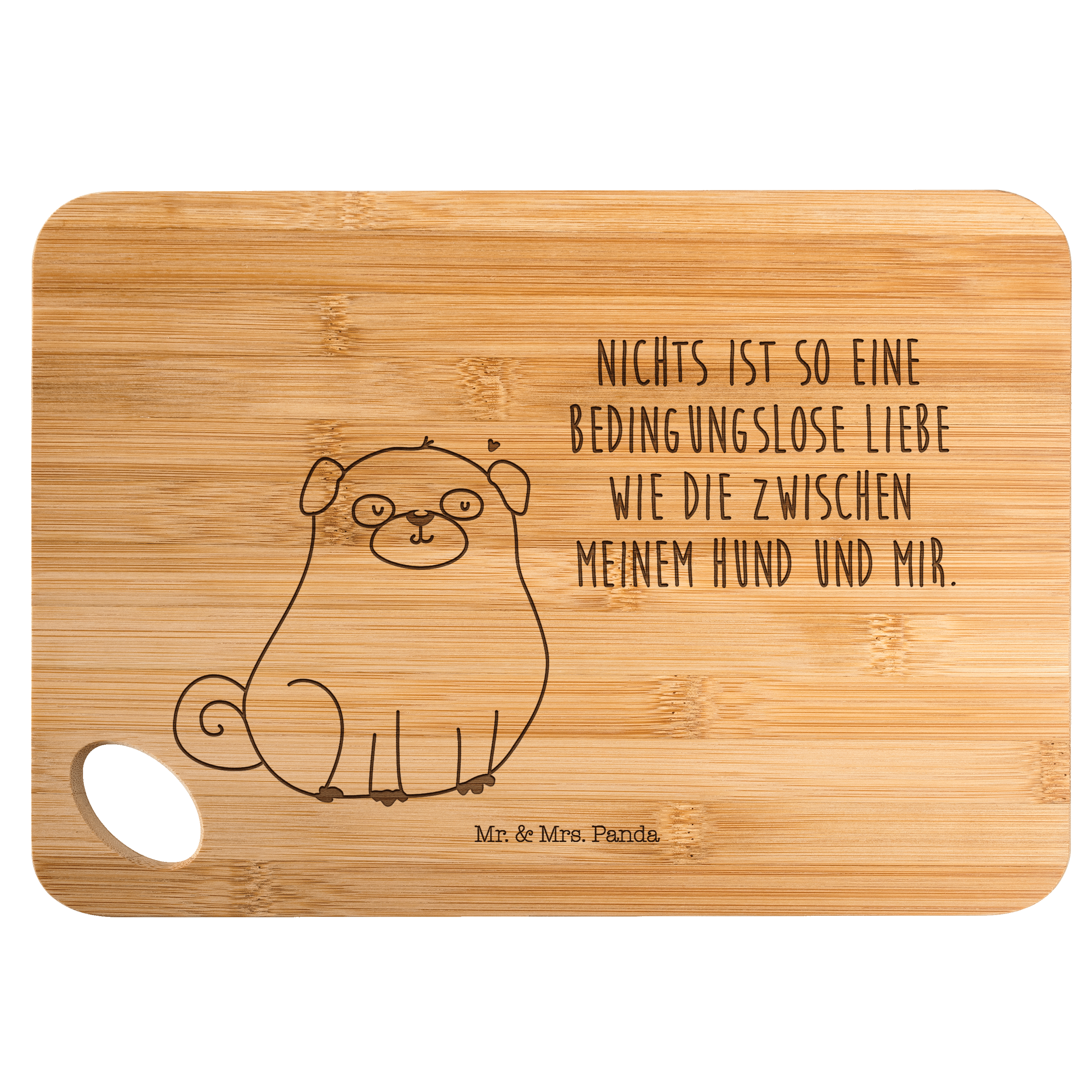 Bambus - Schneidebrett Mops - mit Spruch