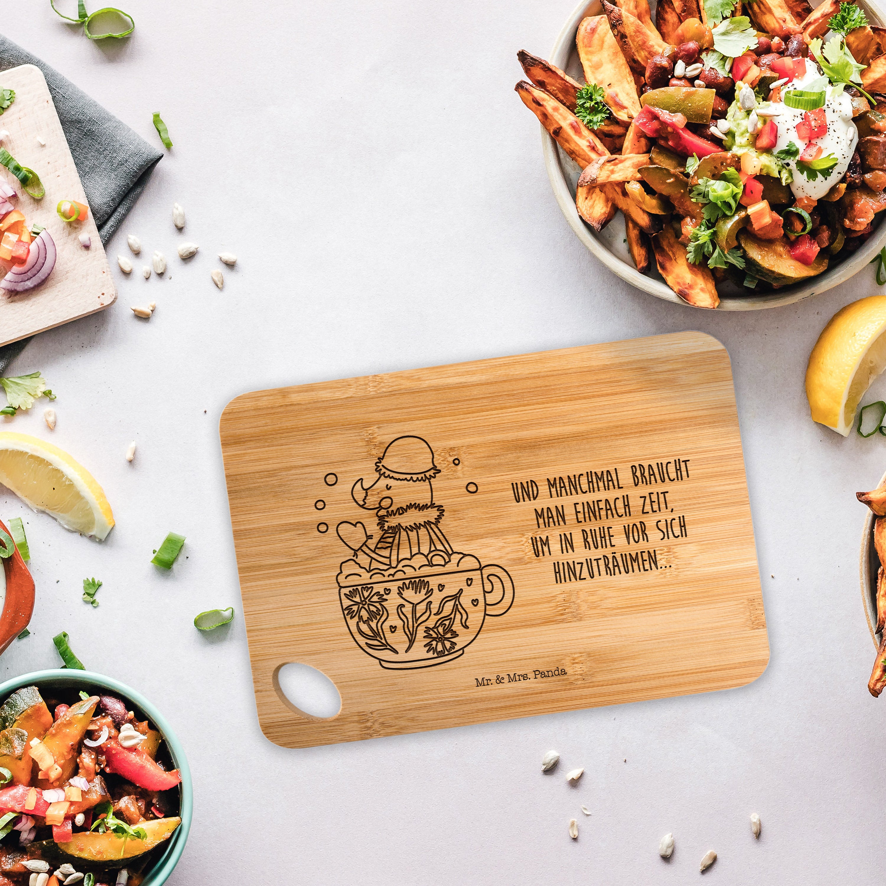 Bambus - Schneidebrett Nachtfalter Schaumbad - mit Spruch
