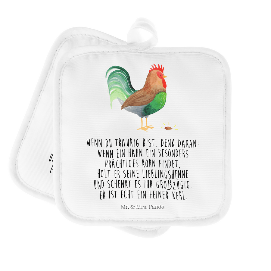 2er Set Topflappen Hahn mit Korn - mit Spruch - Weiß