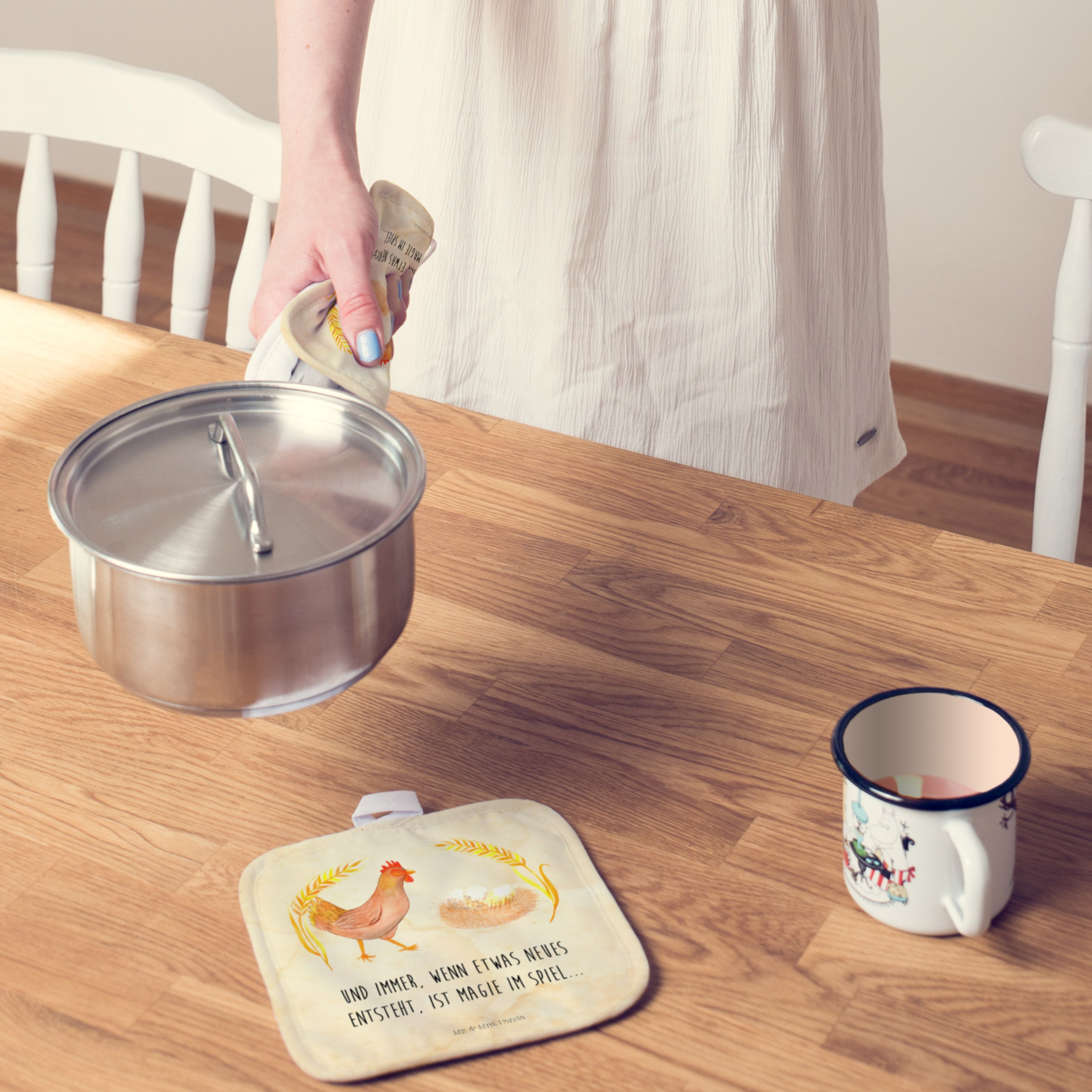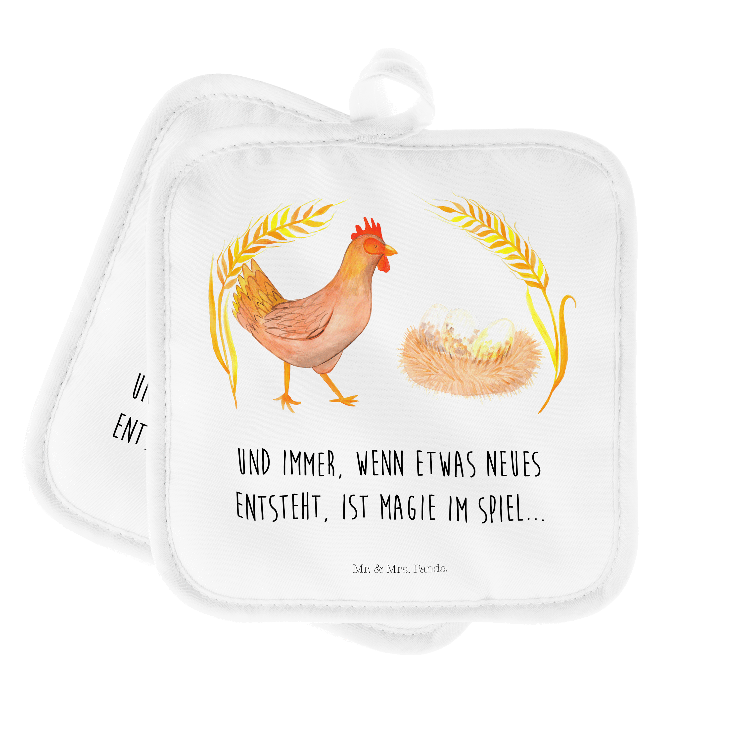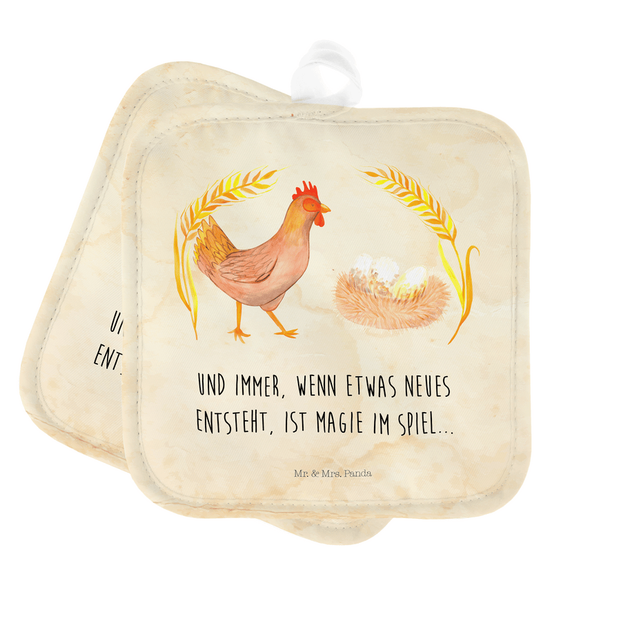 2er Set Topflappen Huhn stolz - mit Spruch - Vintage