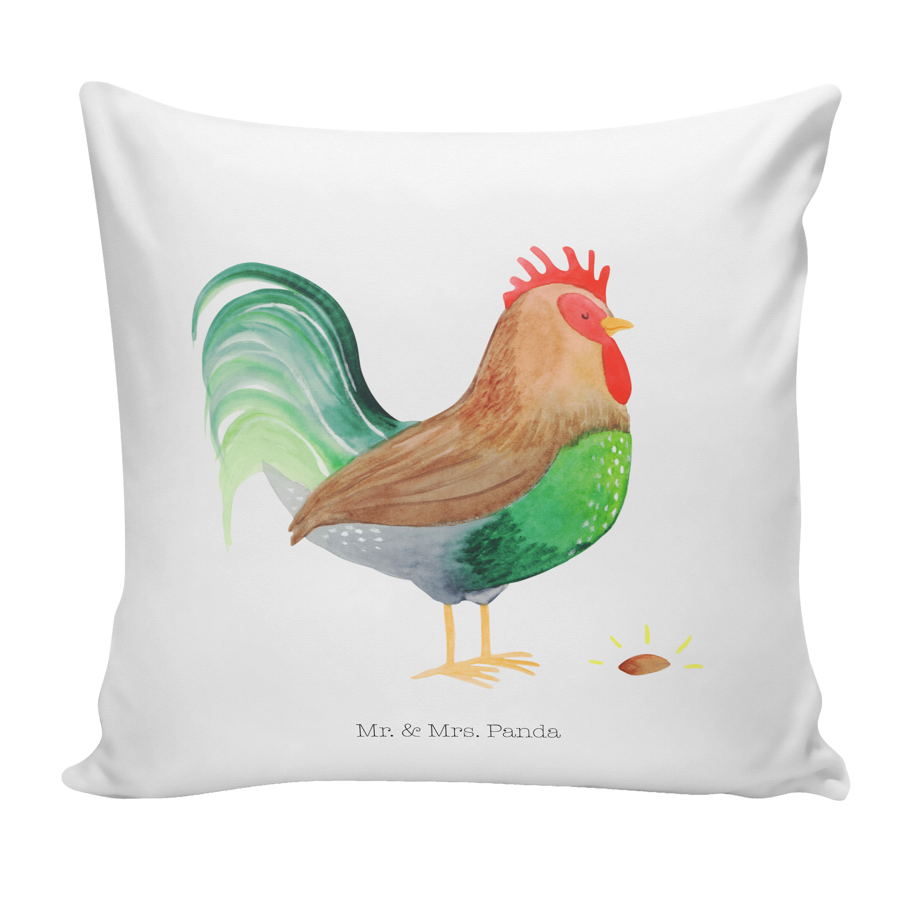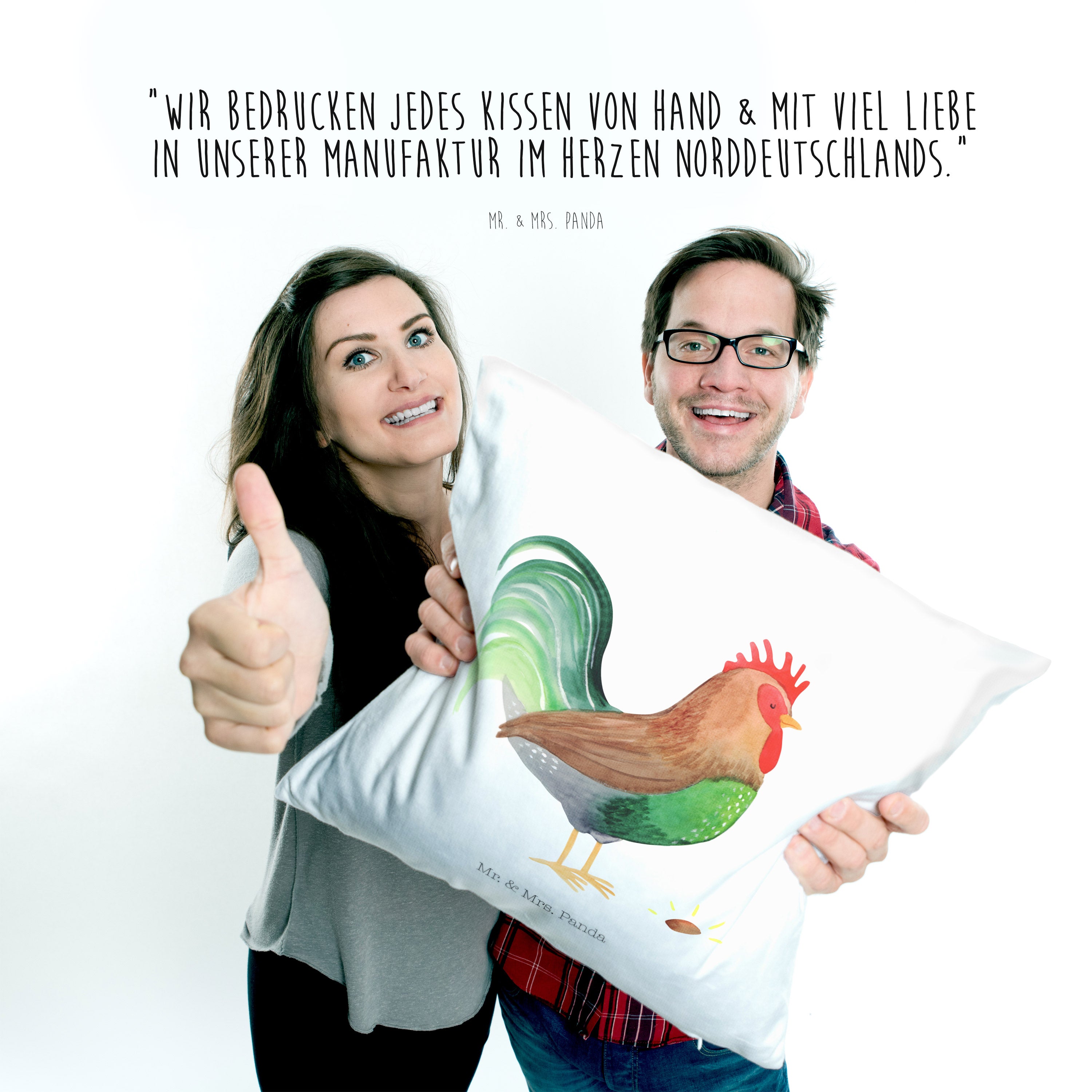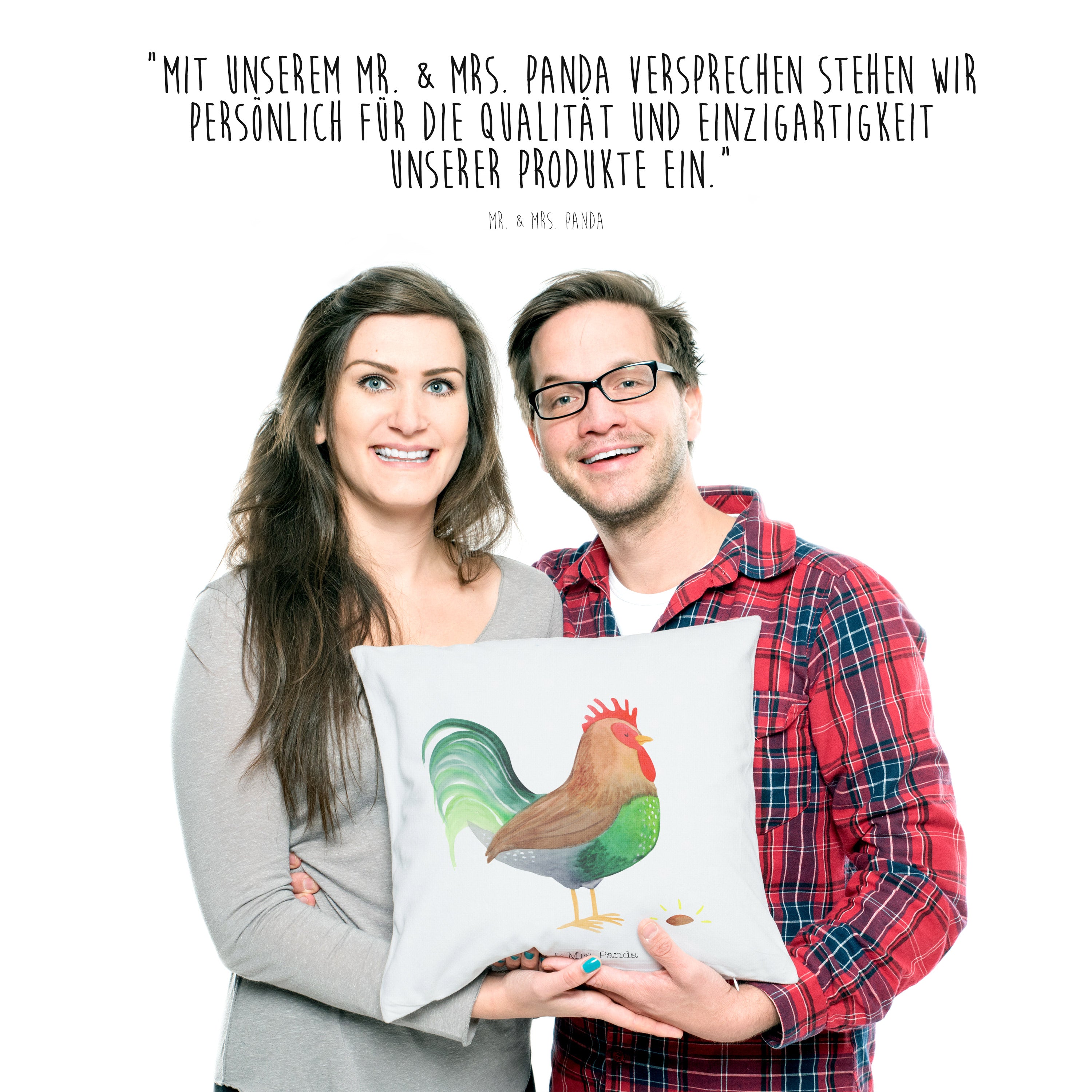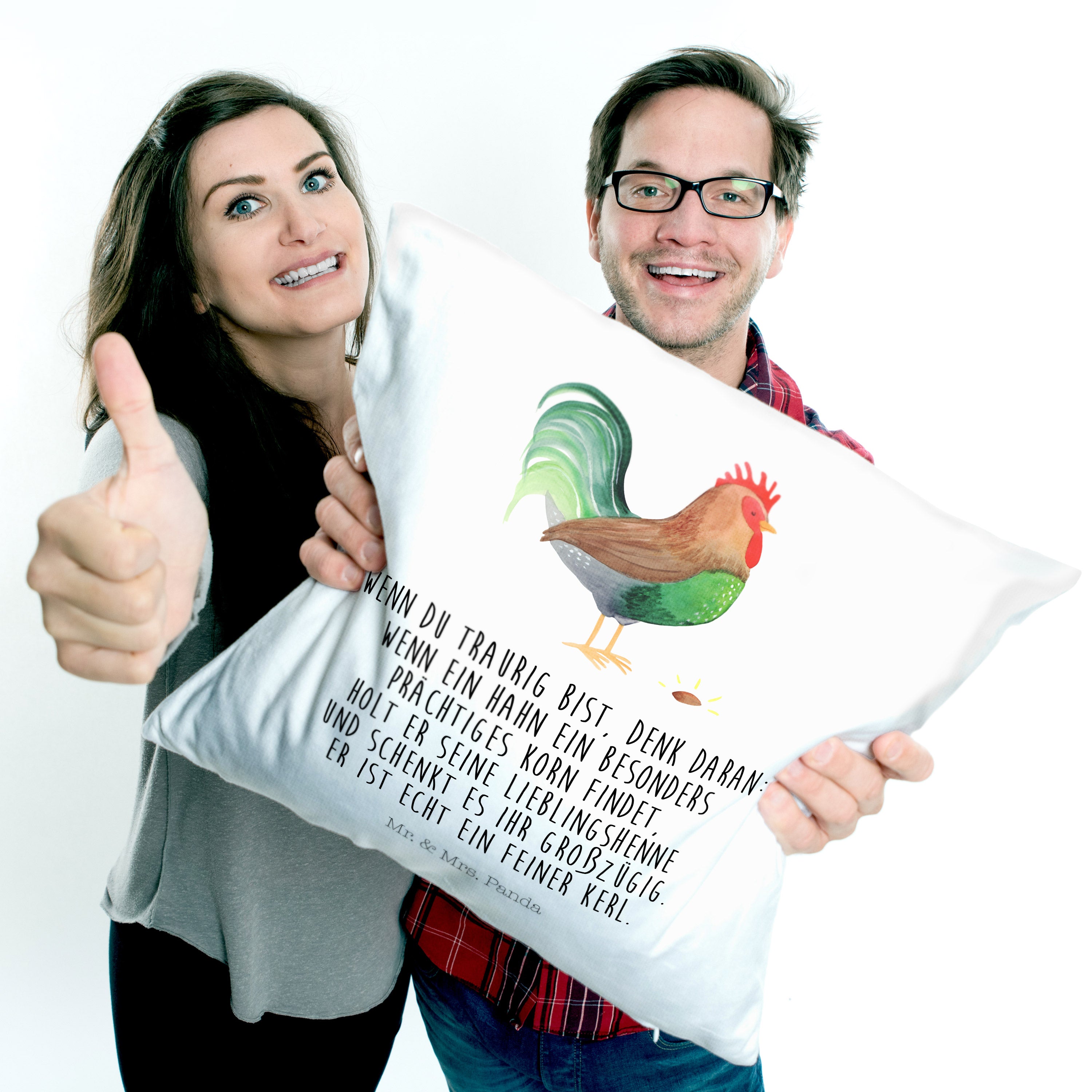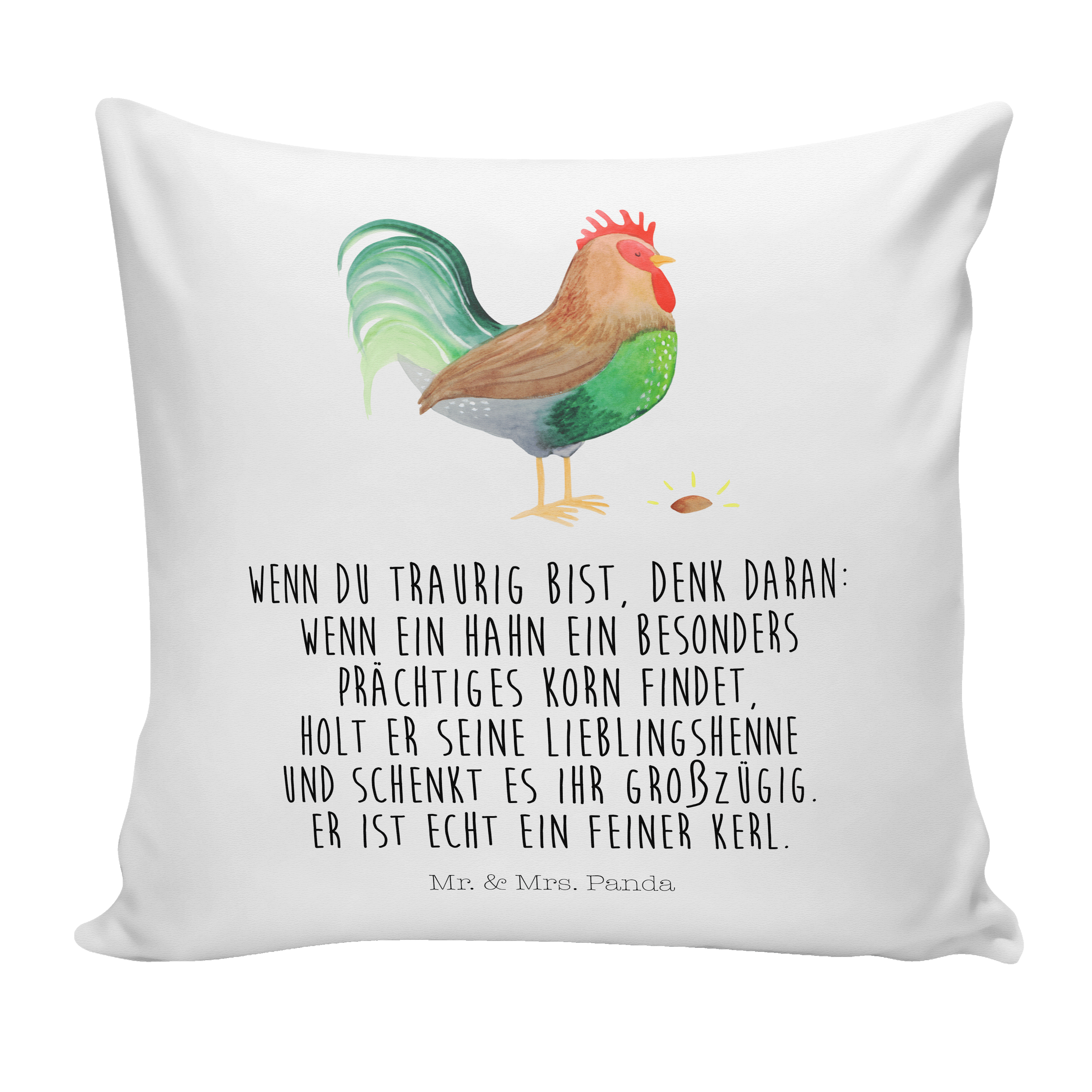 40x40 Kissen Hahn mit Korn - mit Spruch - Weiß
