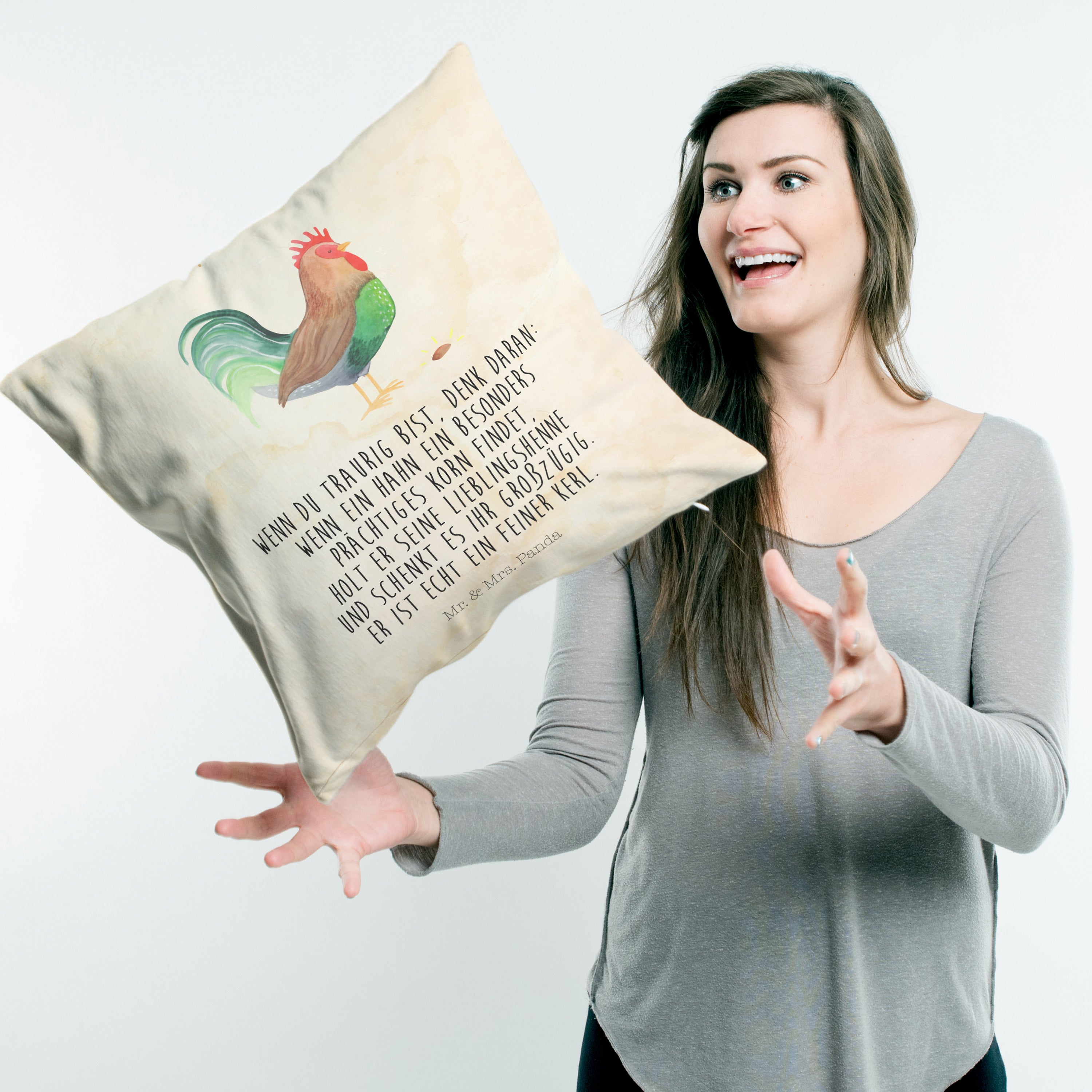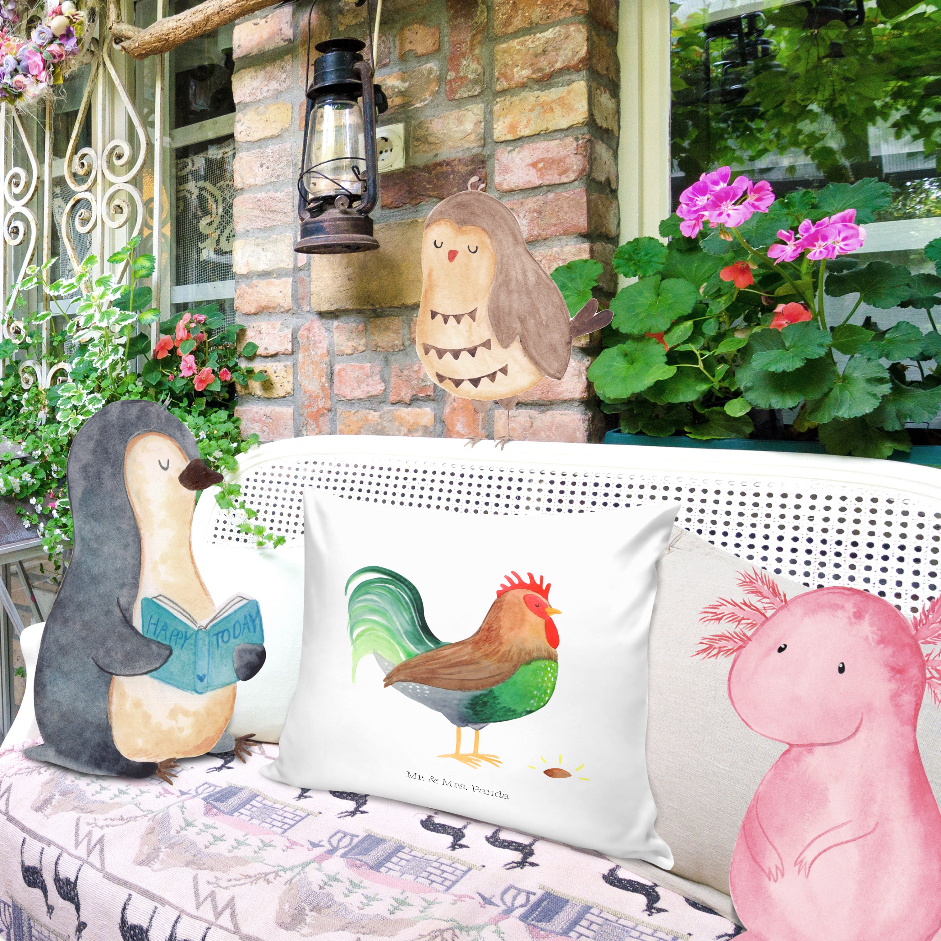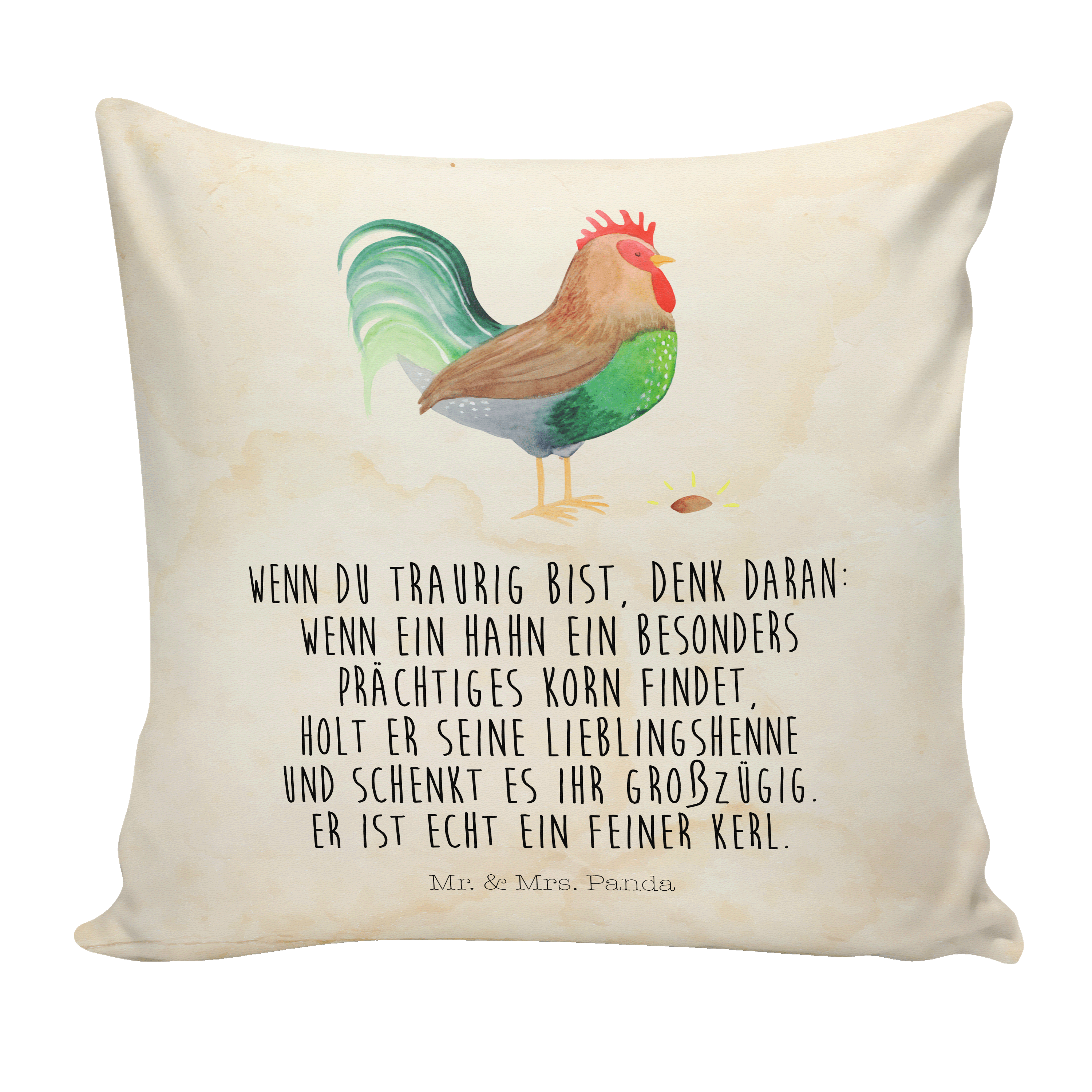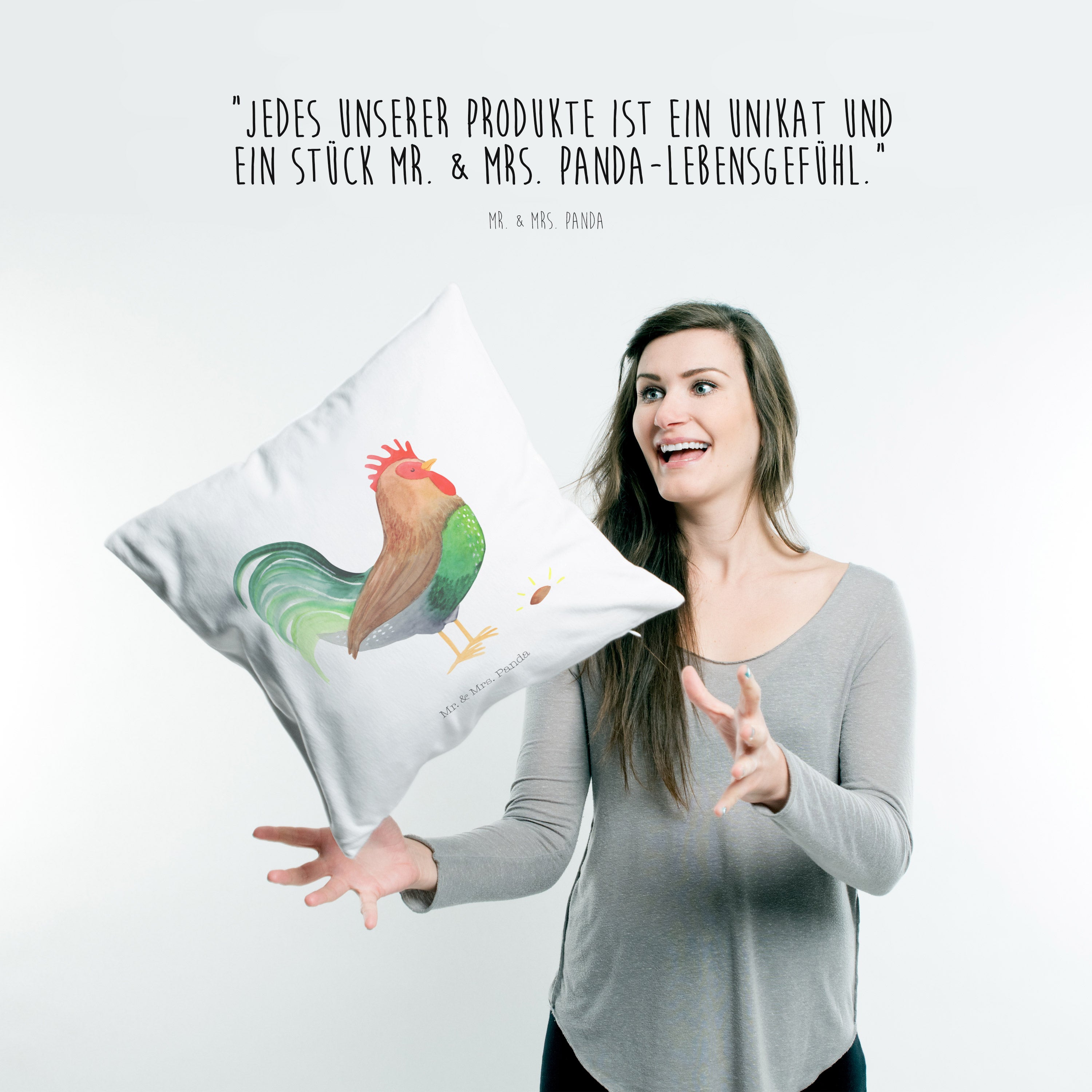 40x40 Kissen Hahn mit Korn - mit Spruch - Weiß