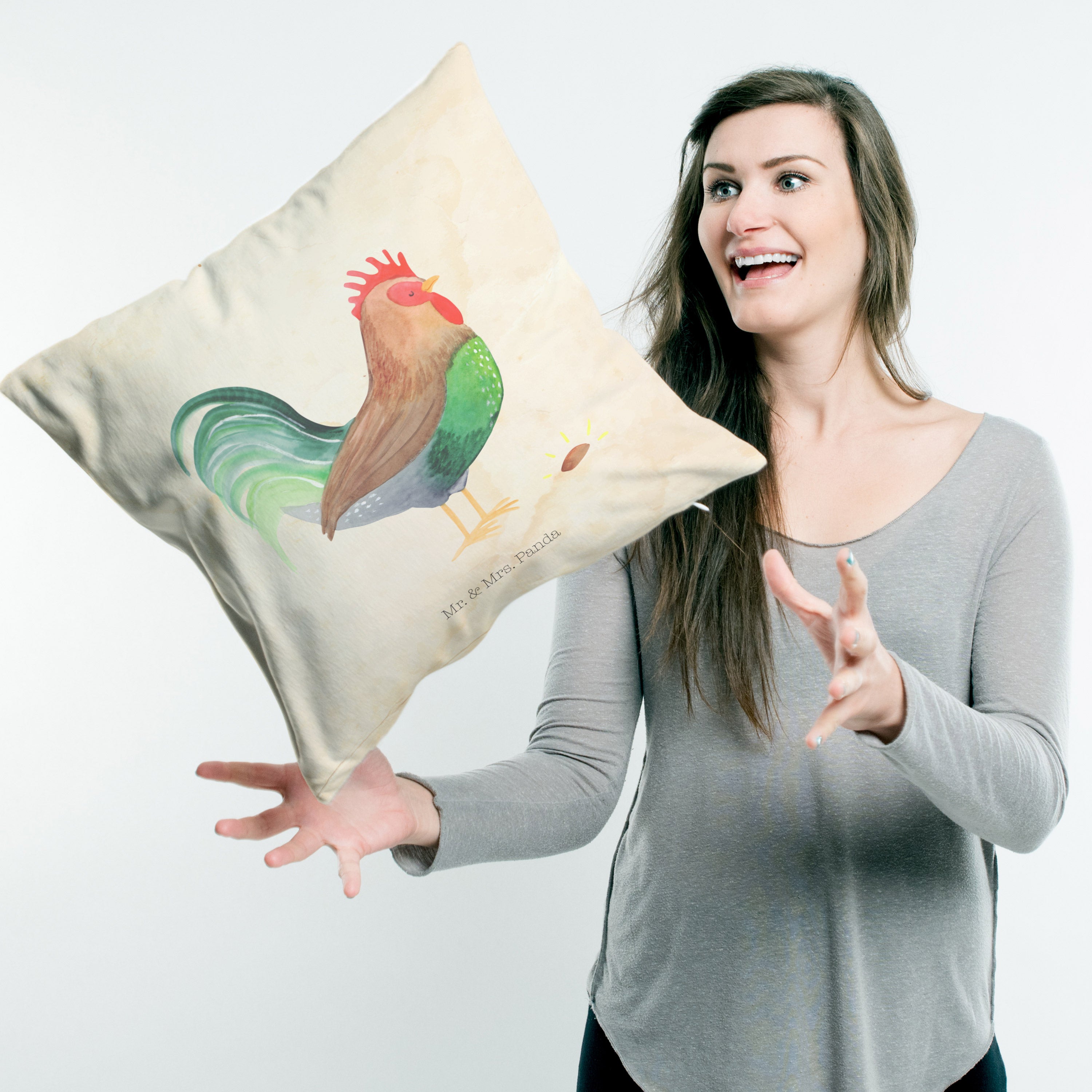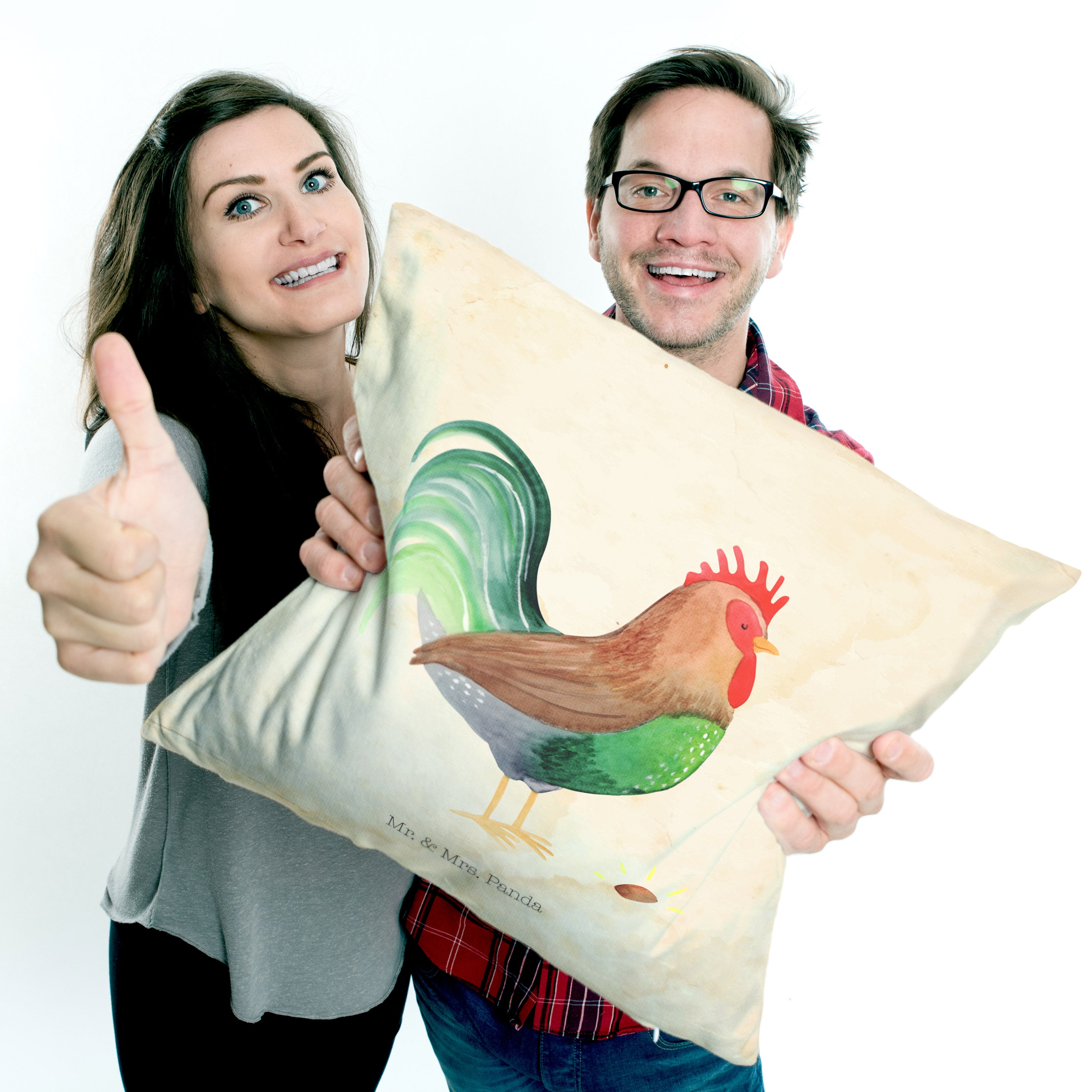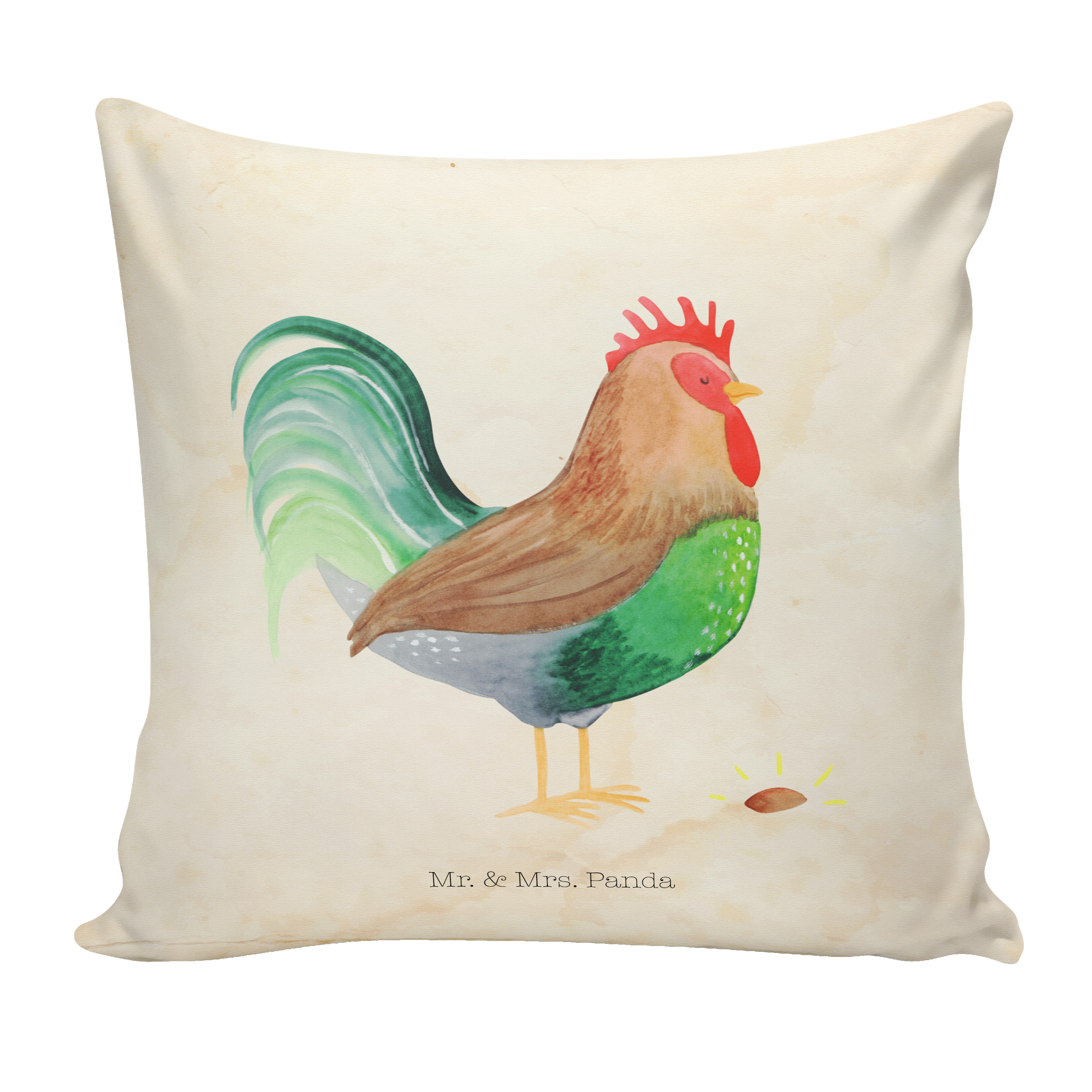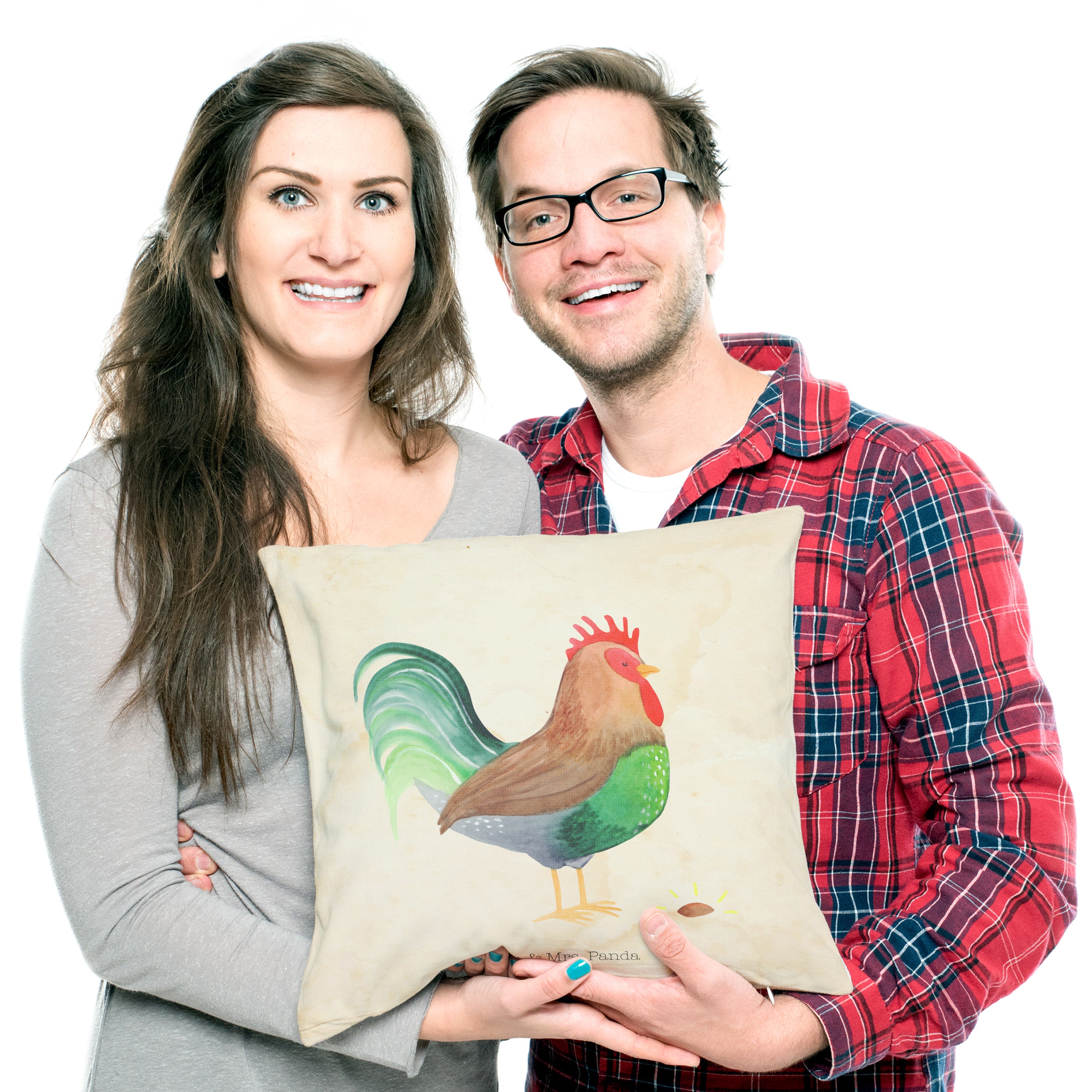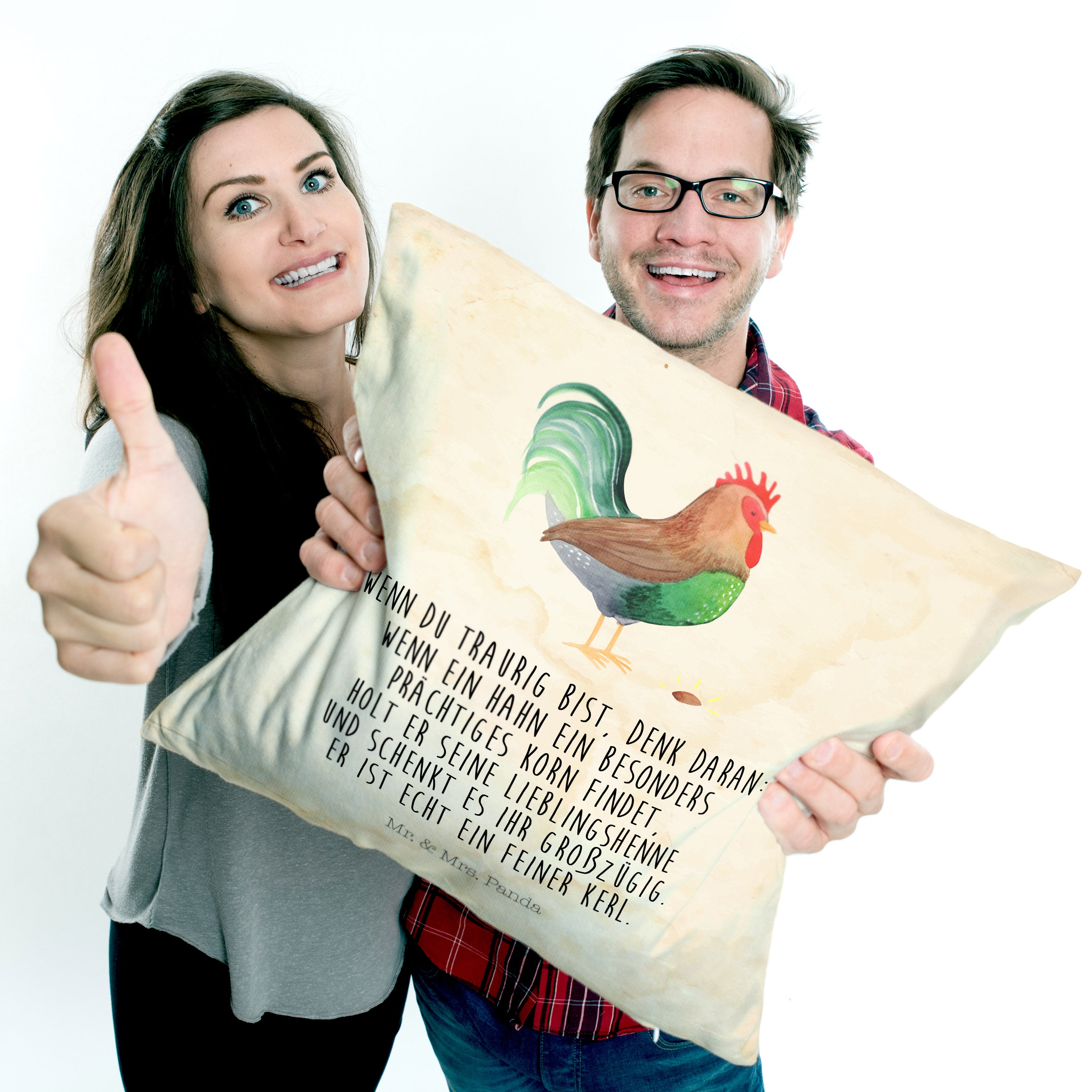 40x40 Kissen Hahn mit Korn - mit Spruch - Weiß