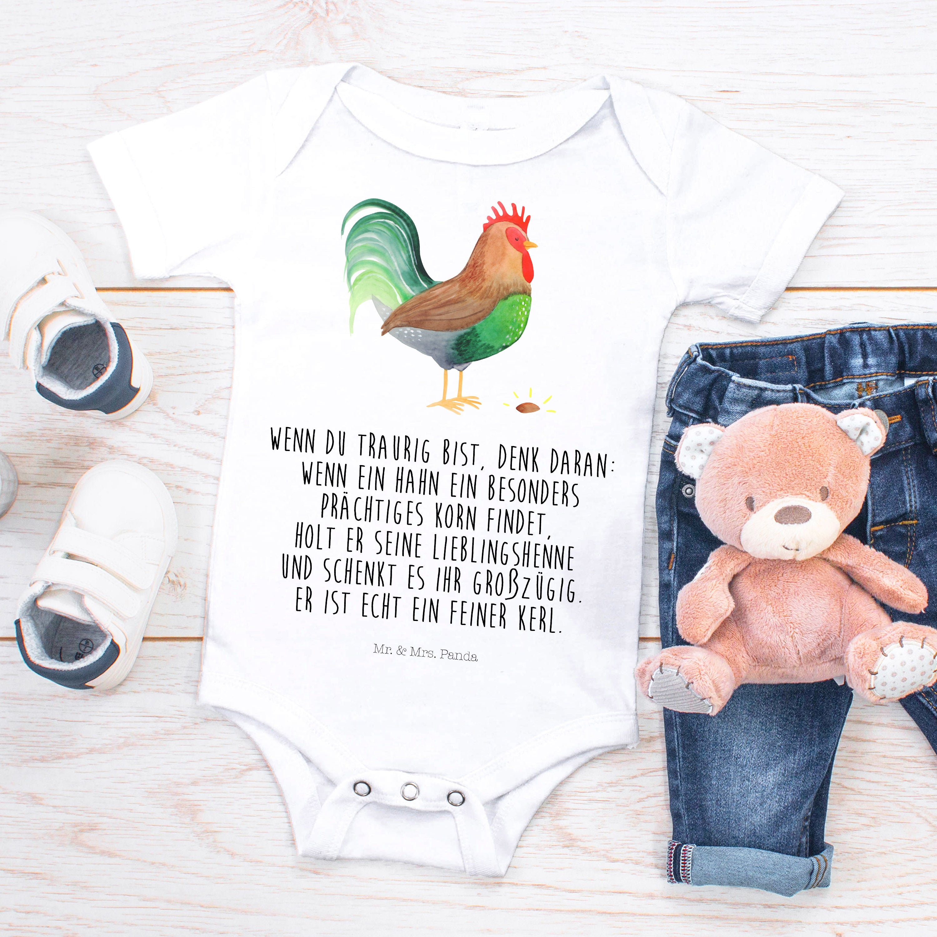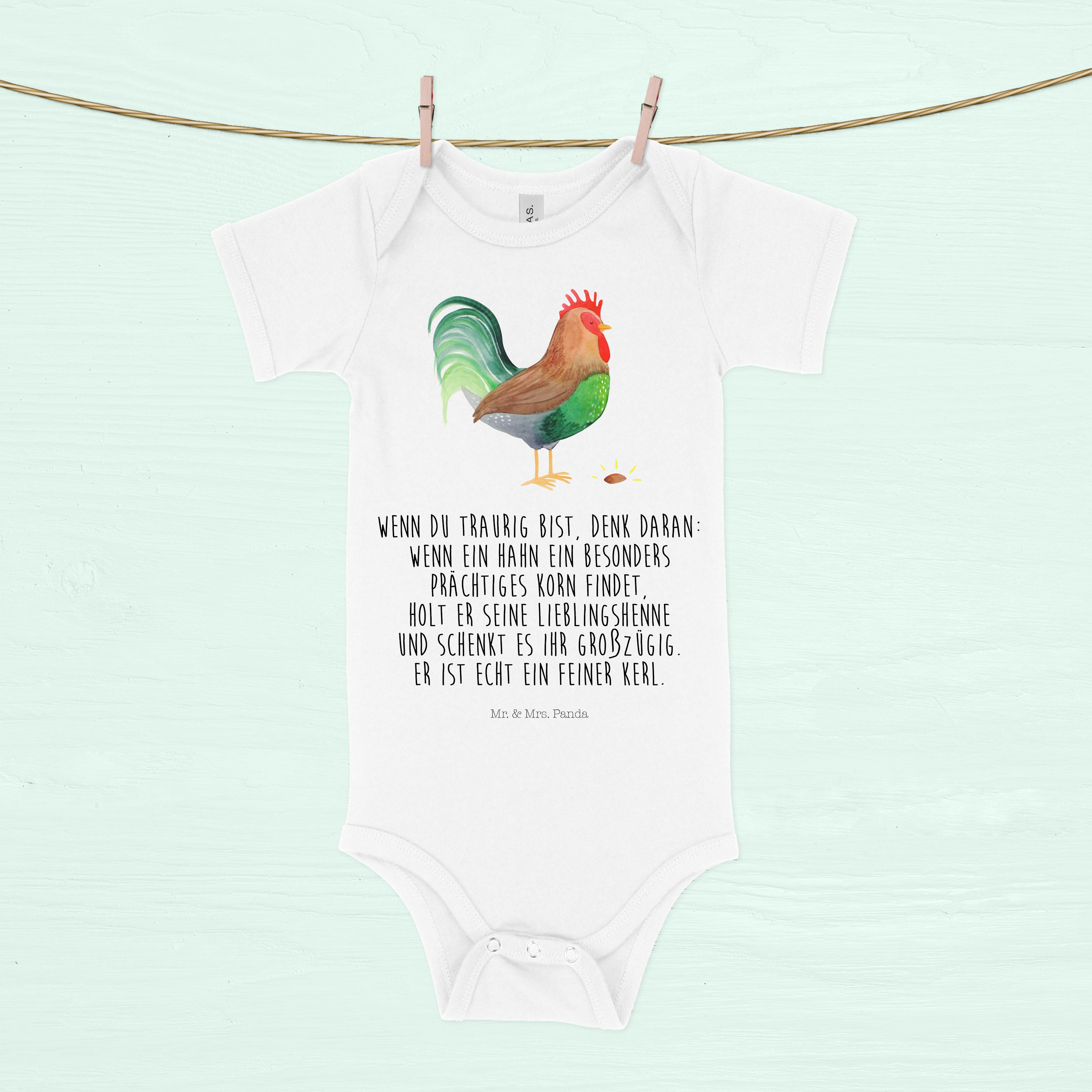 Organic Baby Body Hahn mit Korn - 1. - 3. Monat - mit Spruch