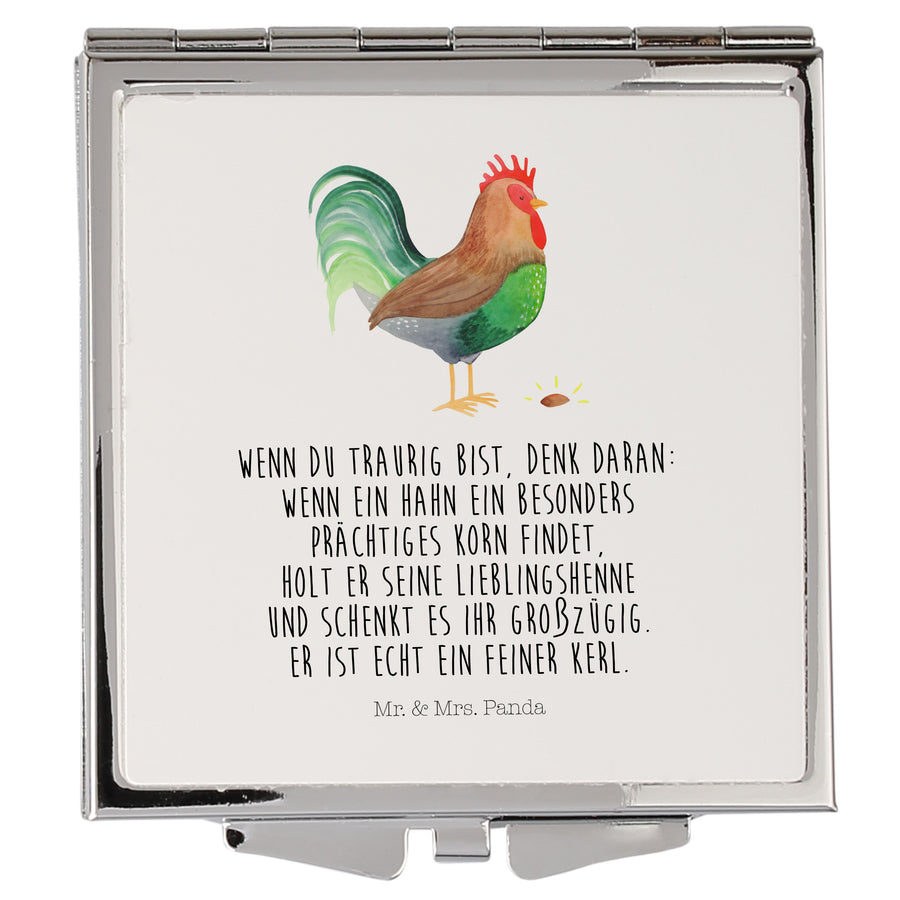 Handtaschenspiegel quadratisch Hahn mit Korn - mit Spruch - Weiß