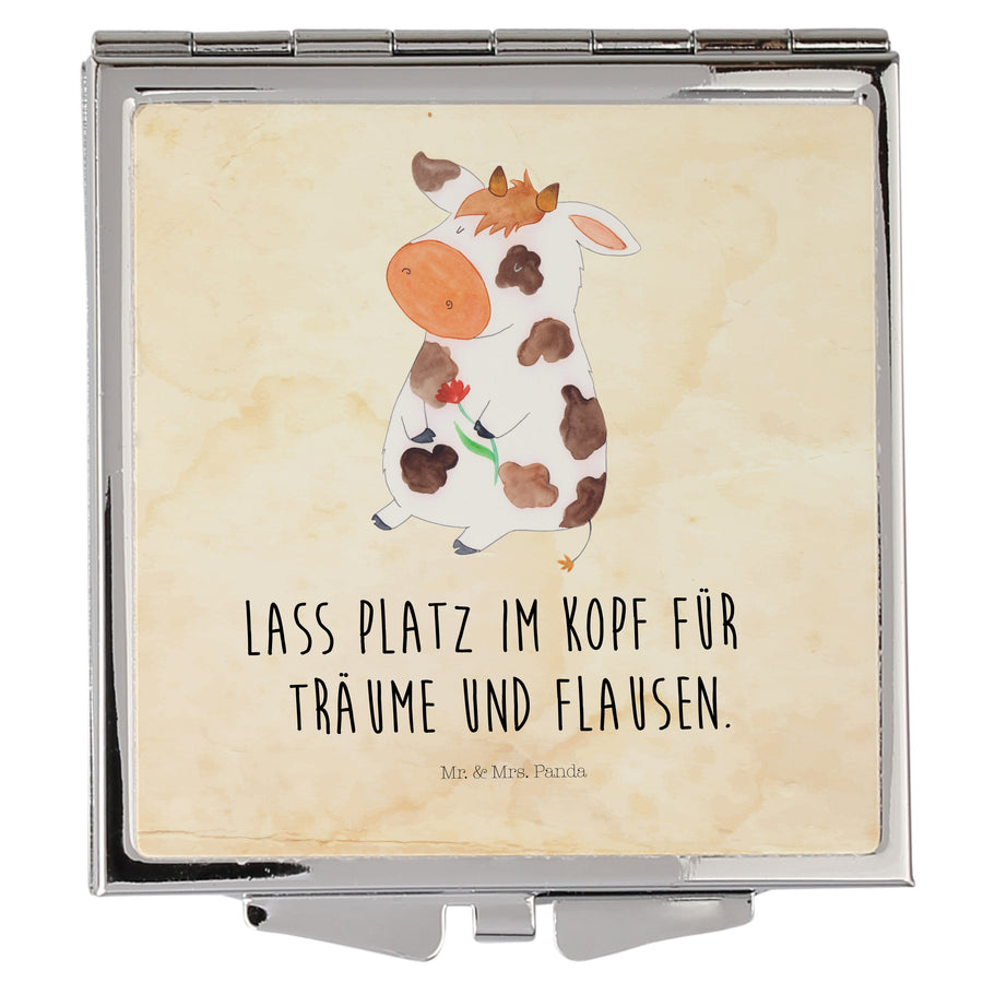 Handtaschenspiegel quadratisch Kuh - mit Spruch - Vintage