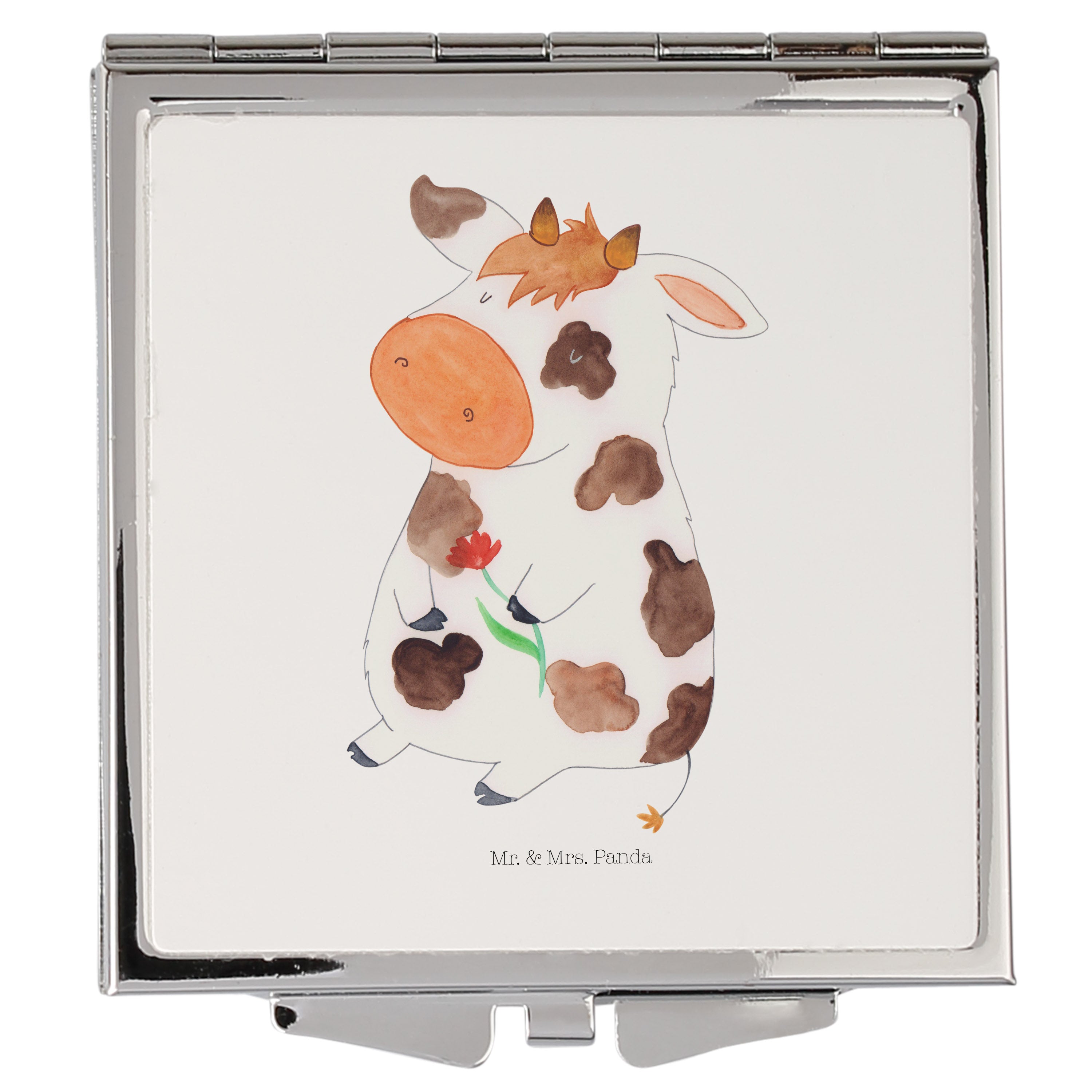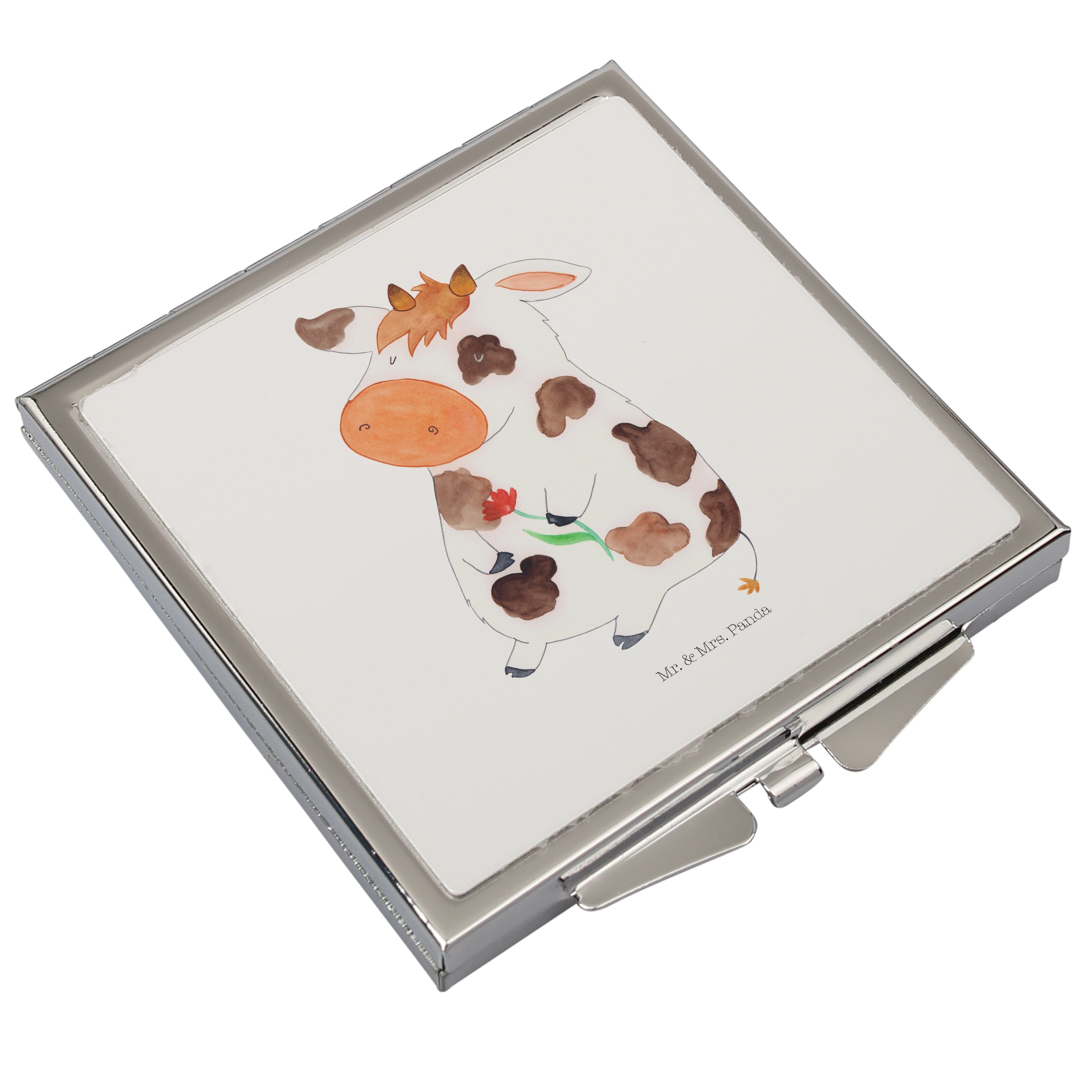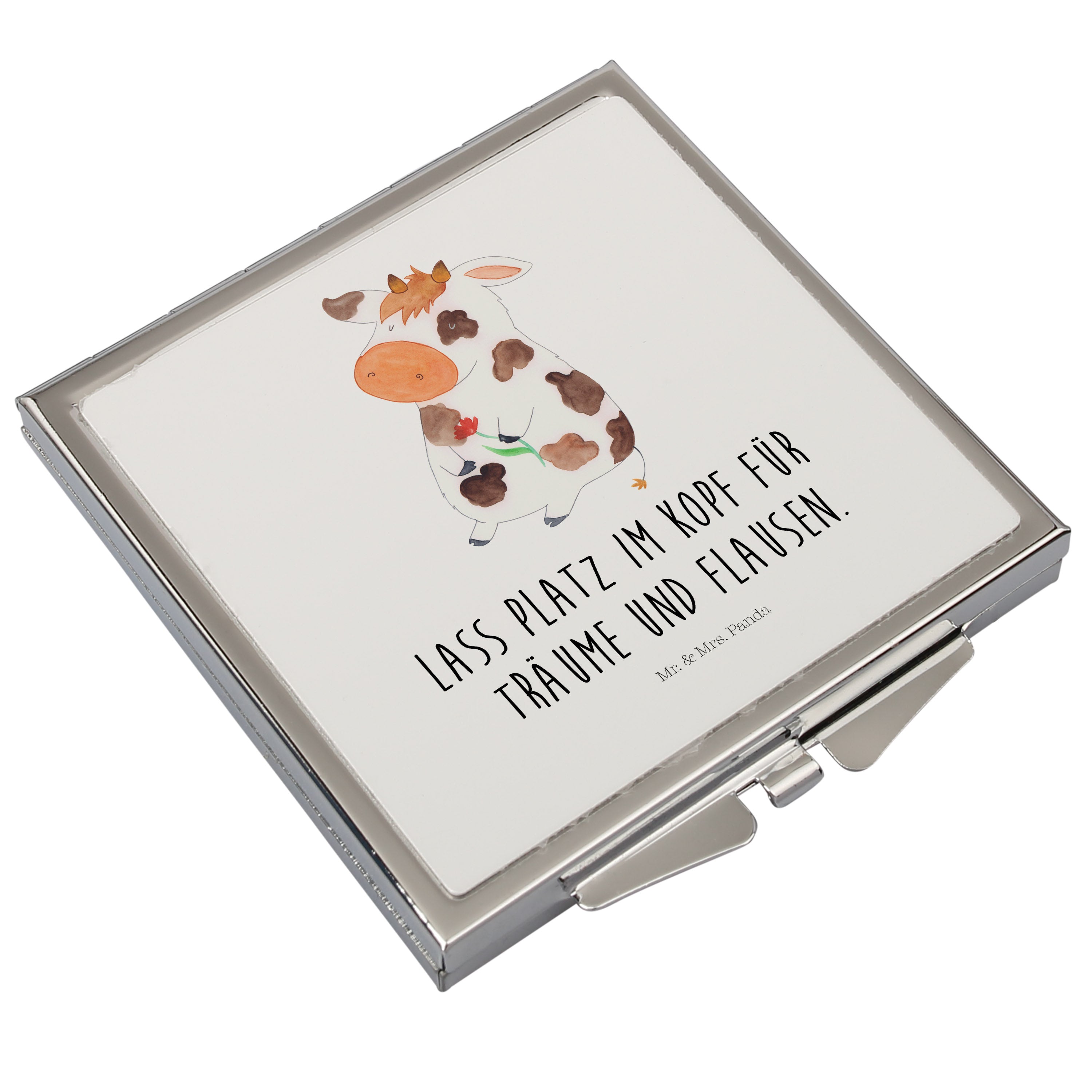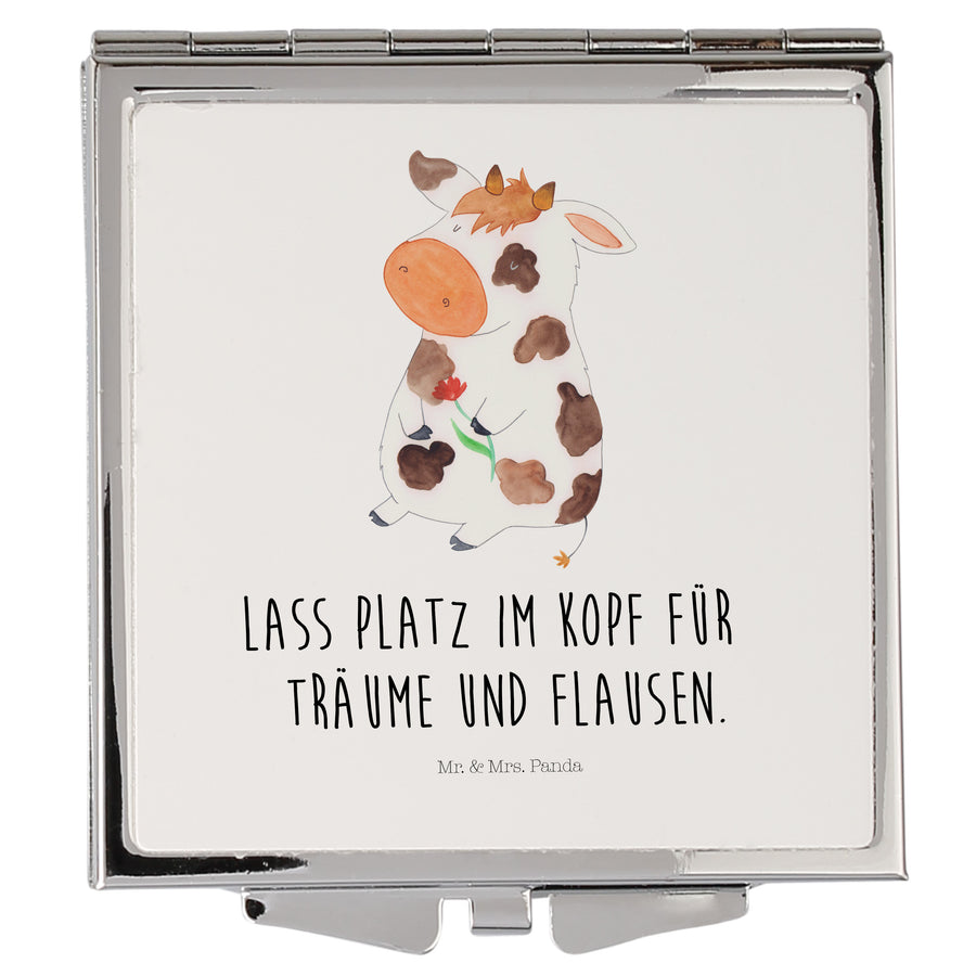 Handtaschenspiegel quadratisch Kuh - mit Spruch - Weiß