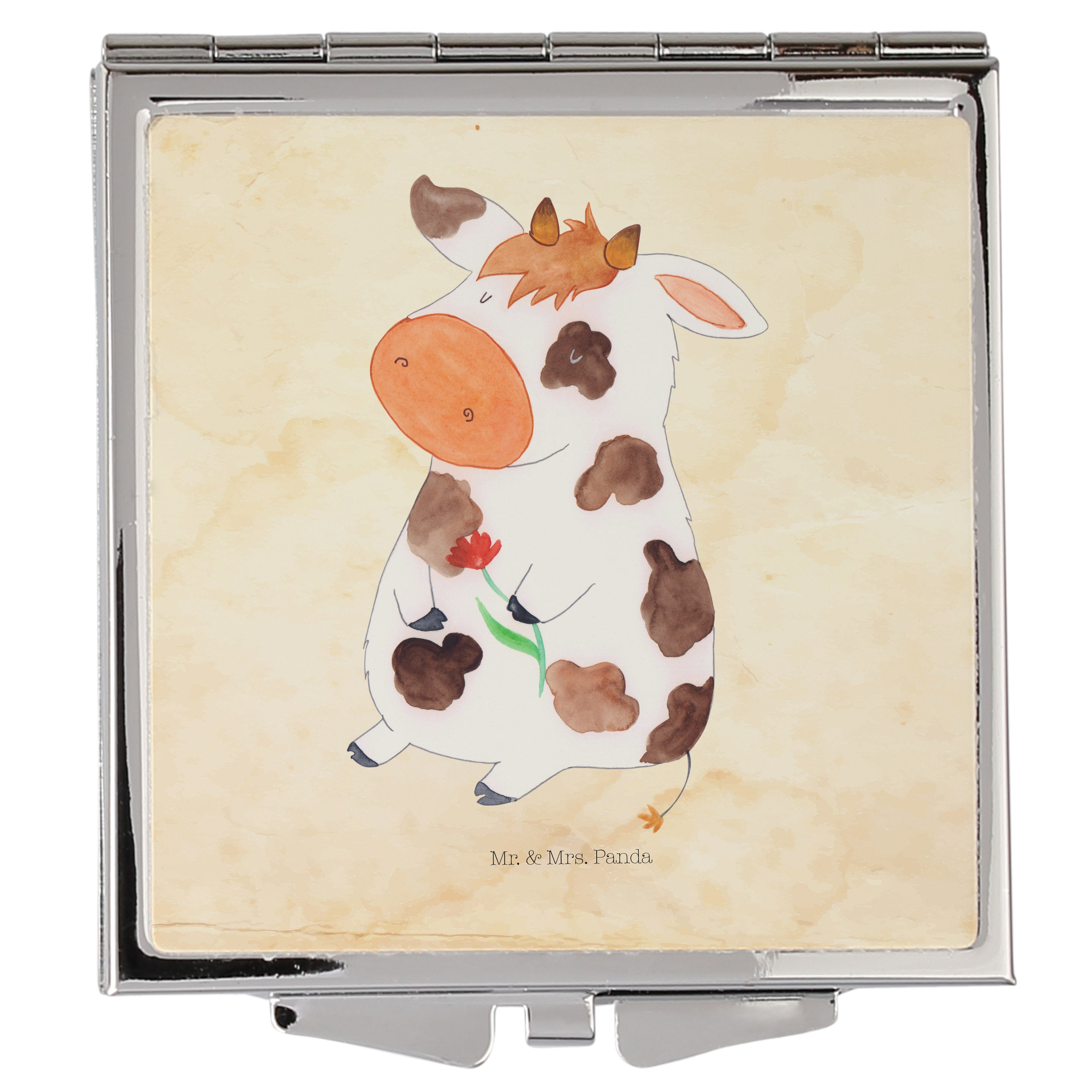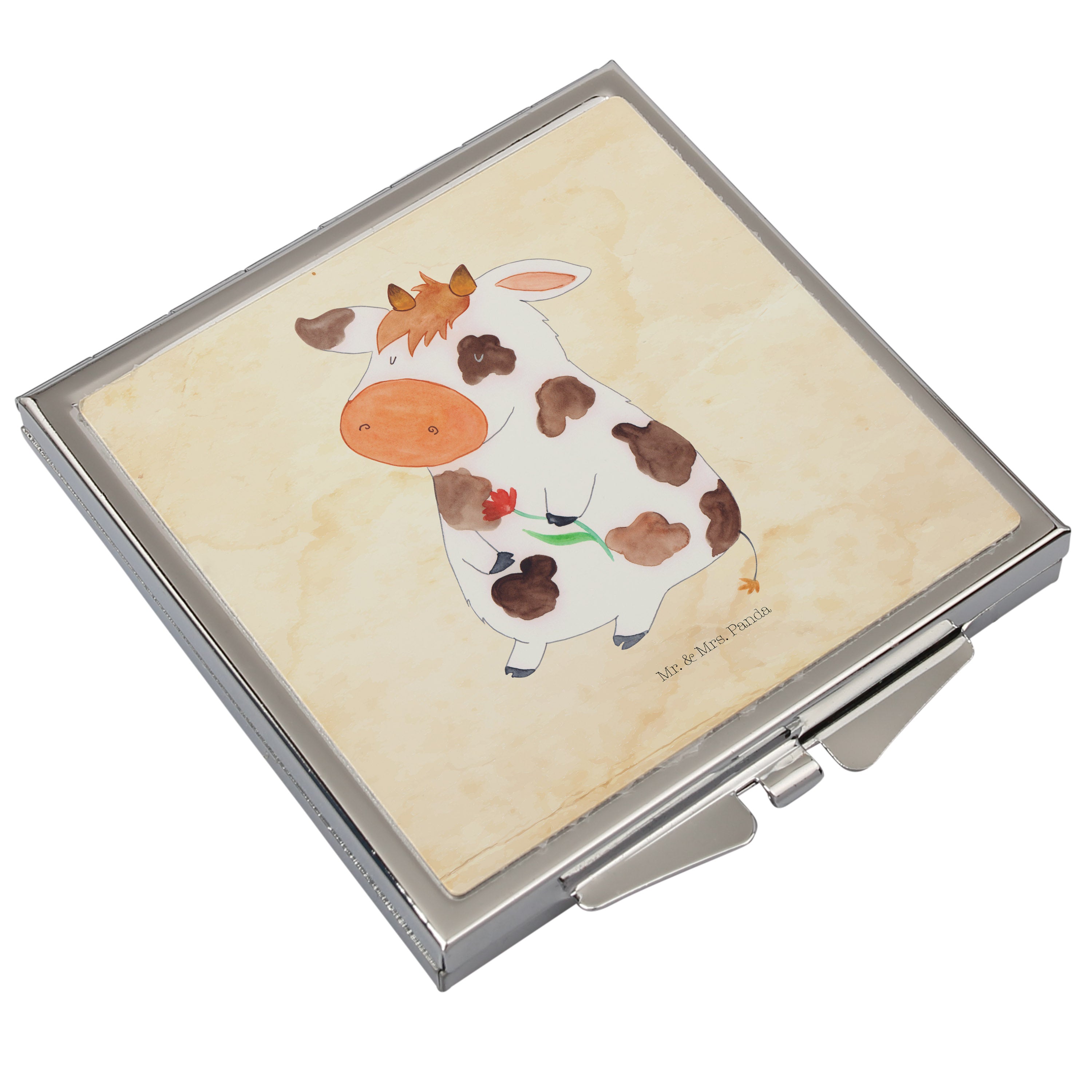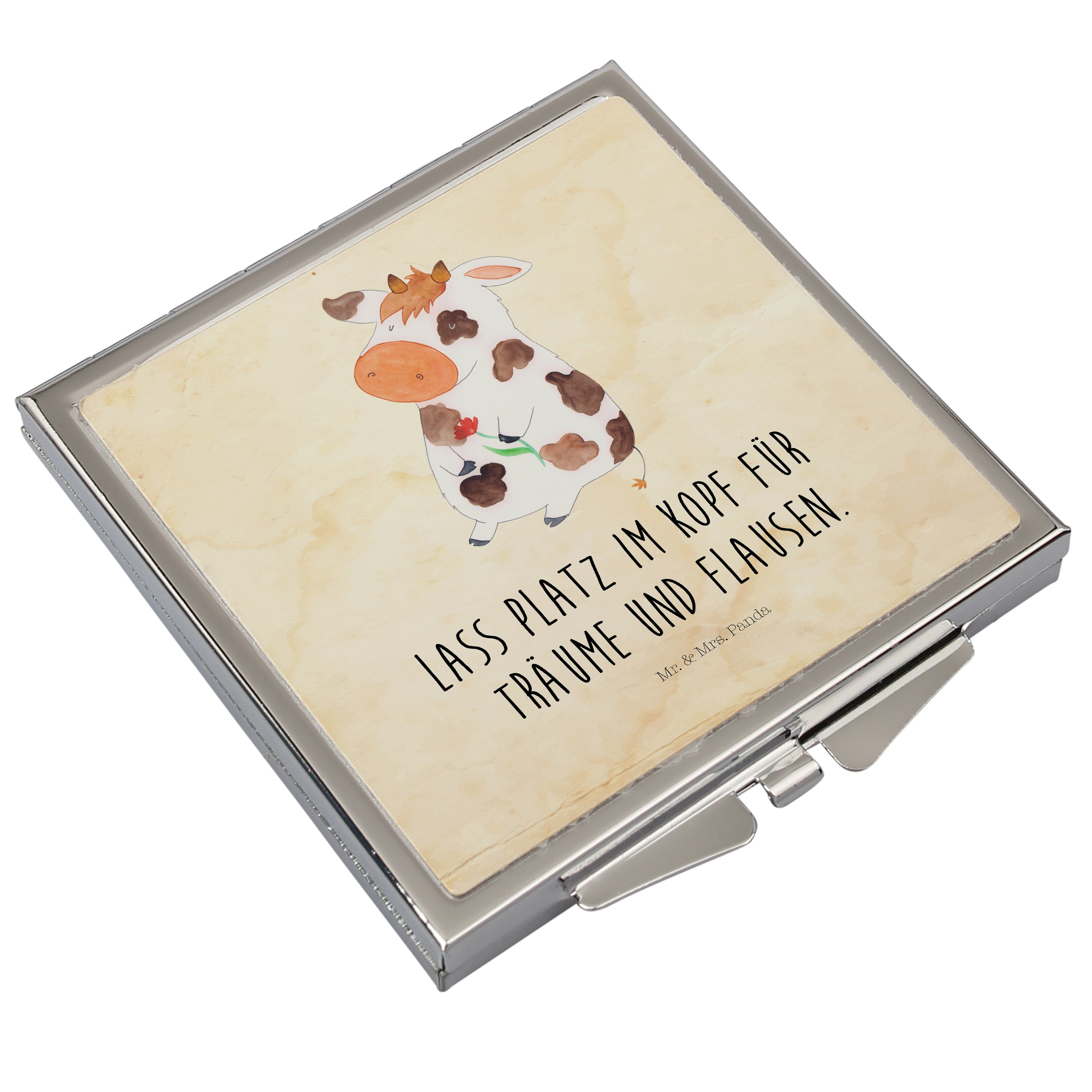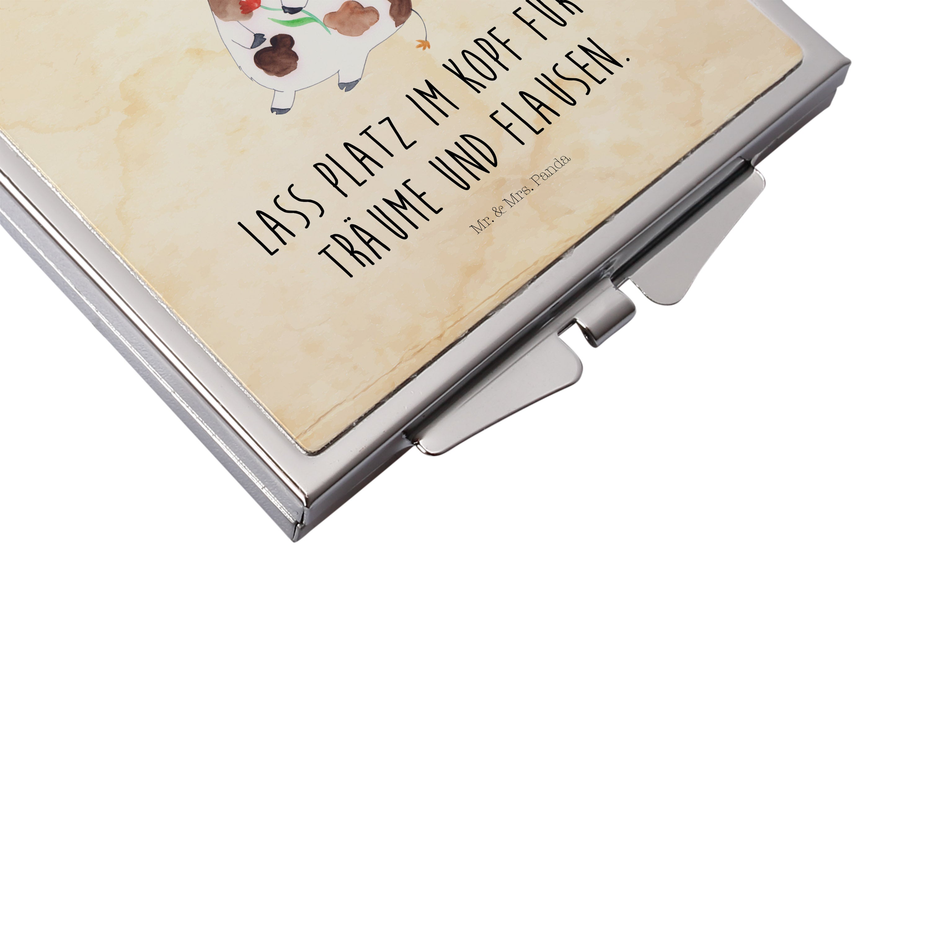 Handtaschenspiegel quadratisch Kuh - mit Spruch - Weiß