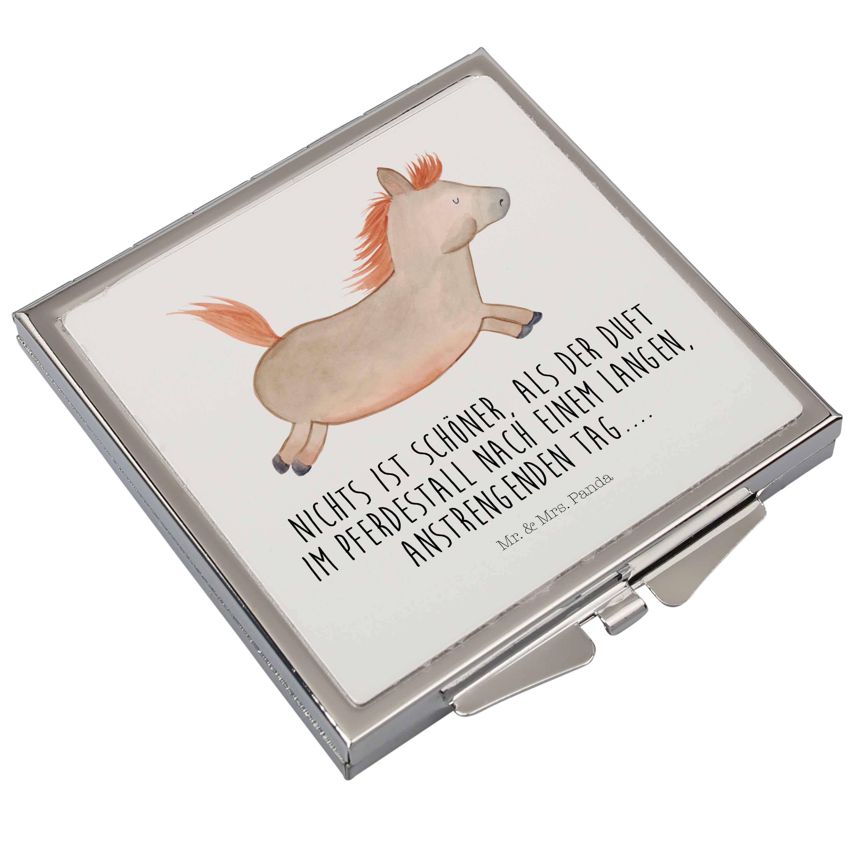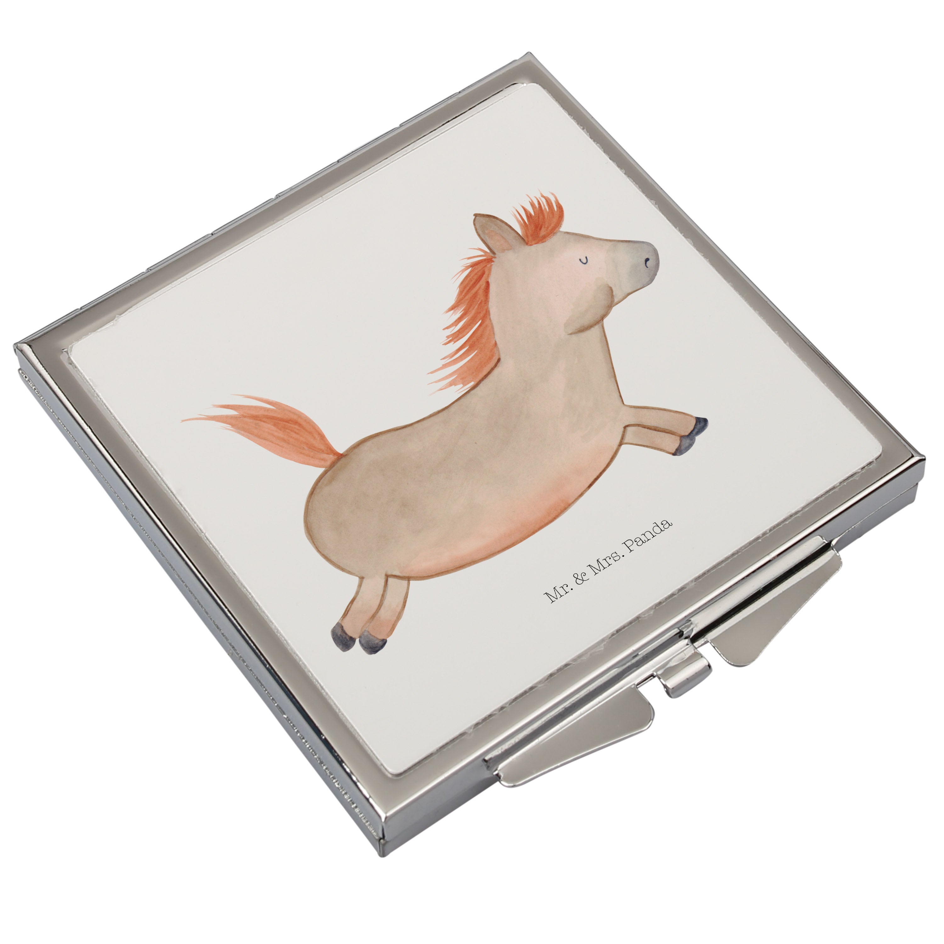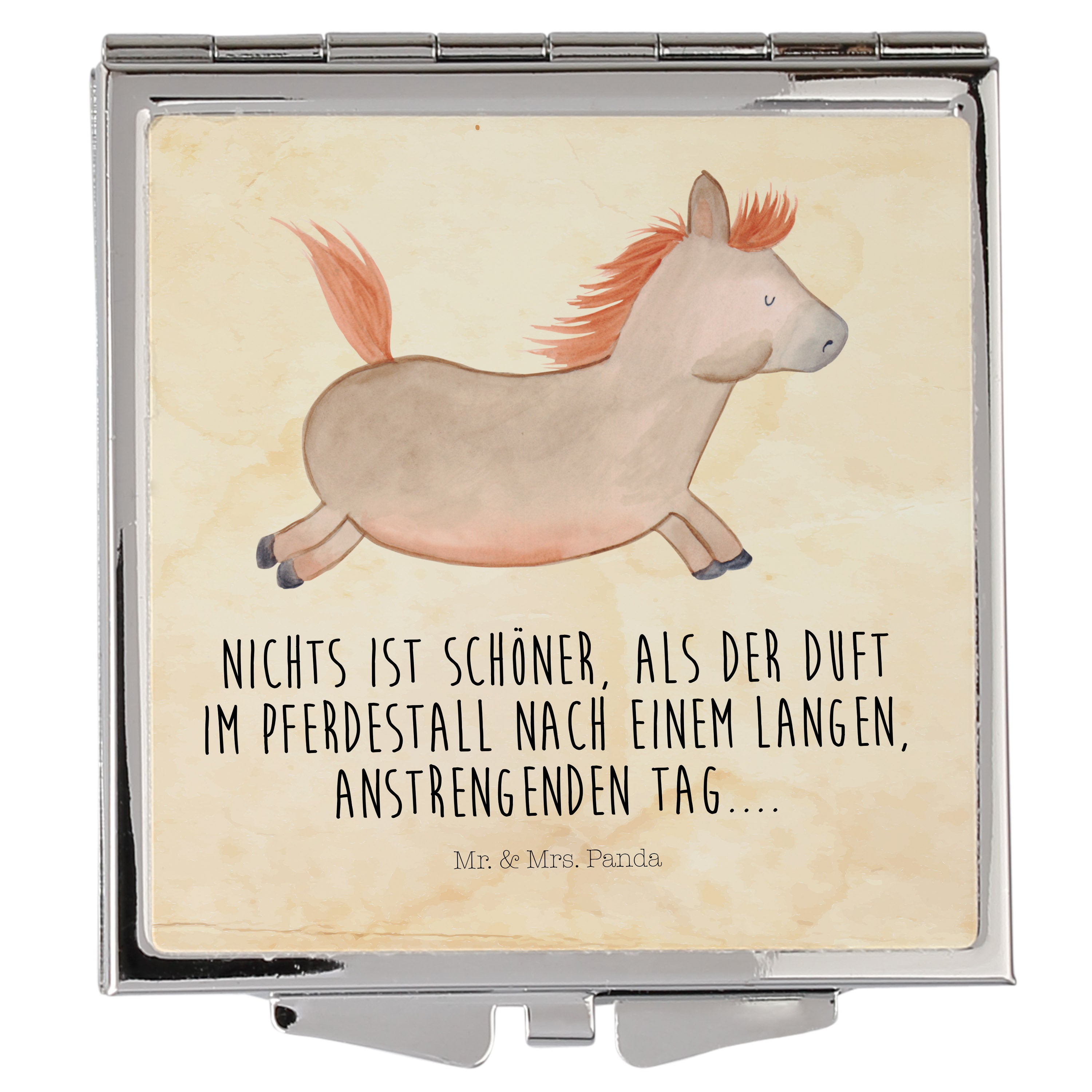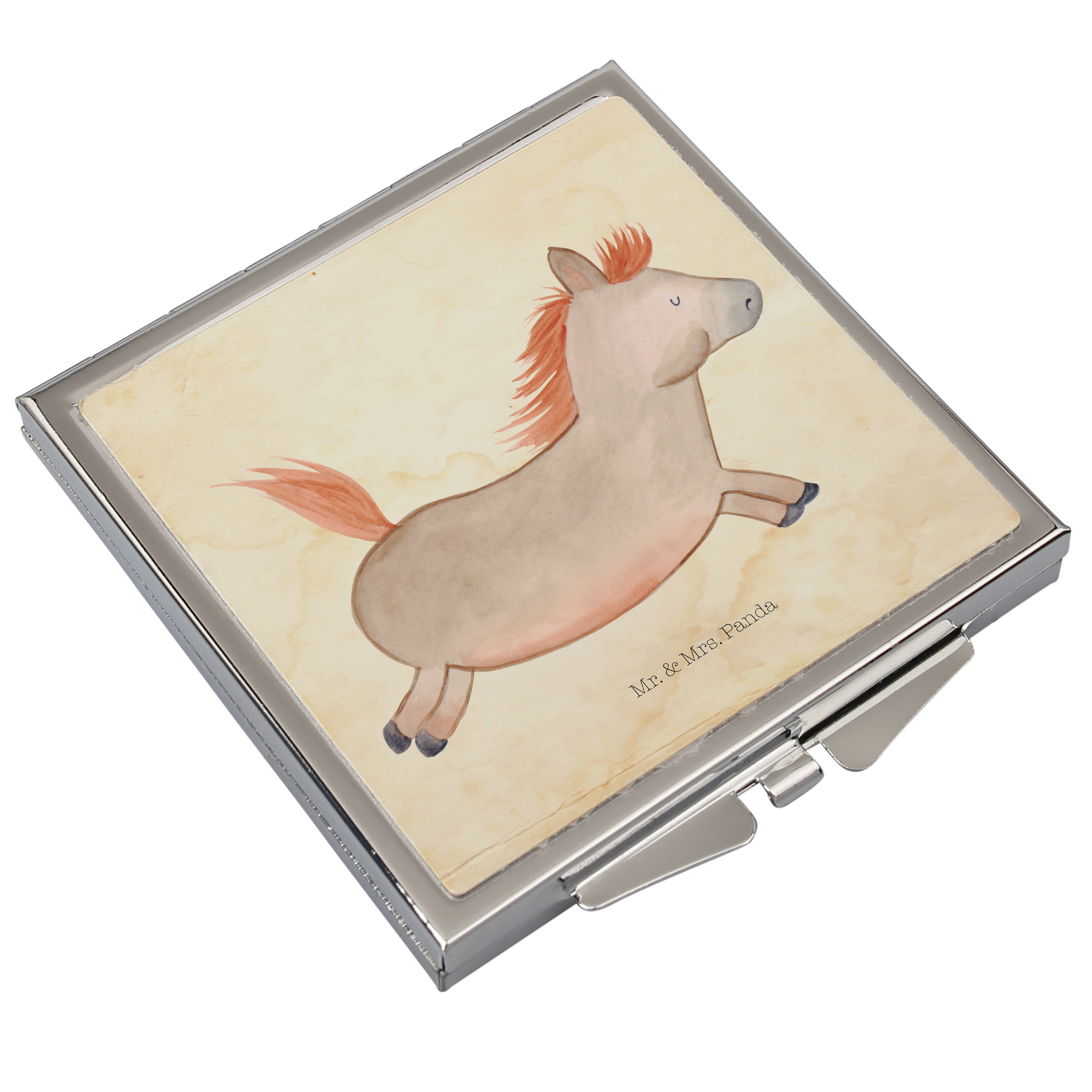 Handtaschenspiegel quadratisch Pferd springt - mit Spruch - Vintage