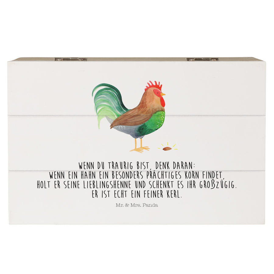 Holzkiste Hahn mit Korn - 19 x 12 cm - mit Spruch - Weiß