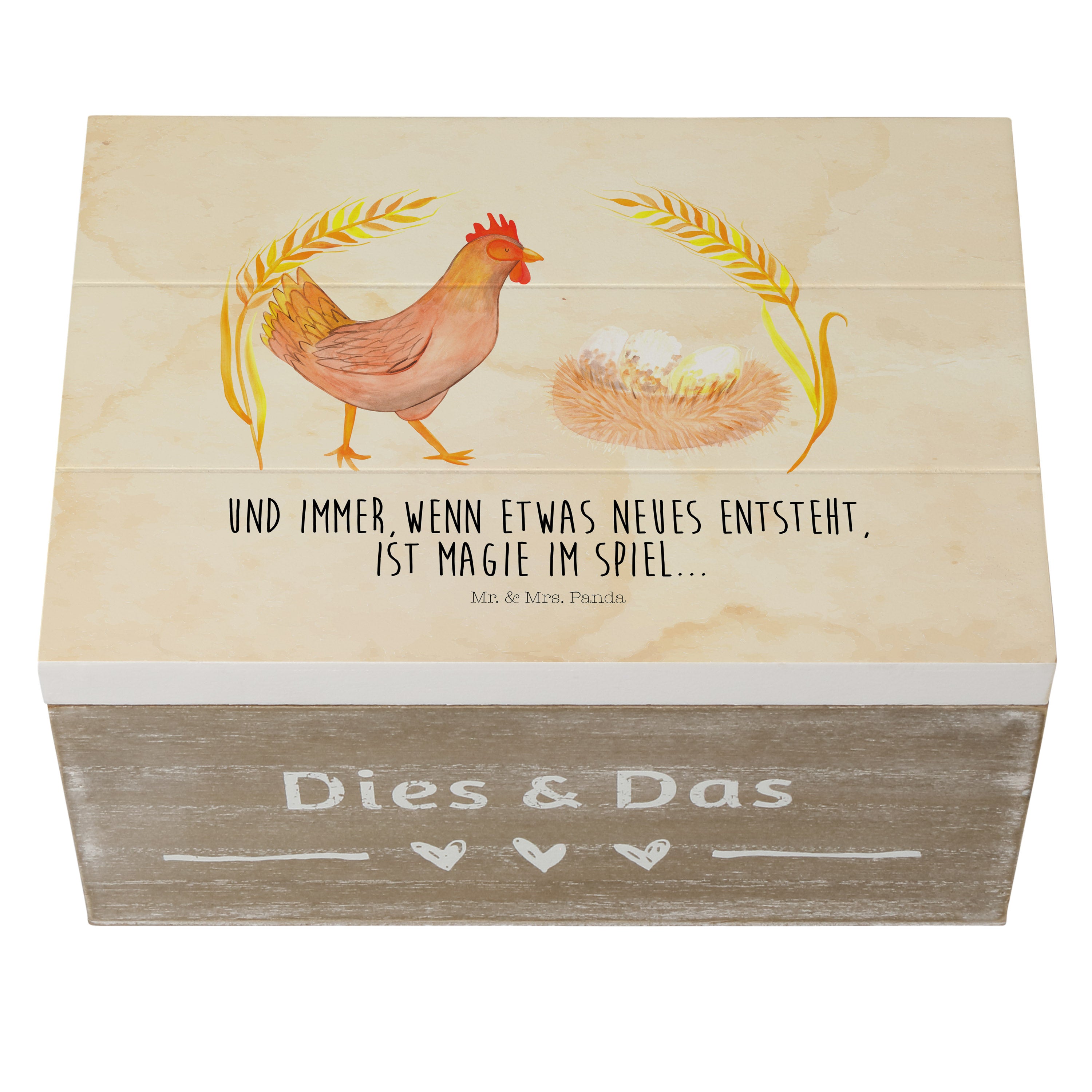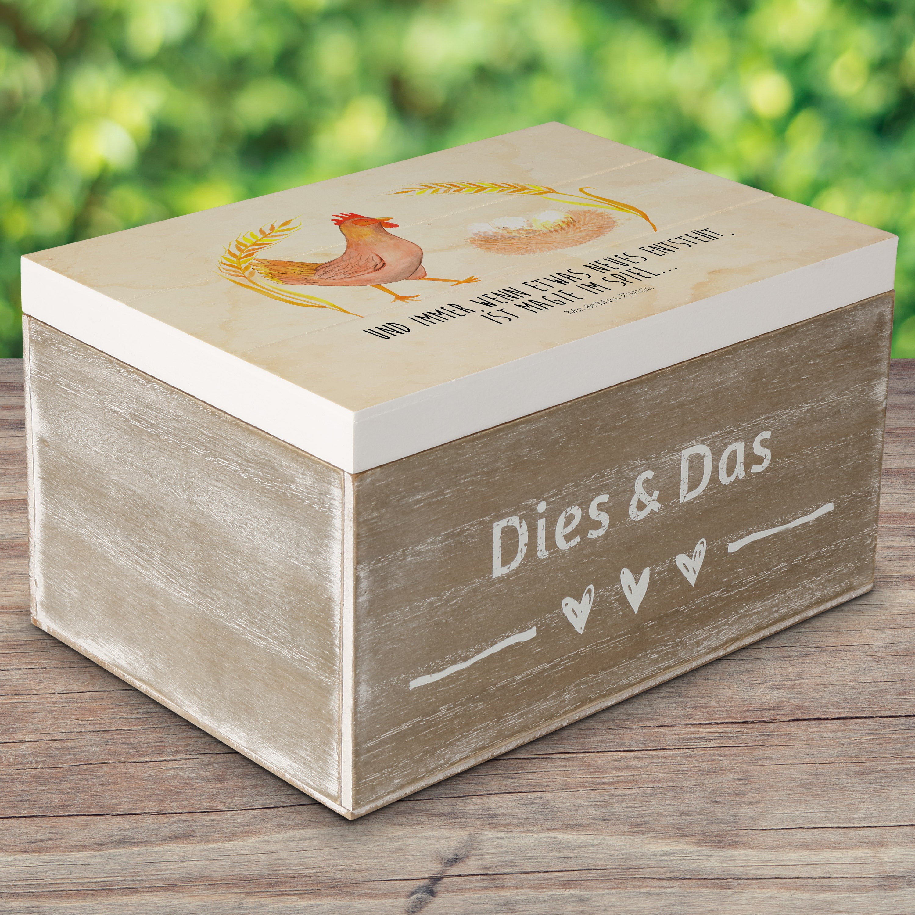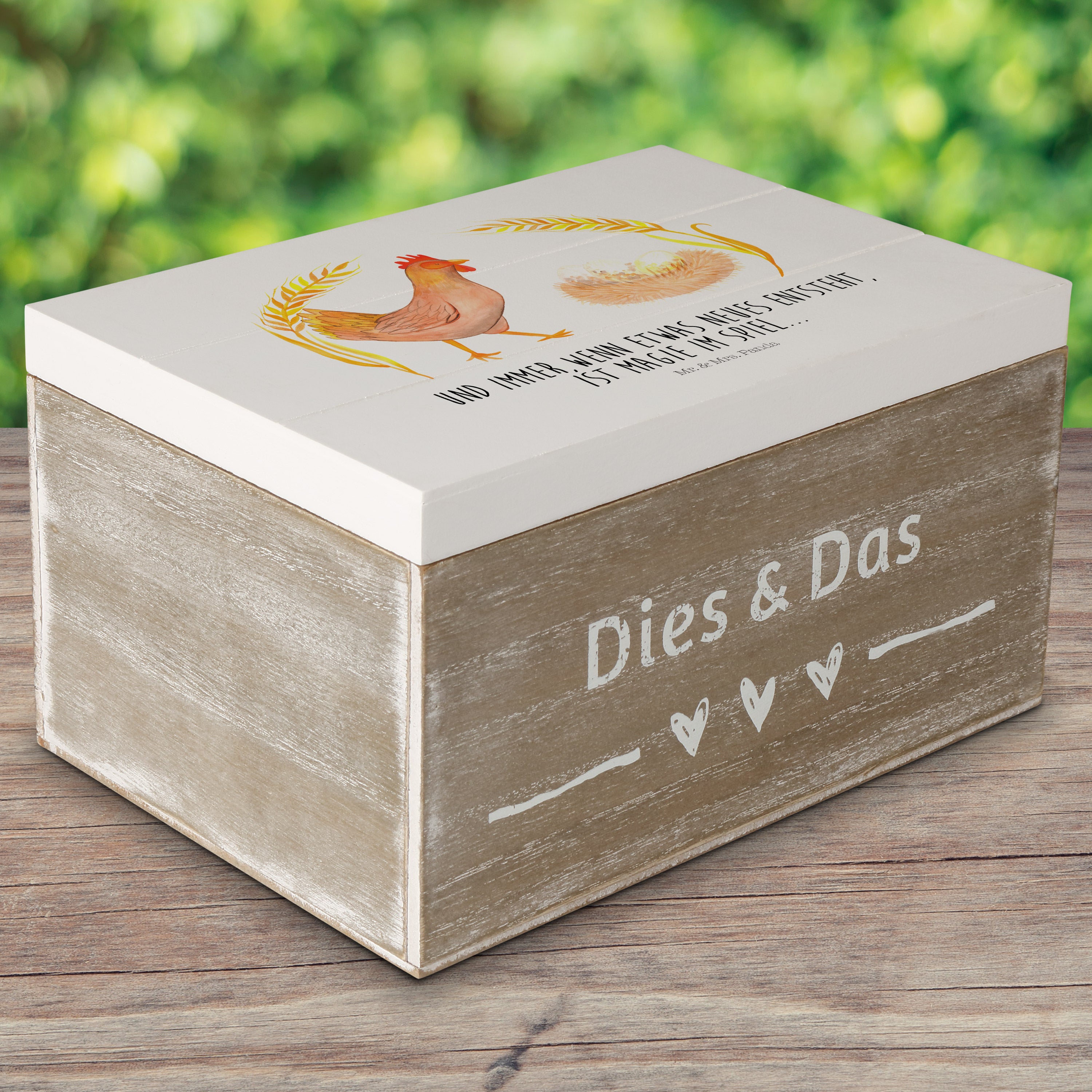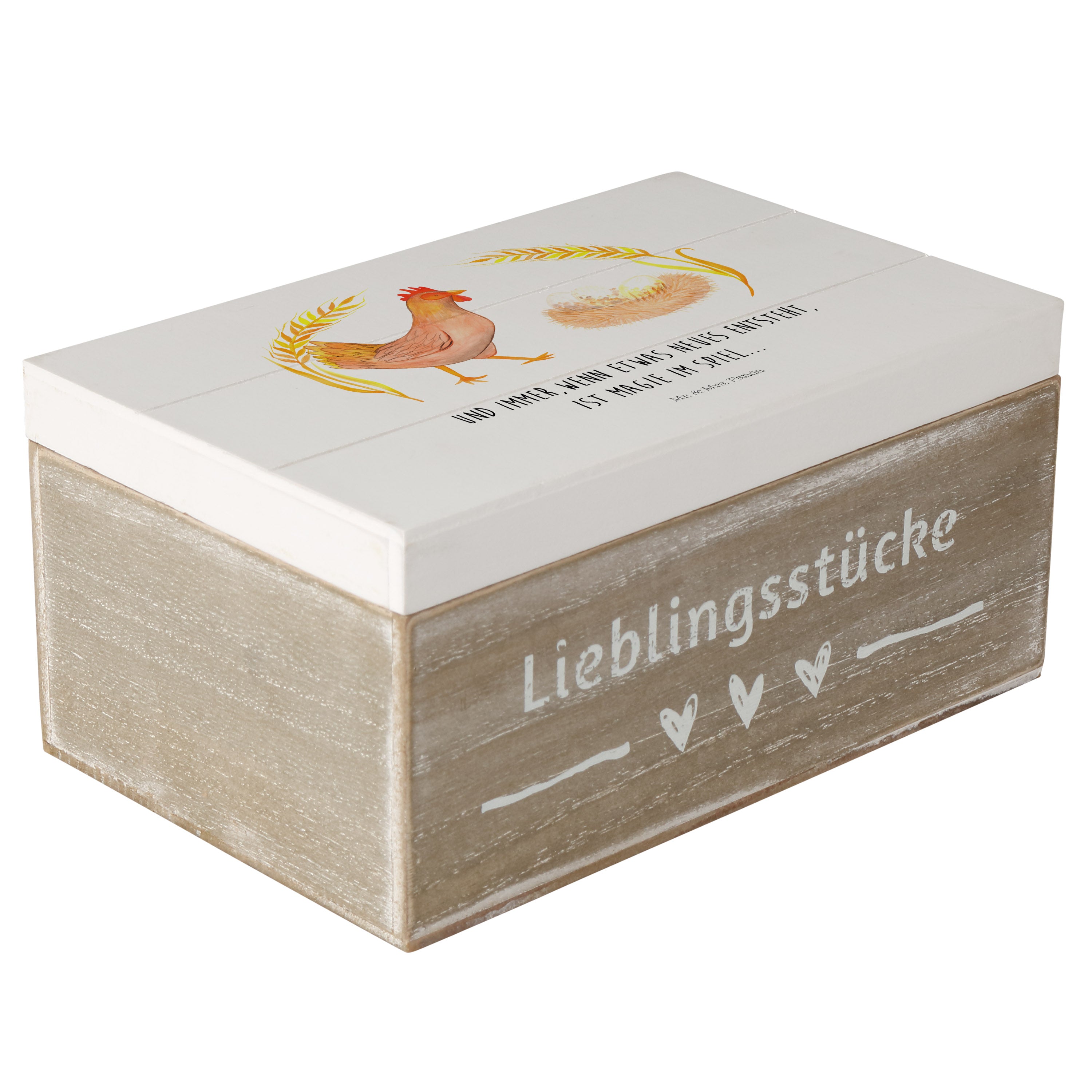 Holzkiste Huhn stolz - 25 x 18 cm - mit Spruch - Weiß