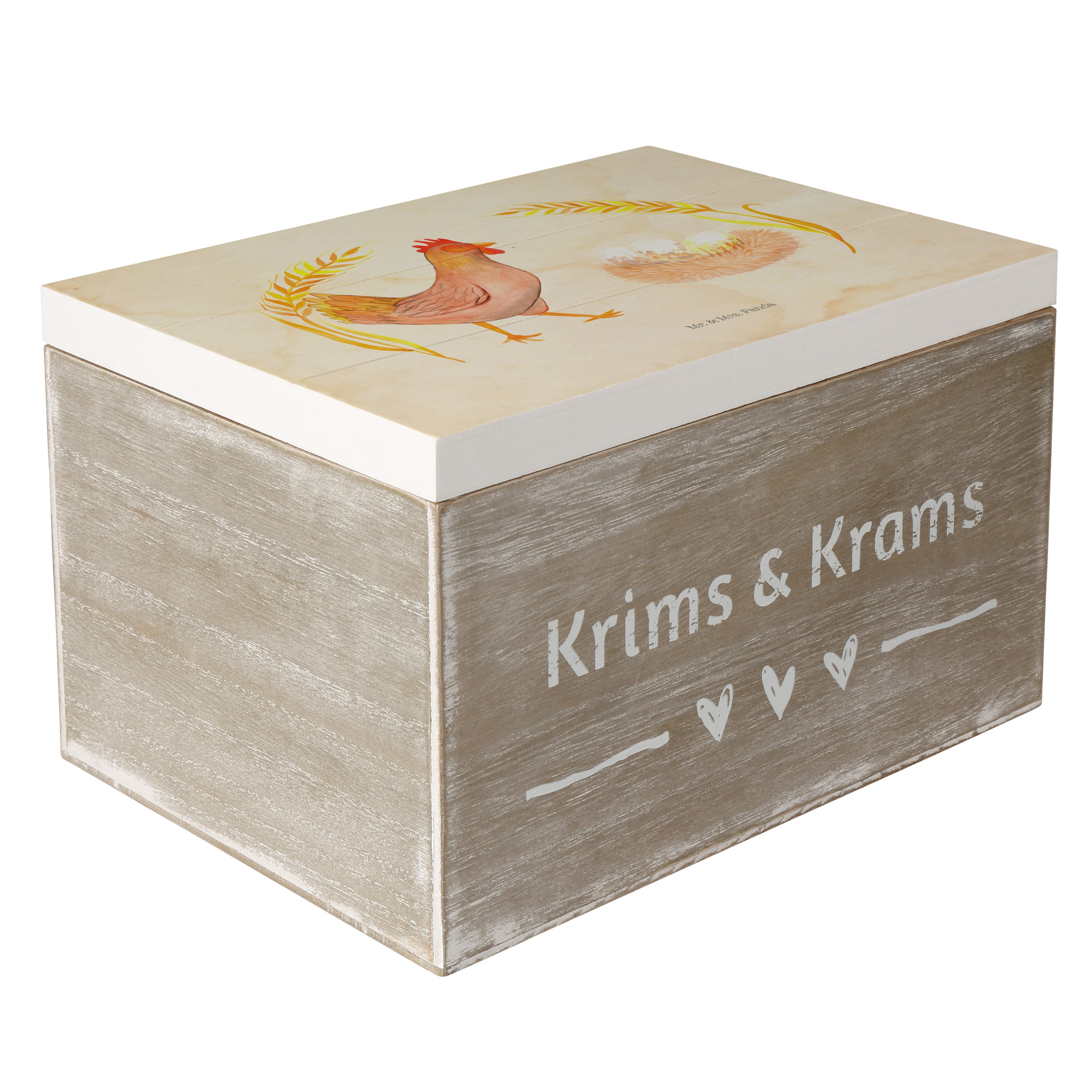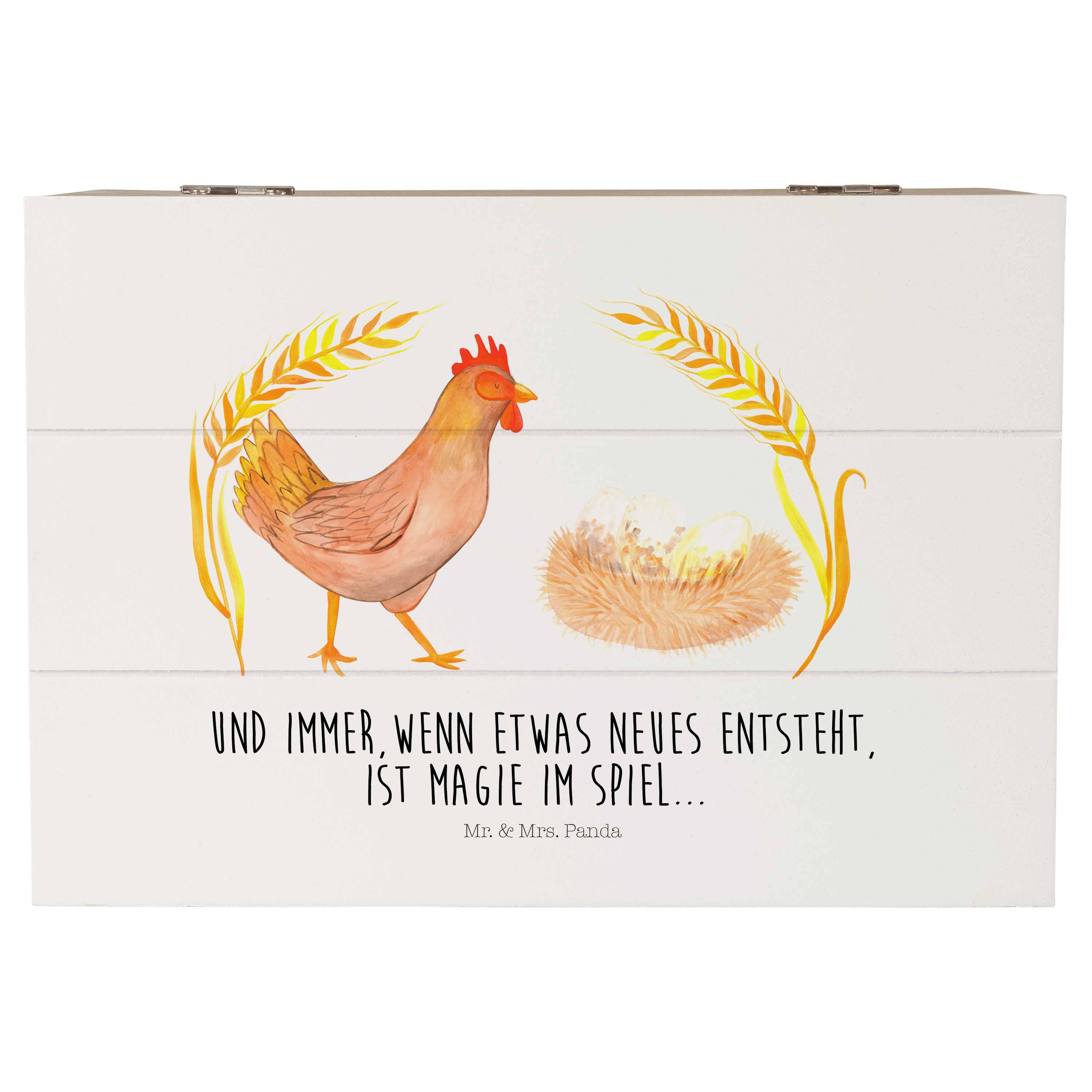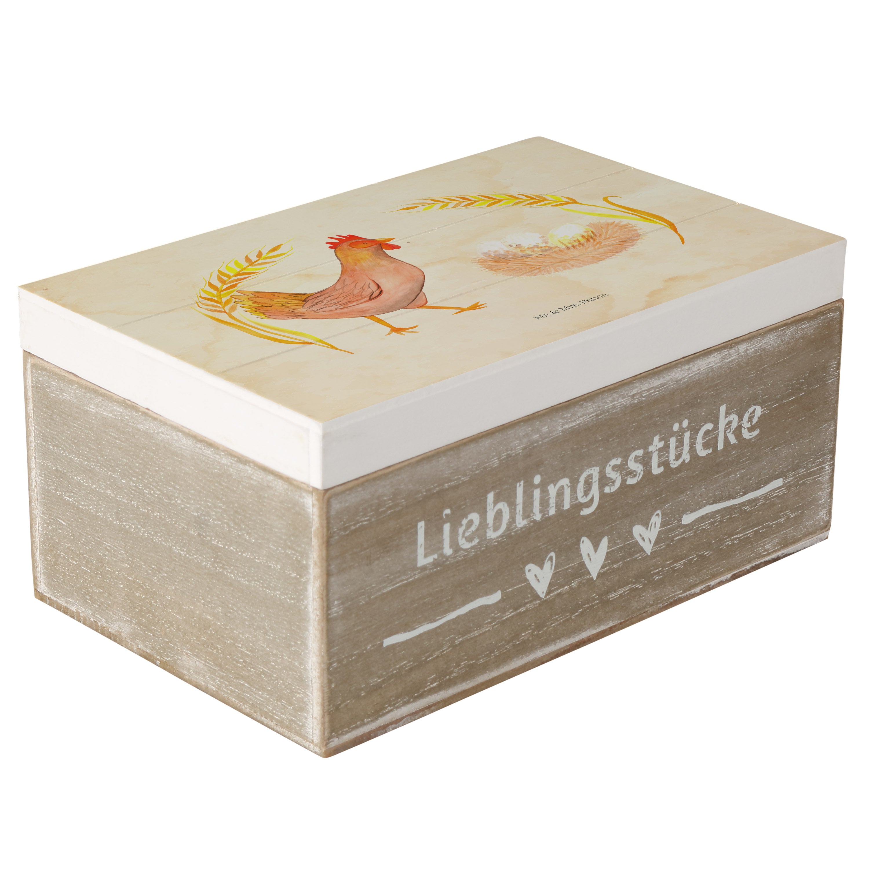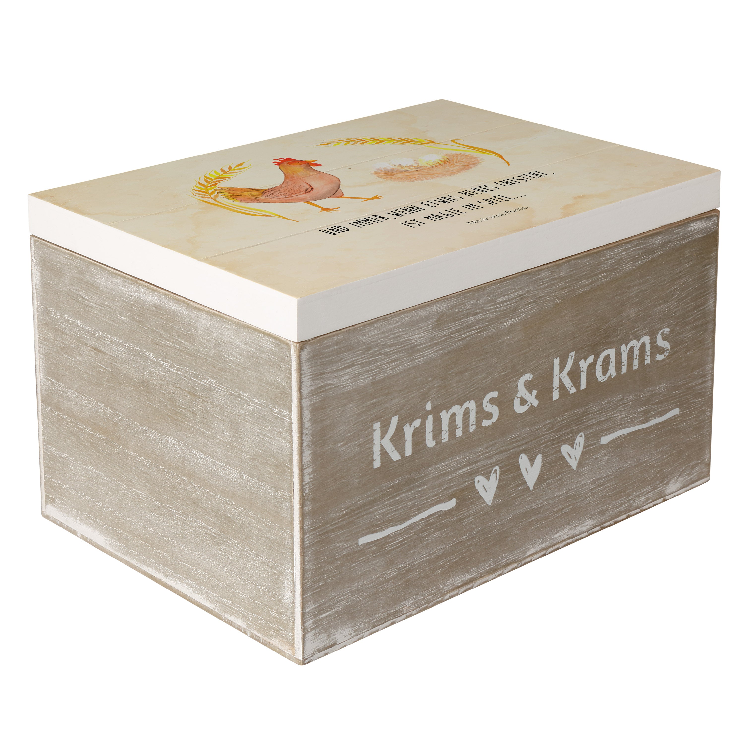 Holzkiste Huhn stolz - 25 x 18 cm - mit Spruch - Weiß