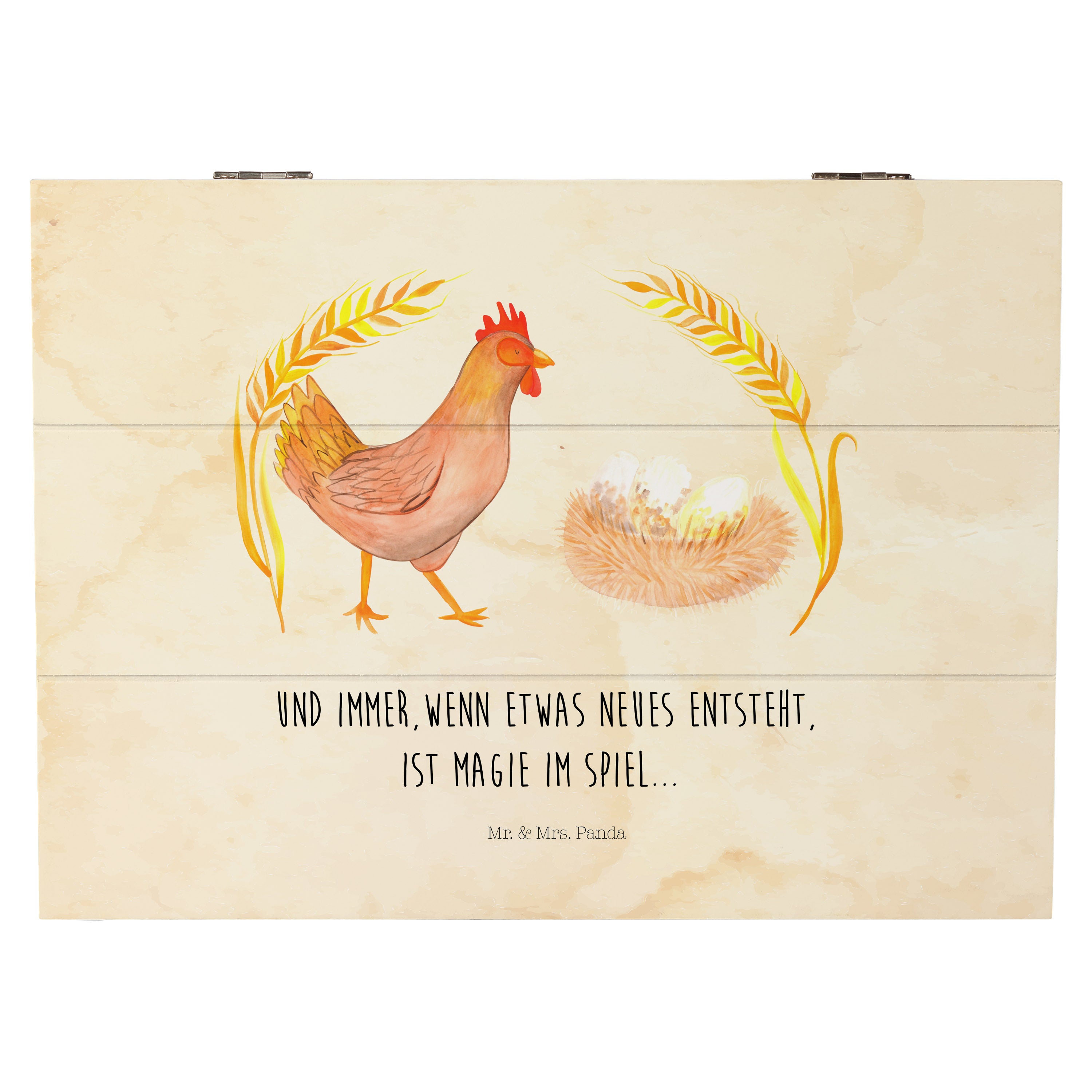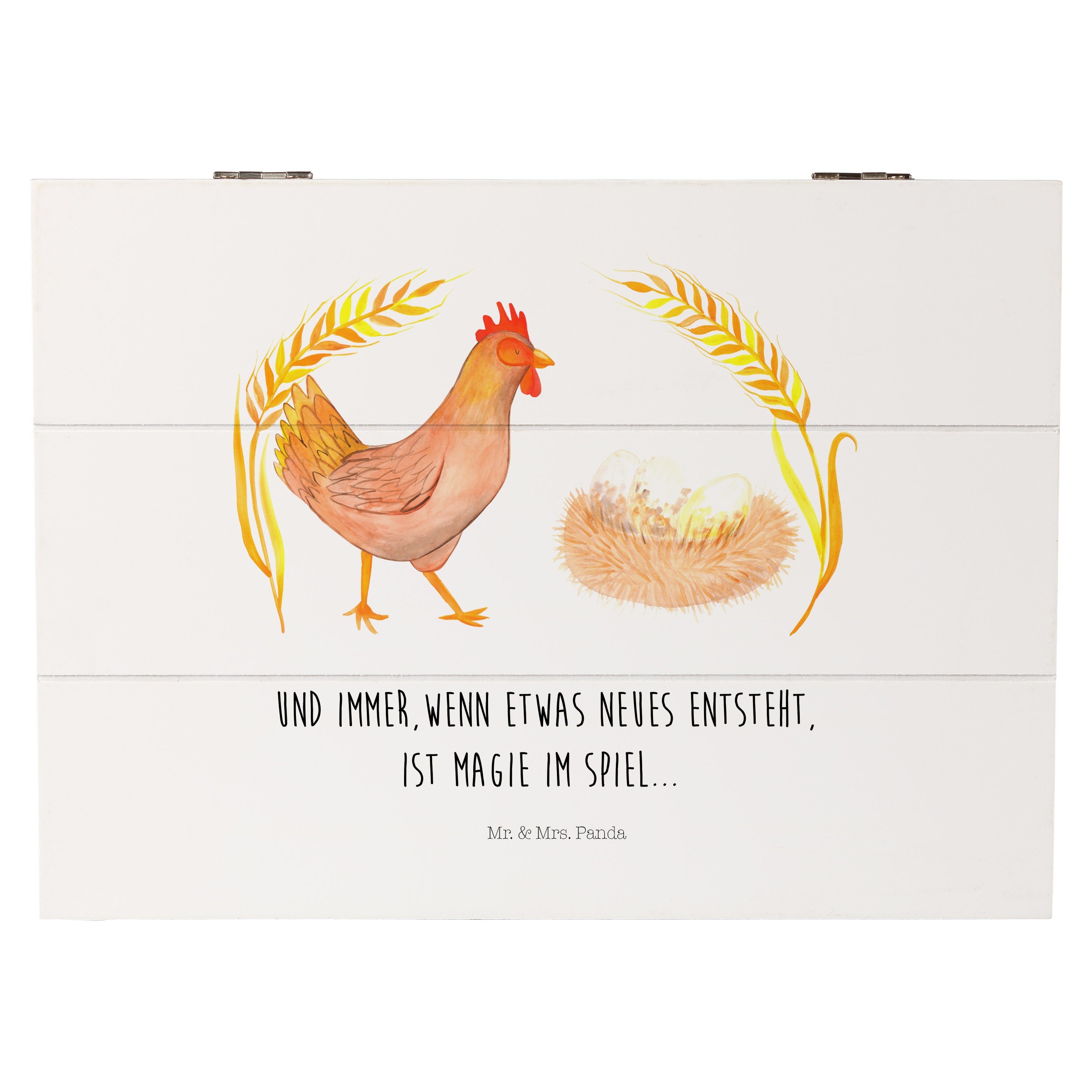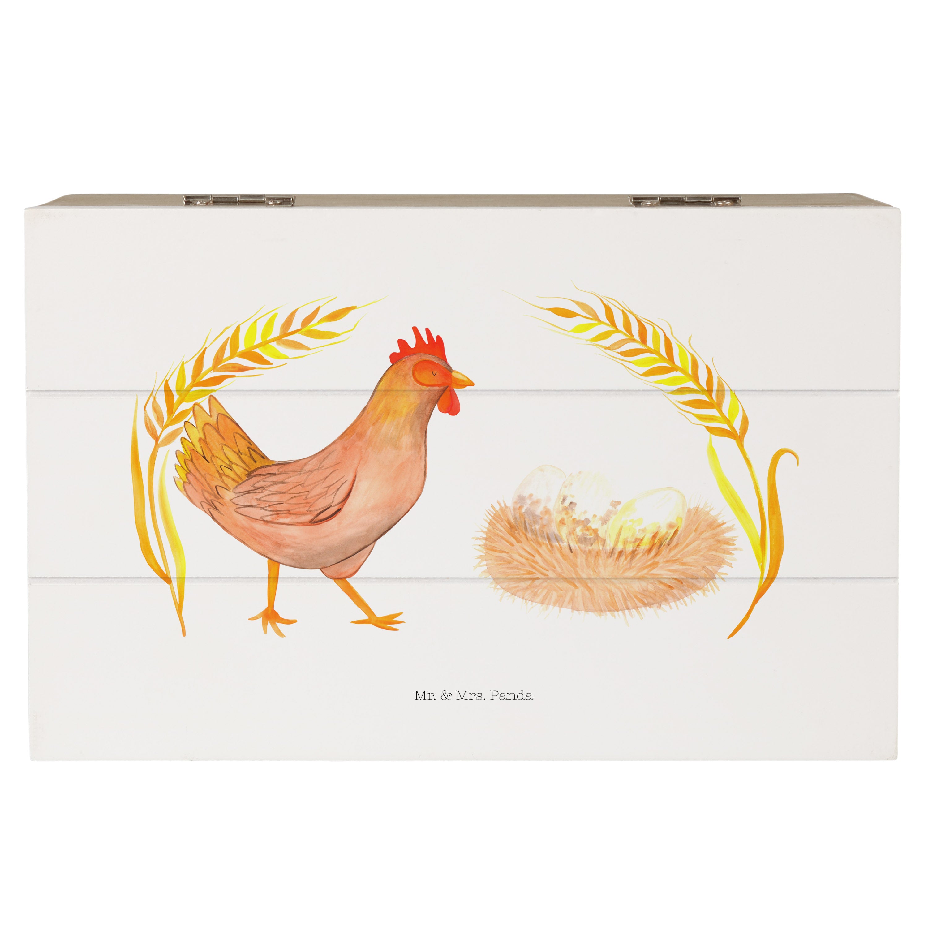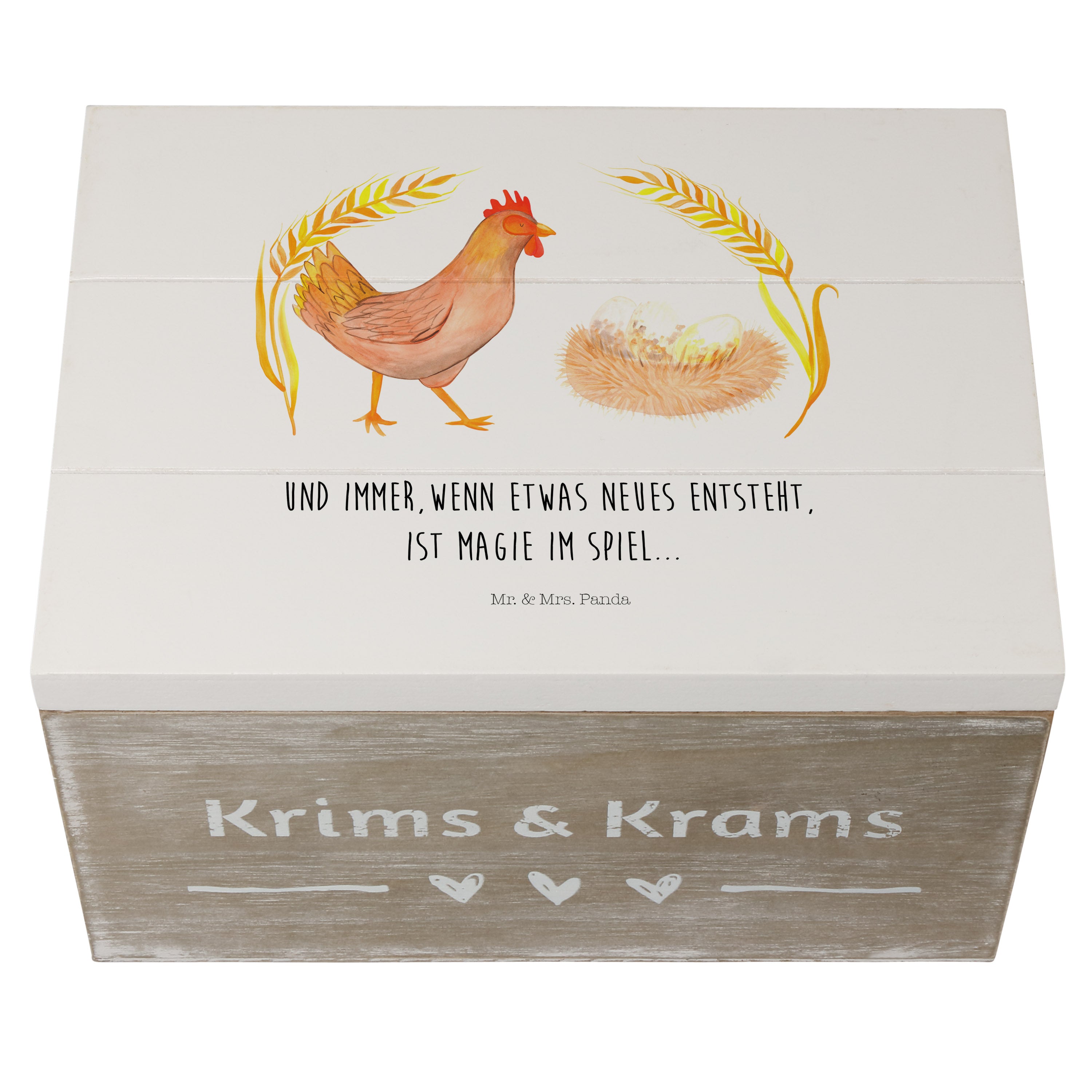 Holzkiste Huhn stolz - 25 x 18 cm - mit Spruch - Weiß