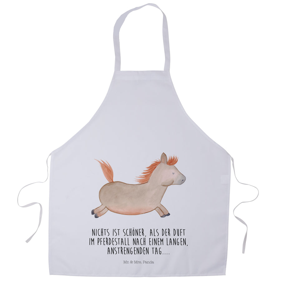 Kochschürze Pferd springt - mit Spruch - Weiß