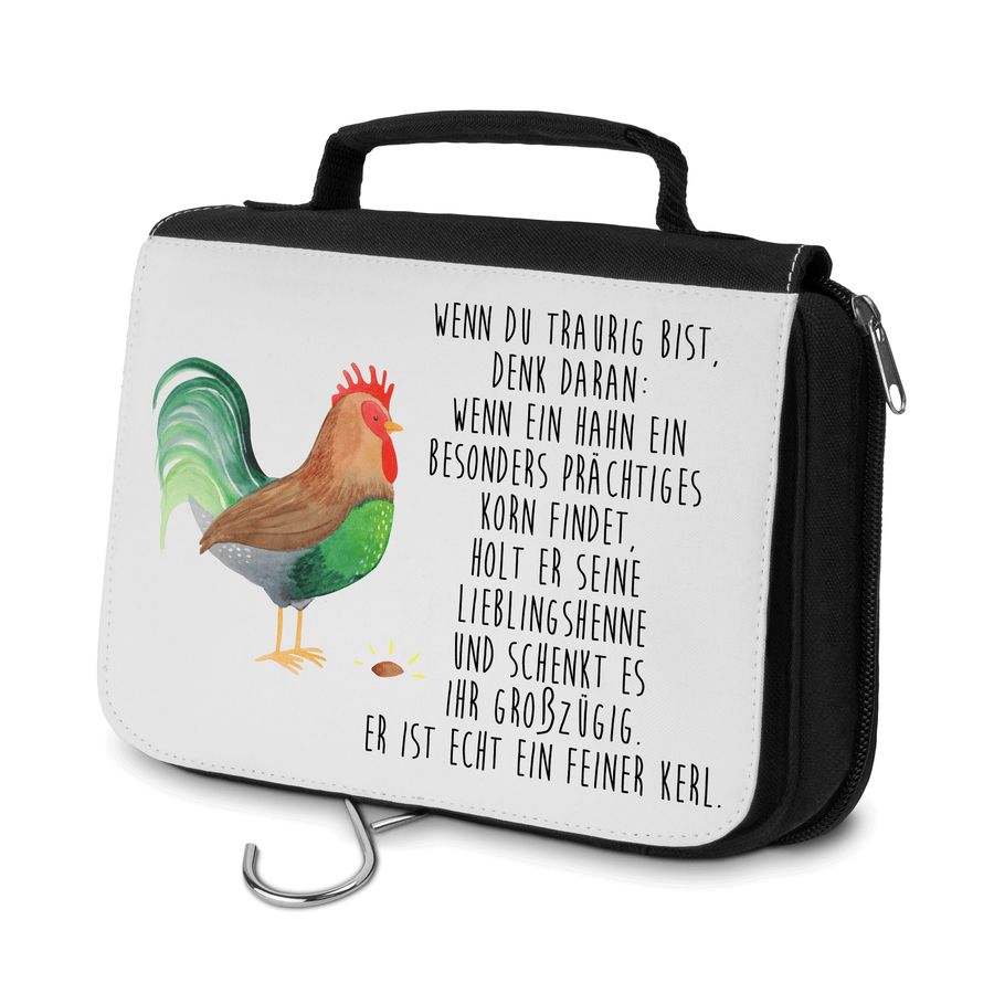 Kulturbeutel Hahn mit Korn - mit Spruch - Weiß