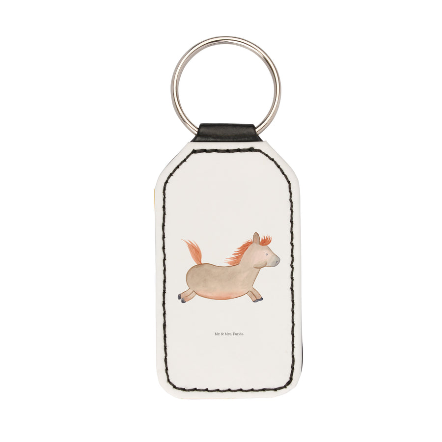 Rechteckig Schlüsselanhänger Pferd springt - Weiß