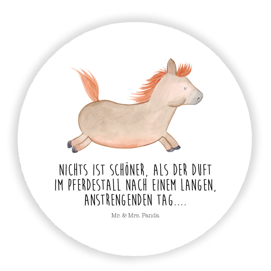 Rund Magnet Pferd springt - mit Spruch - Weiß