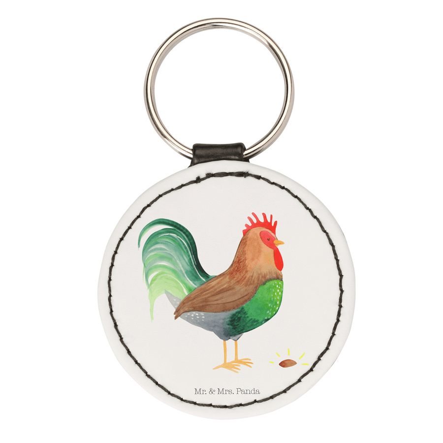 Rund Schlüsselanhänger Hahn mit Korn - Weiß
