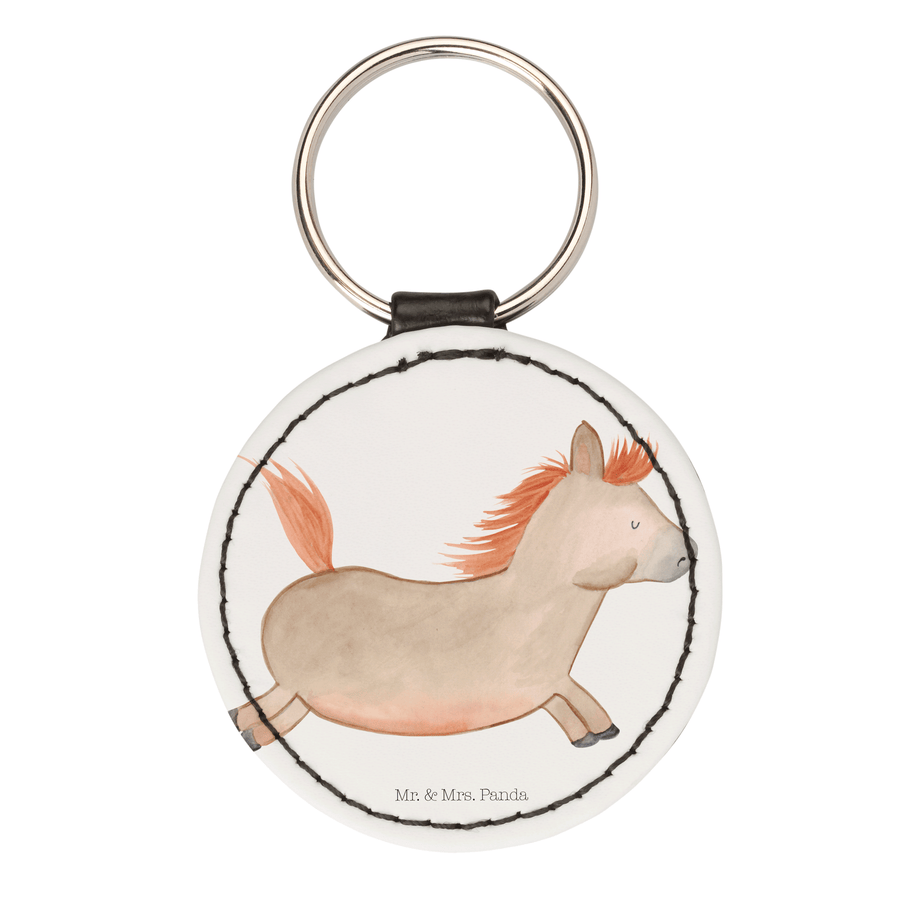 Rund Schlüsselanhänger Pferd springt - Weiß