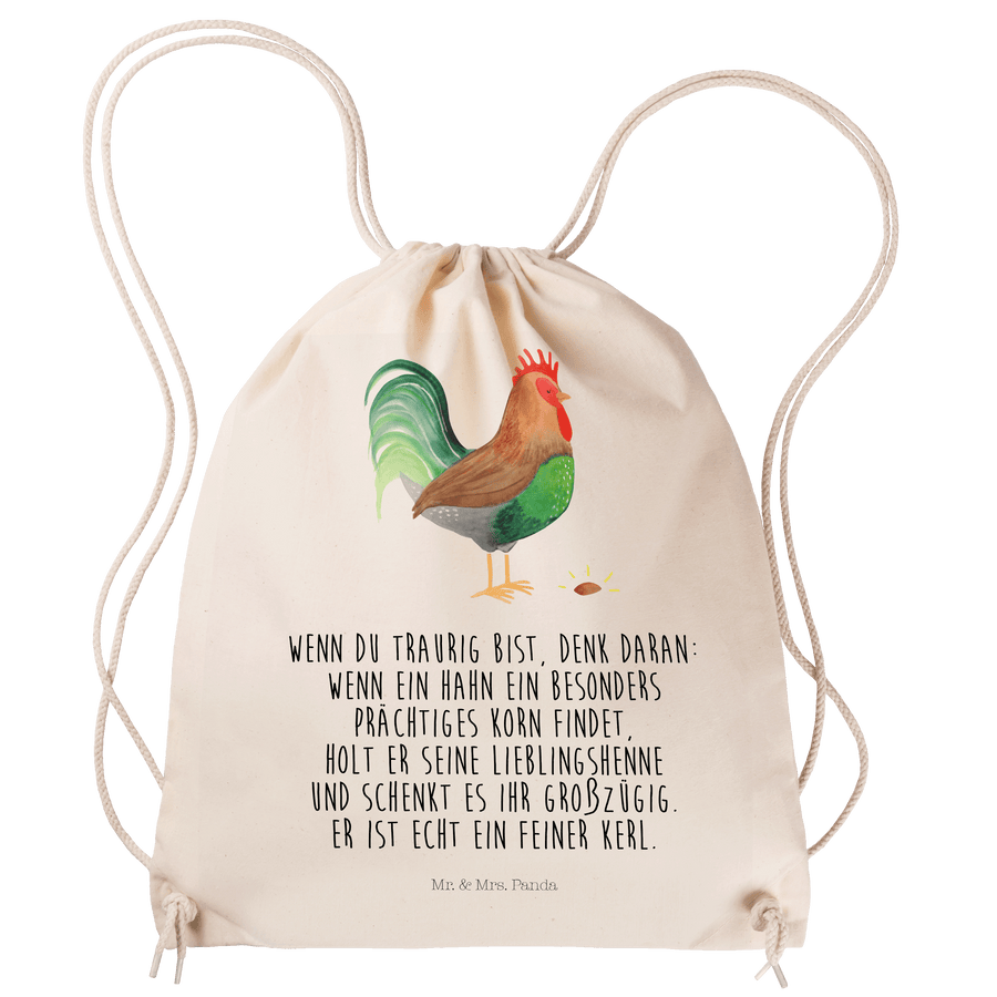 Sportbeutel Hahn mit Korn - mit Spruch - Transparent