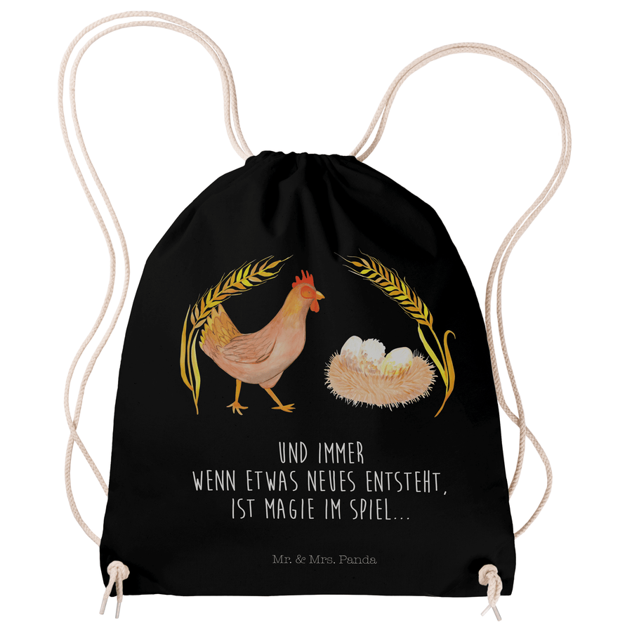 Sportbeutel Huhn stolz - mit Spruch - Schwarz