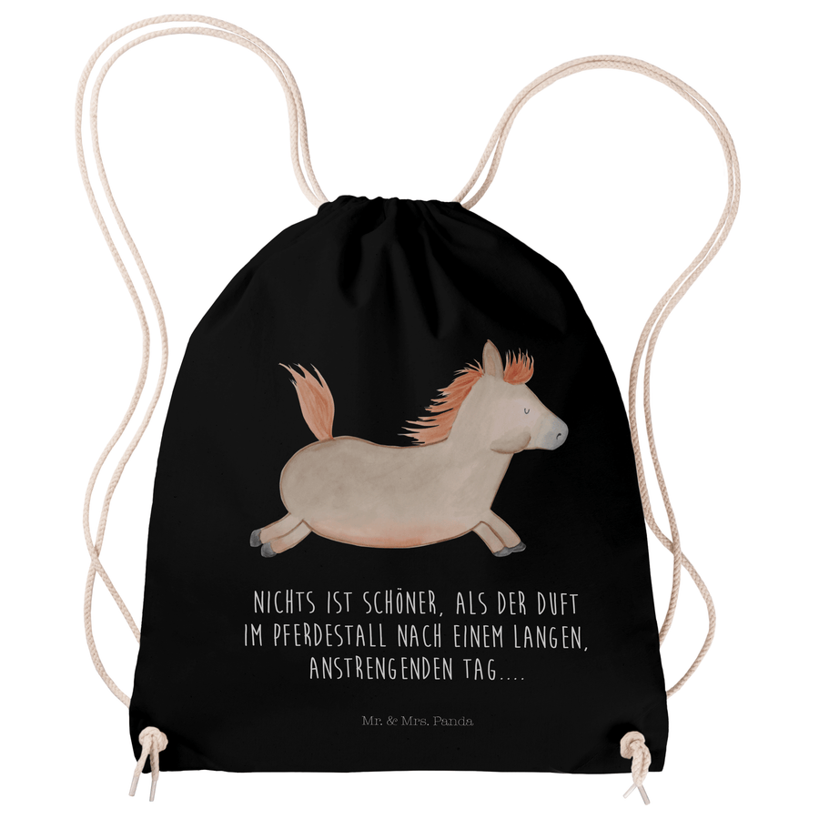 Sportbeutel Pferd springt - mit Spruch - Schwarz