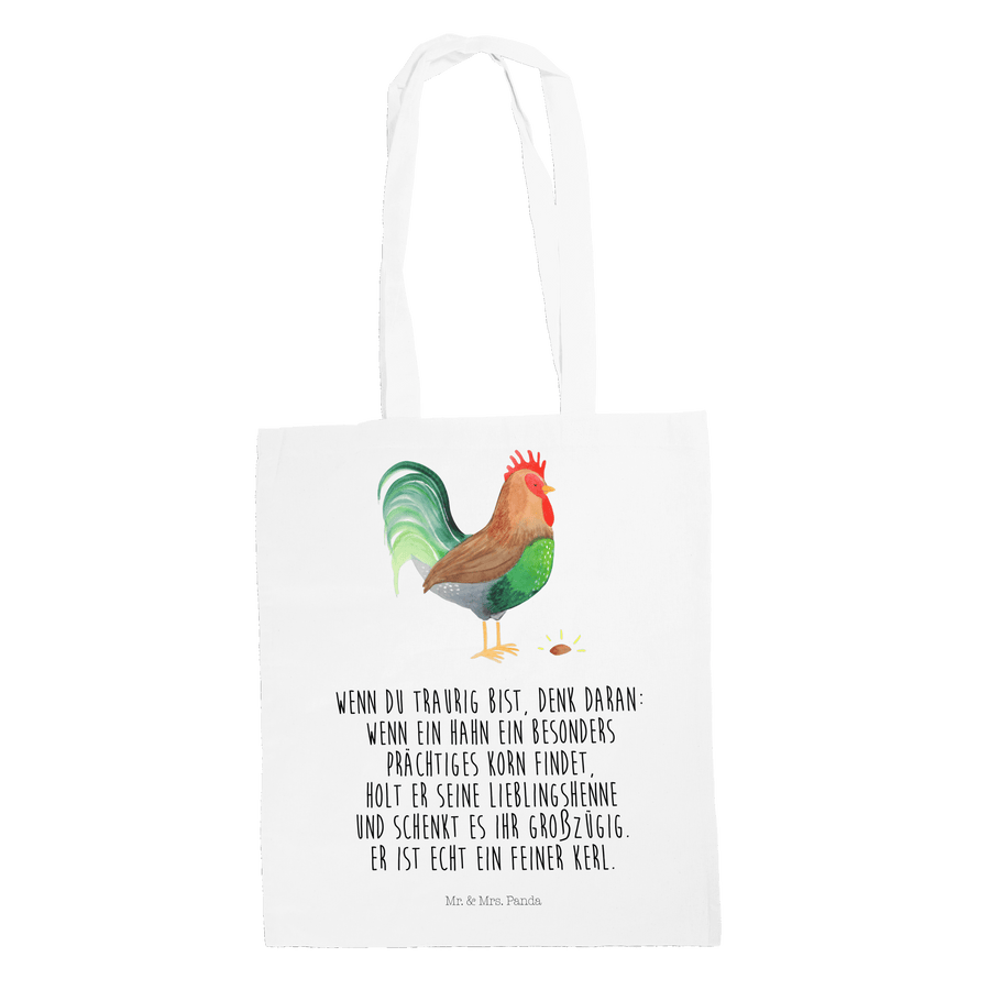 Tragetasche Hahn mit Korn - mit Spruch - Weiß