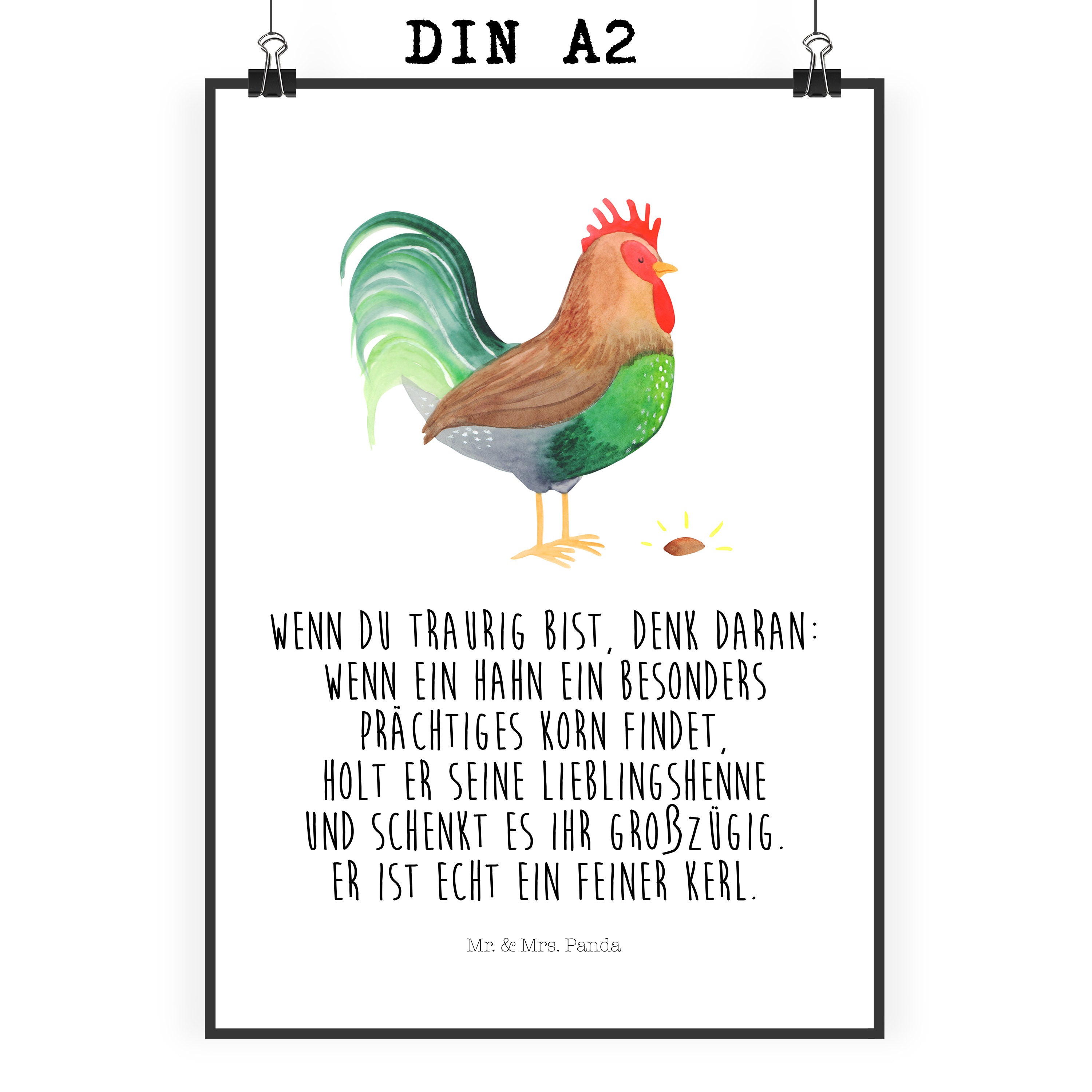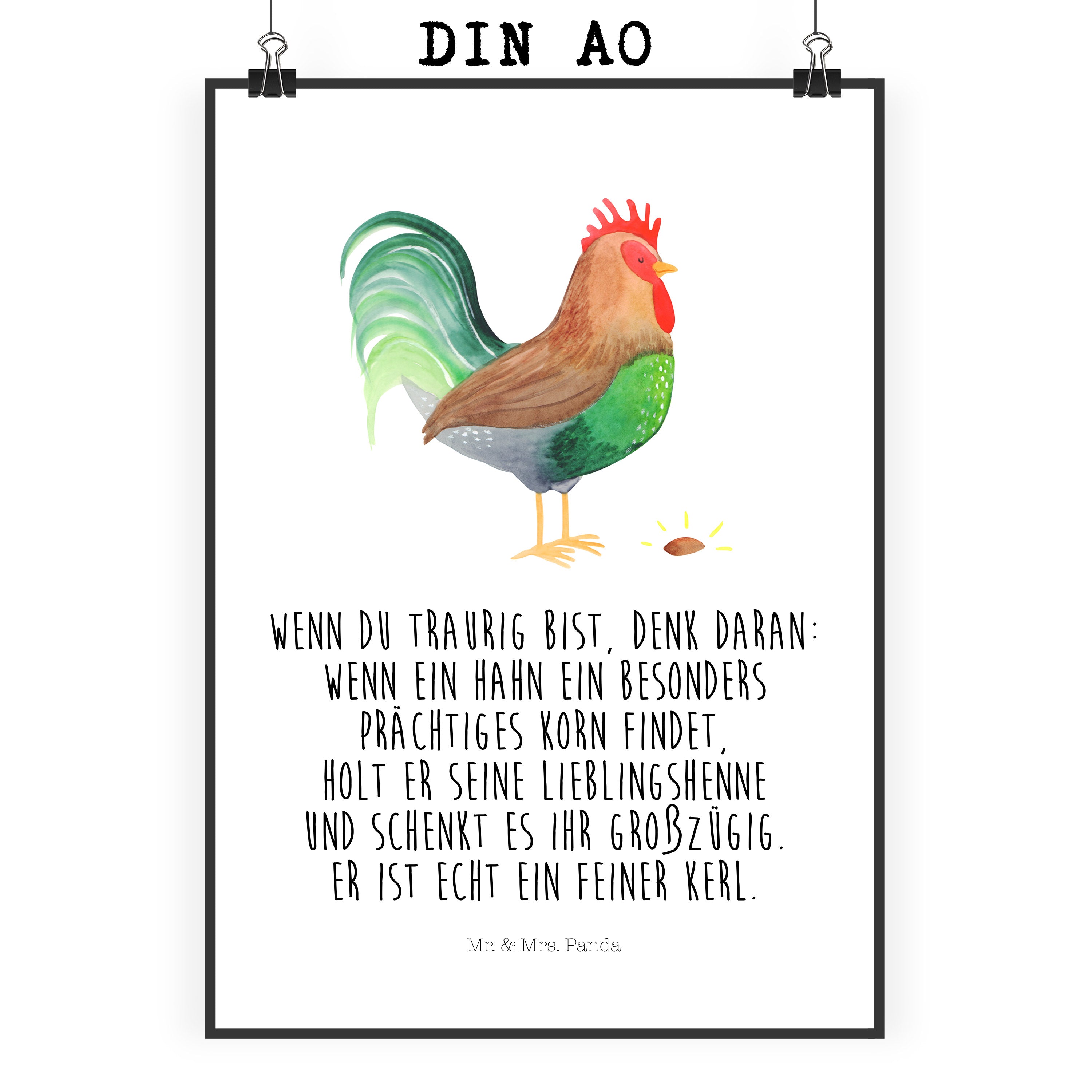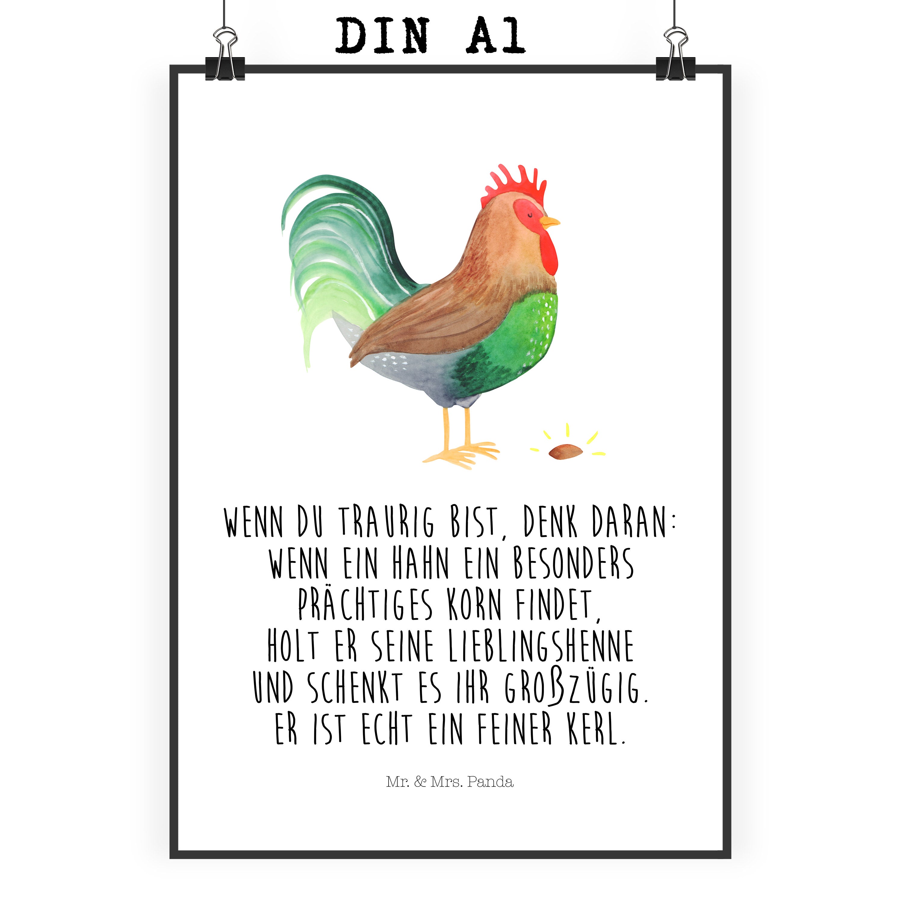 Poster Hahn mit Korn - DIN A0 - mit Spruch