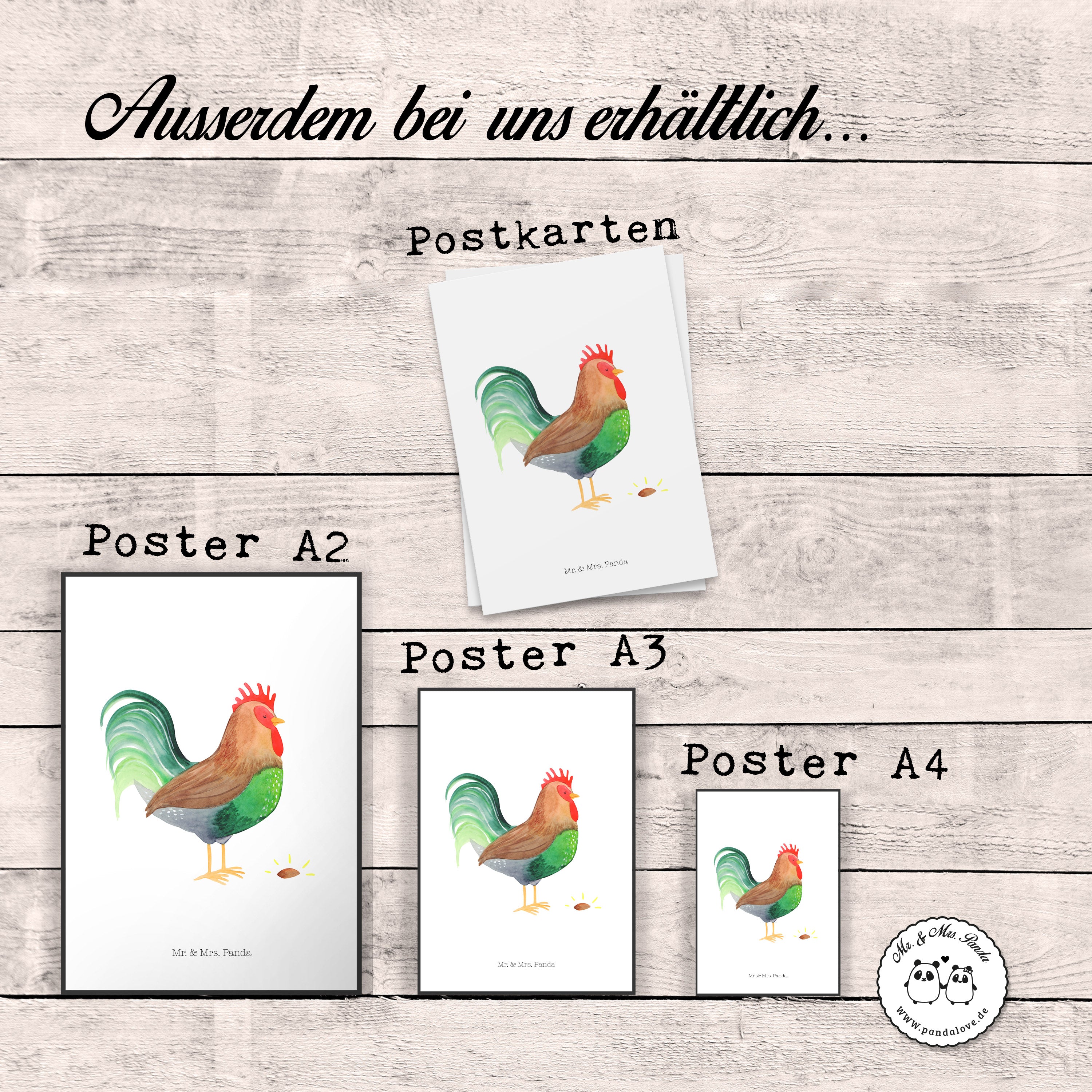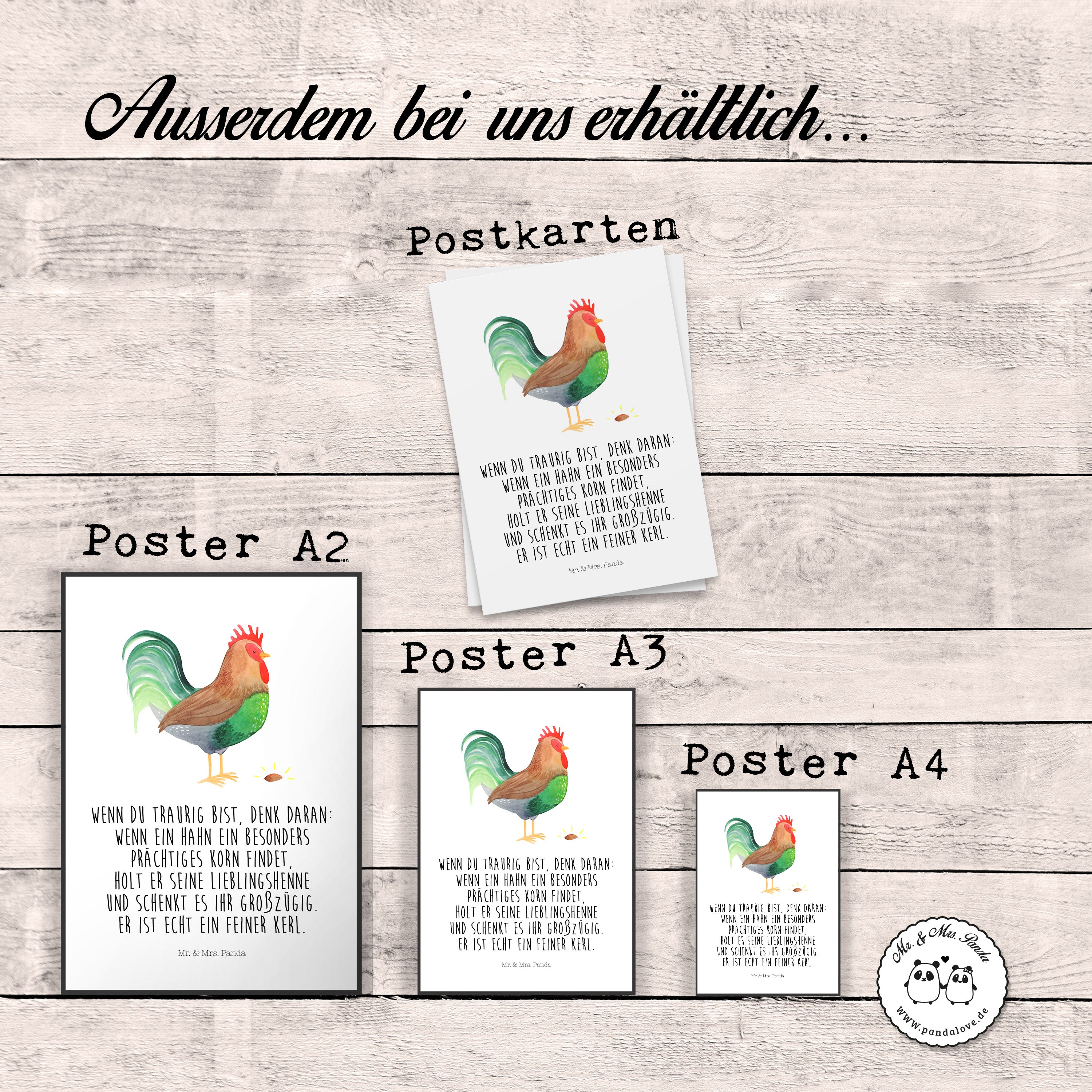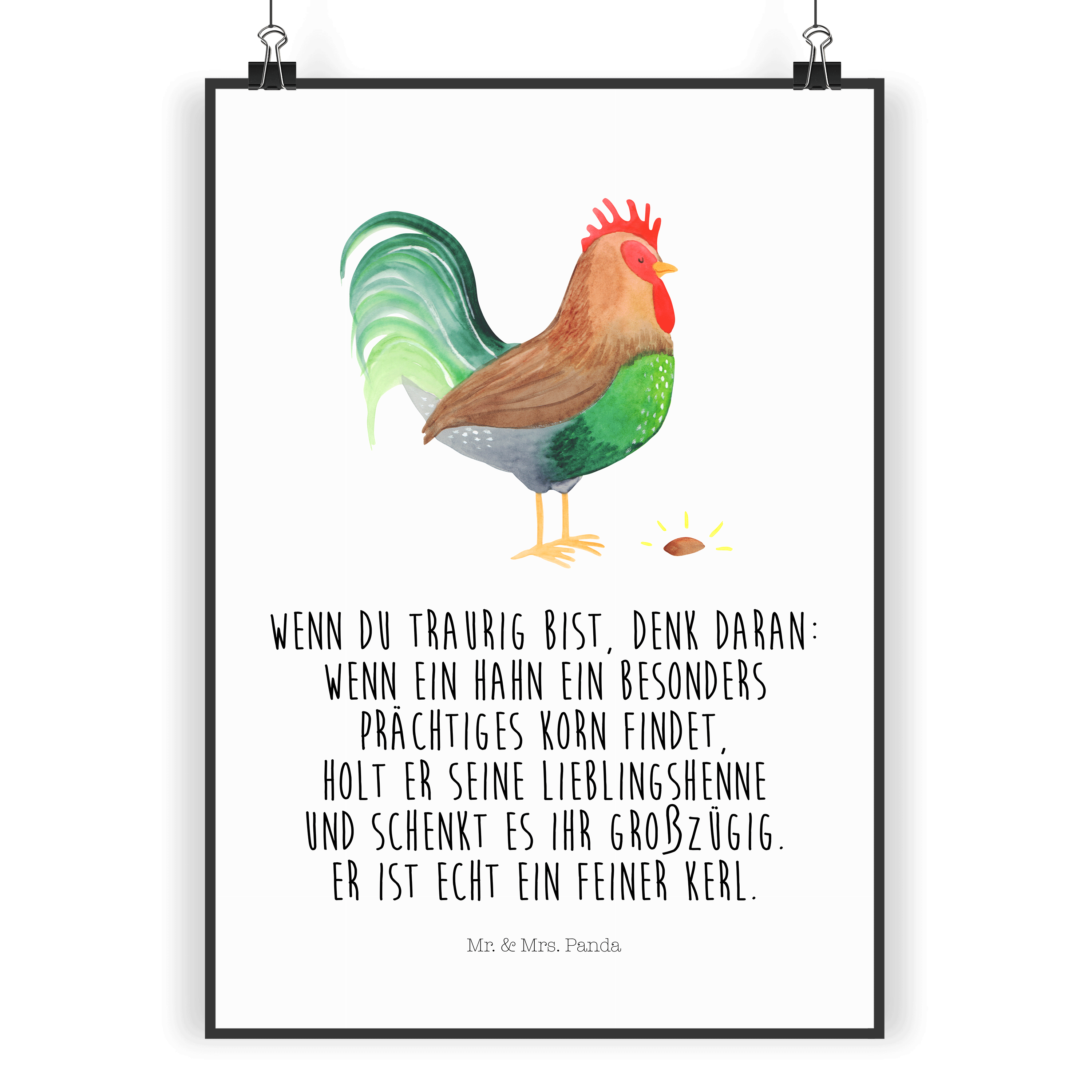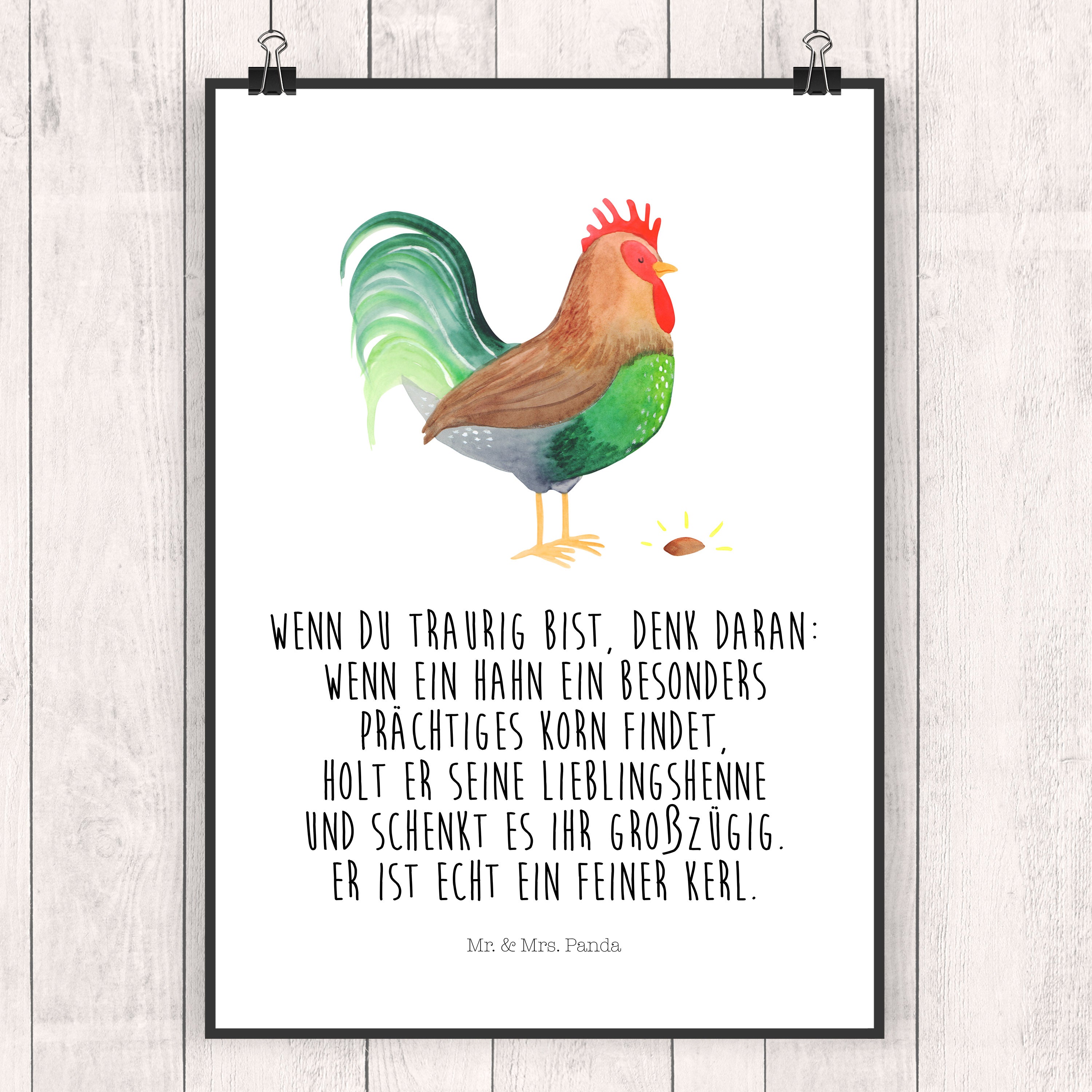 Poster Hahn mit Korn - DIN A0 - mit Spruch