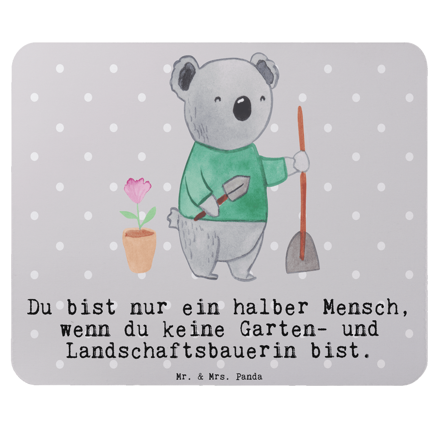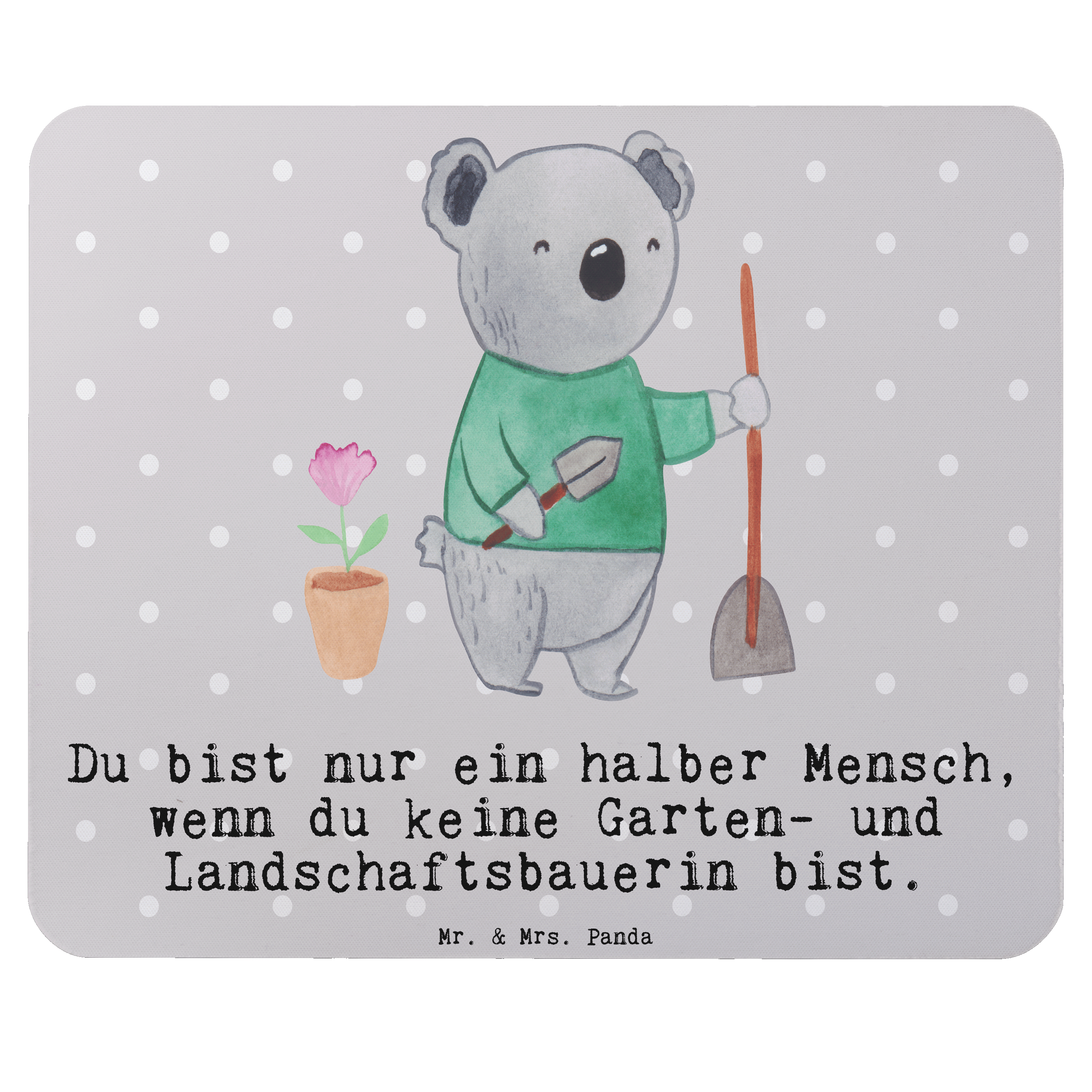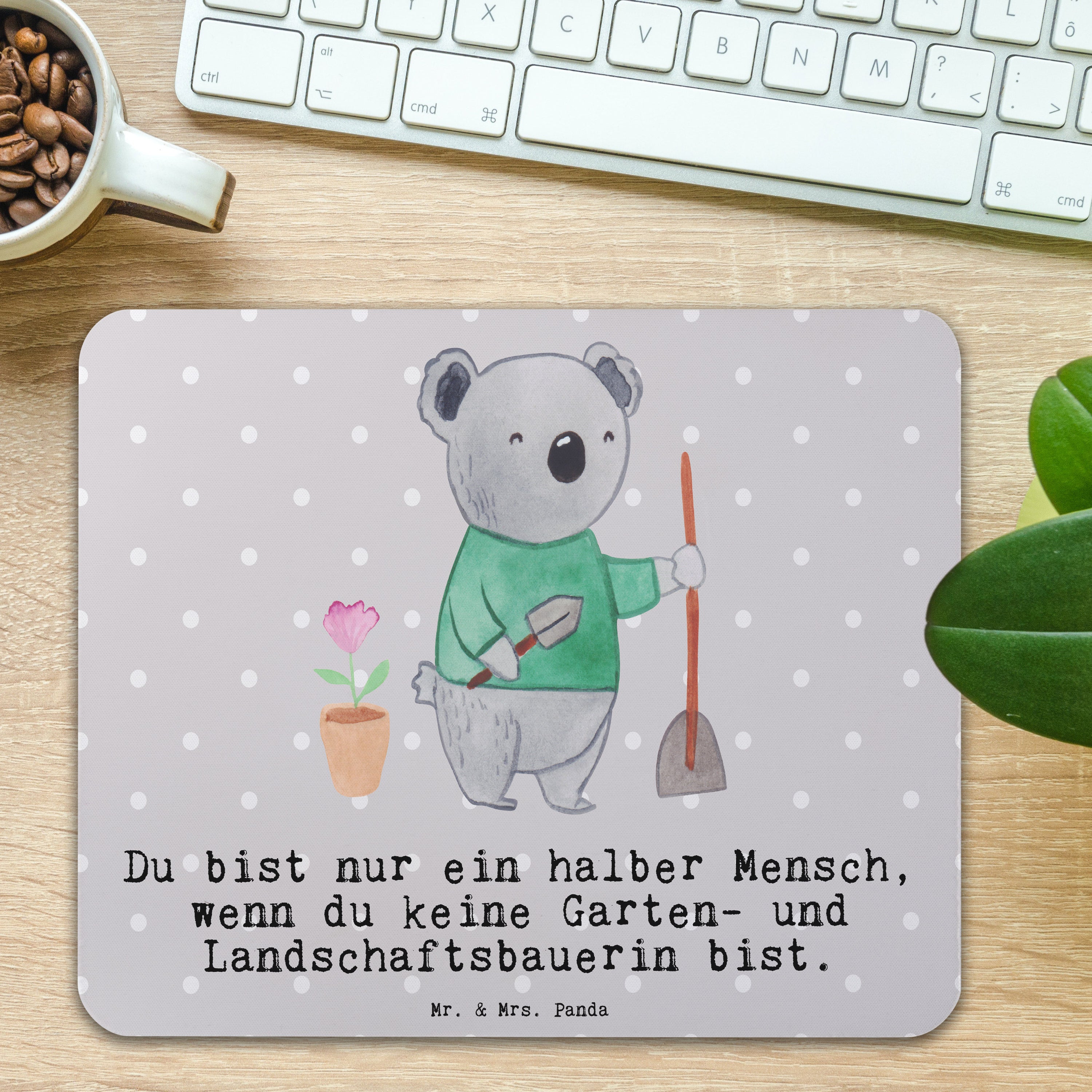 Mauspad Garten- und Landschaftsbauerin mit Herz - Grau Pastell