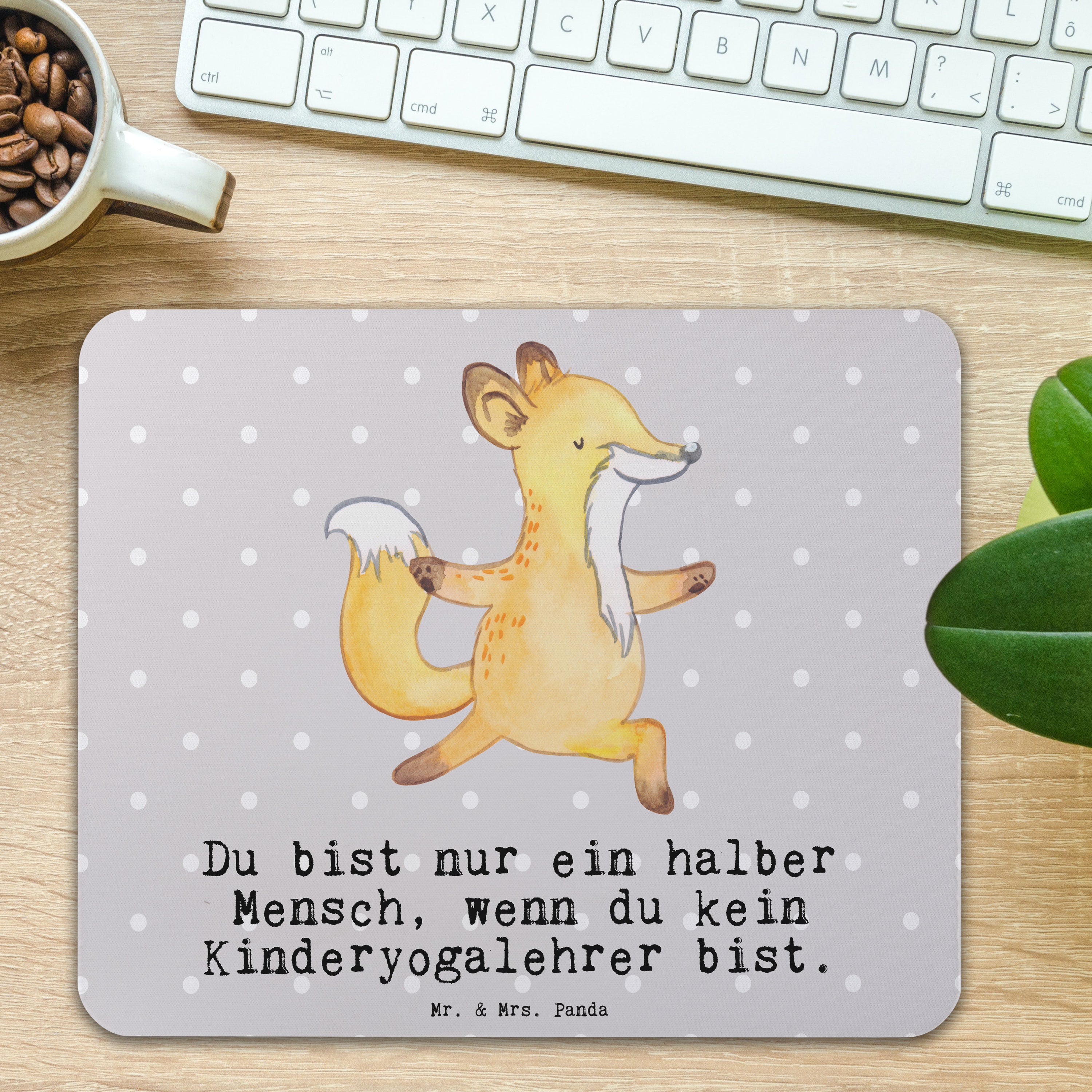 Mauspad Kinderyogalehrer mit Herz - Grau Pastell