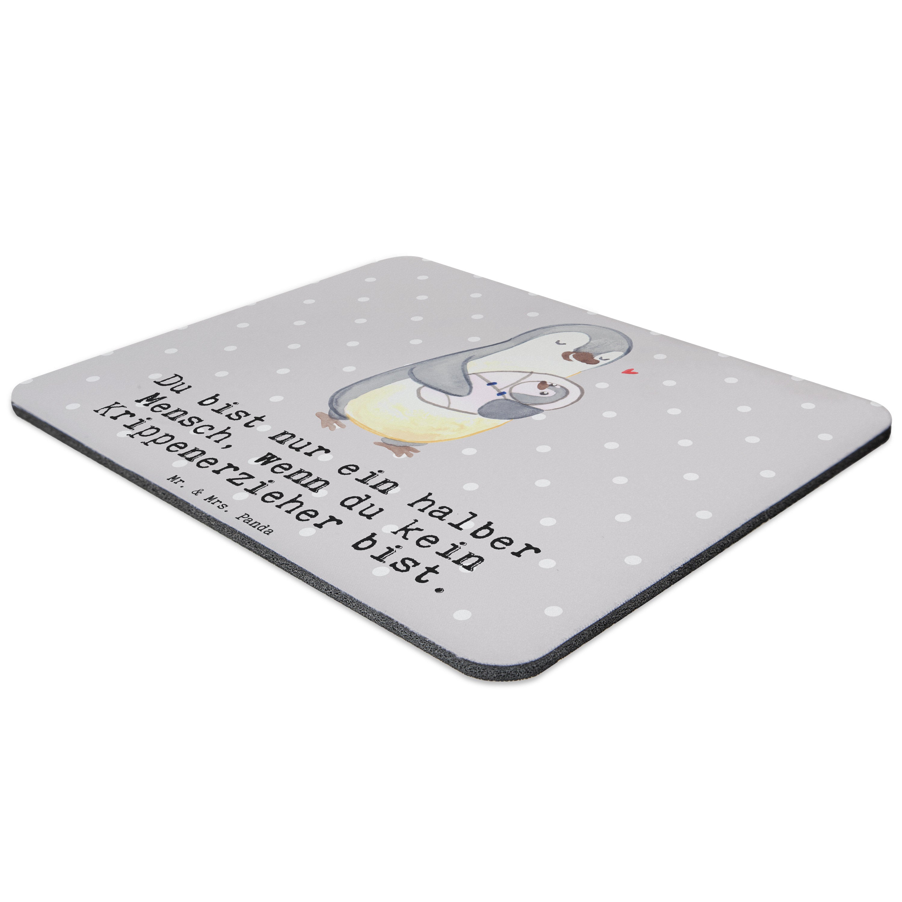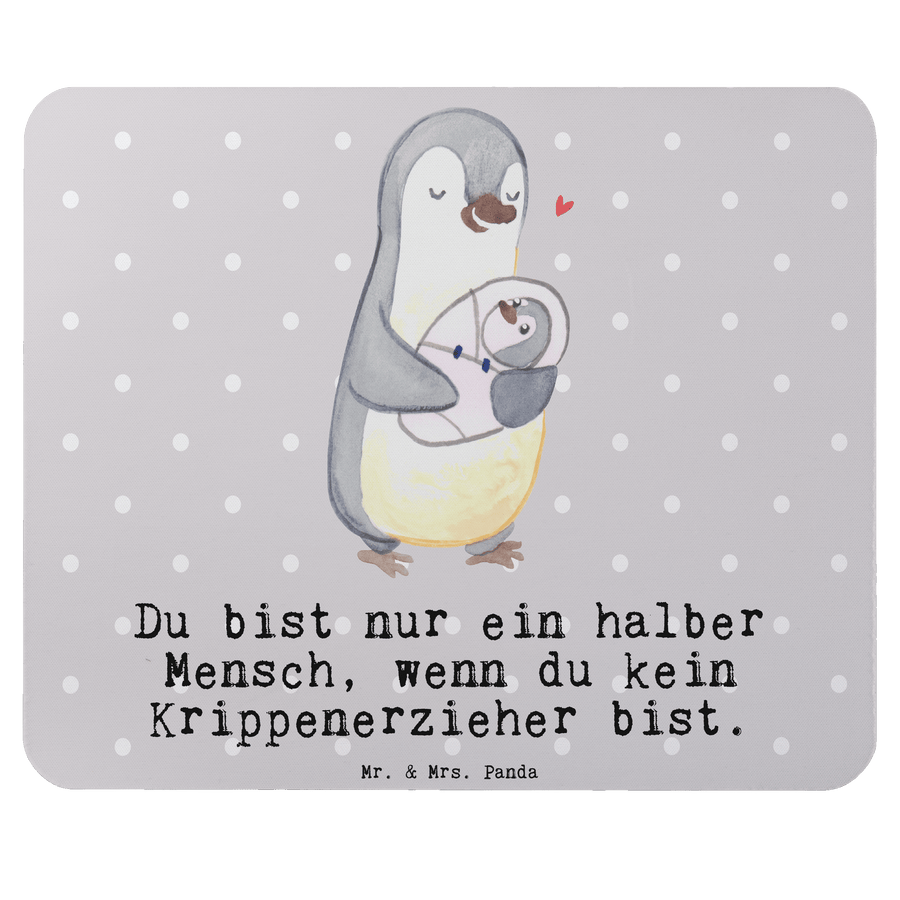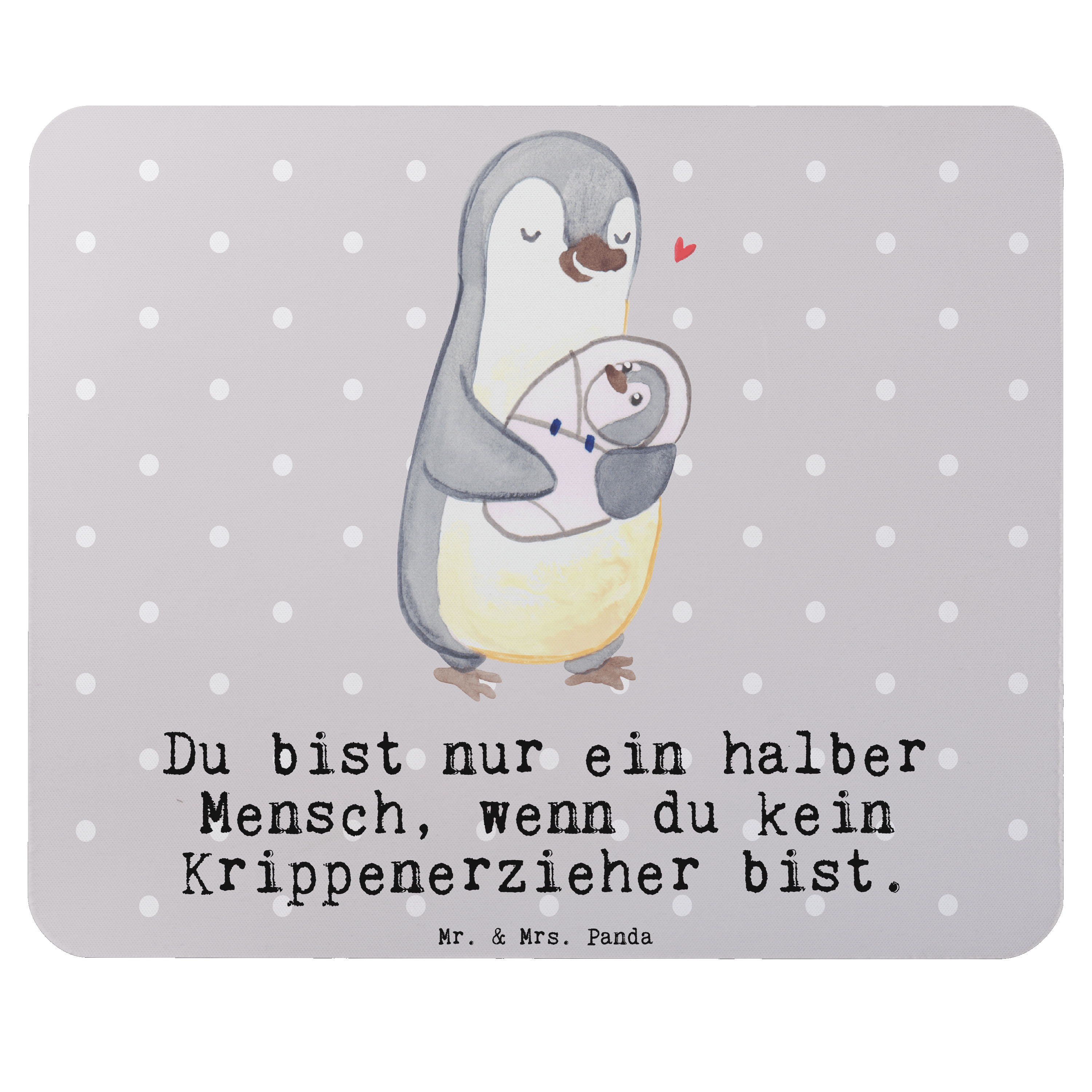 Mauspad Krippenerzieher mit Herz - Grau Pastell
