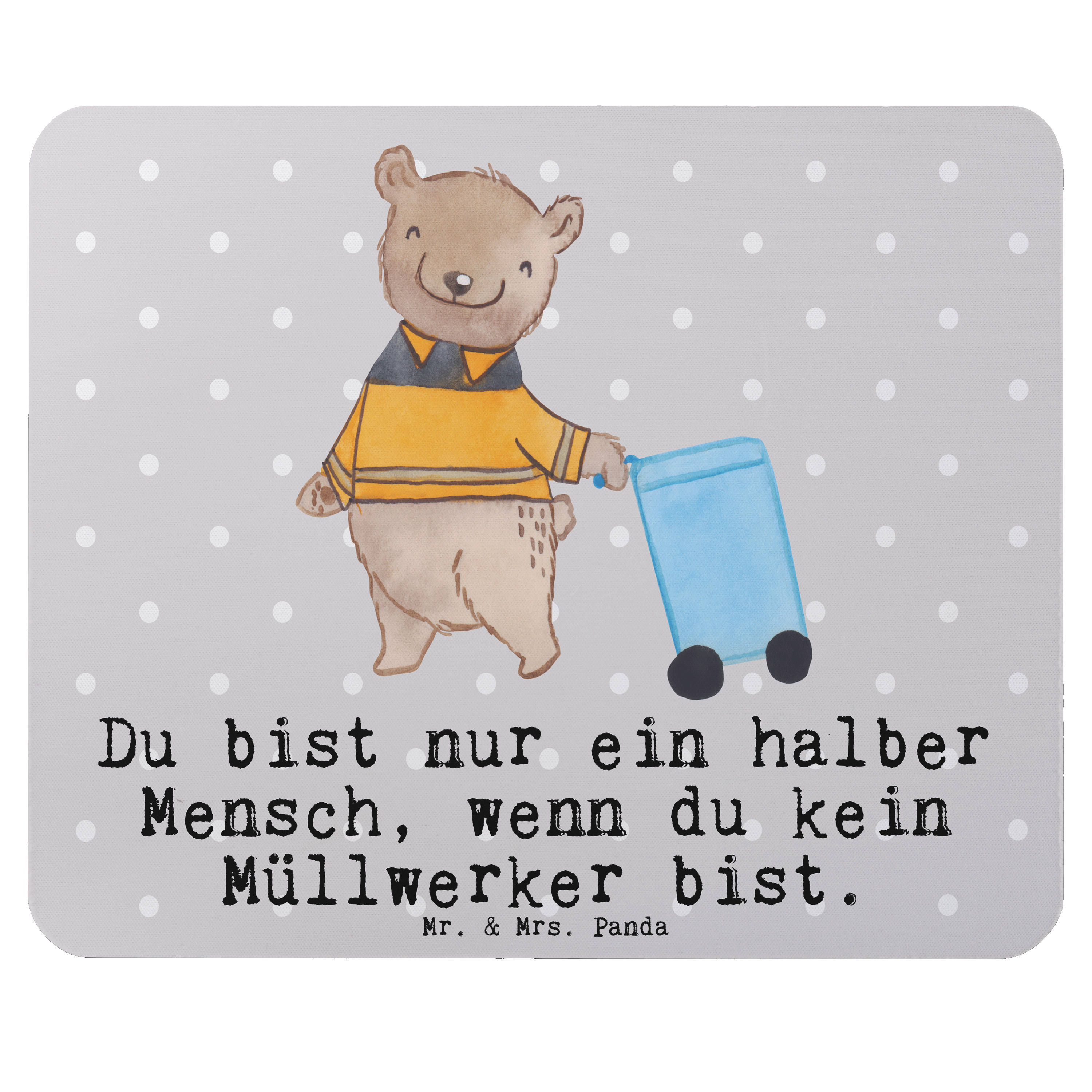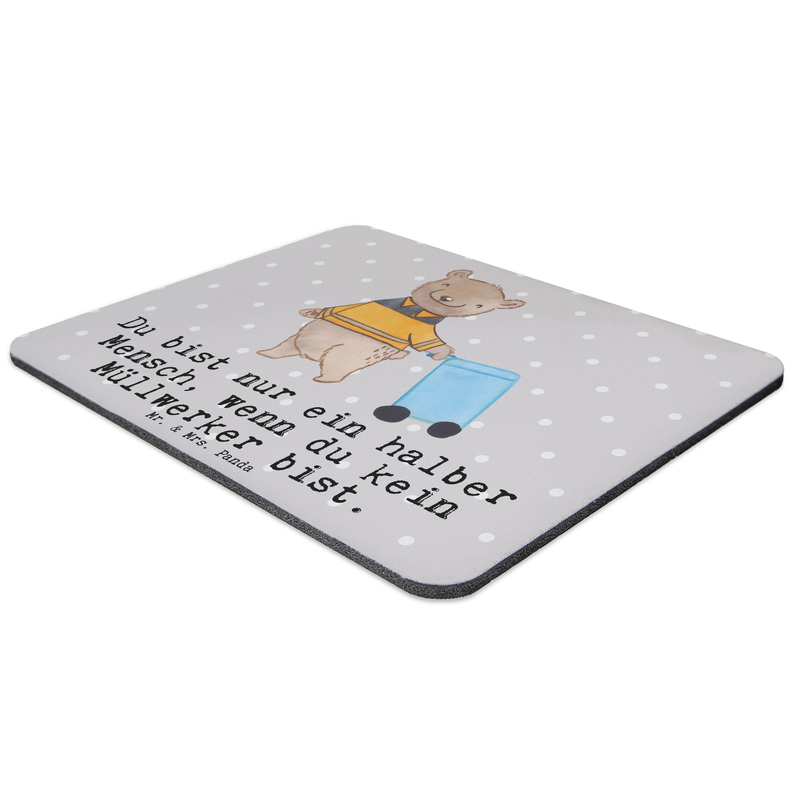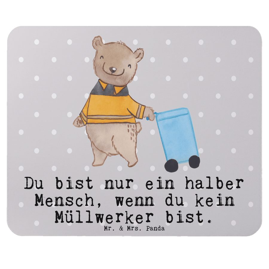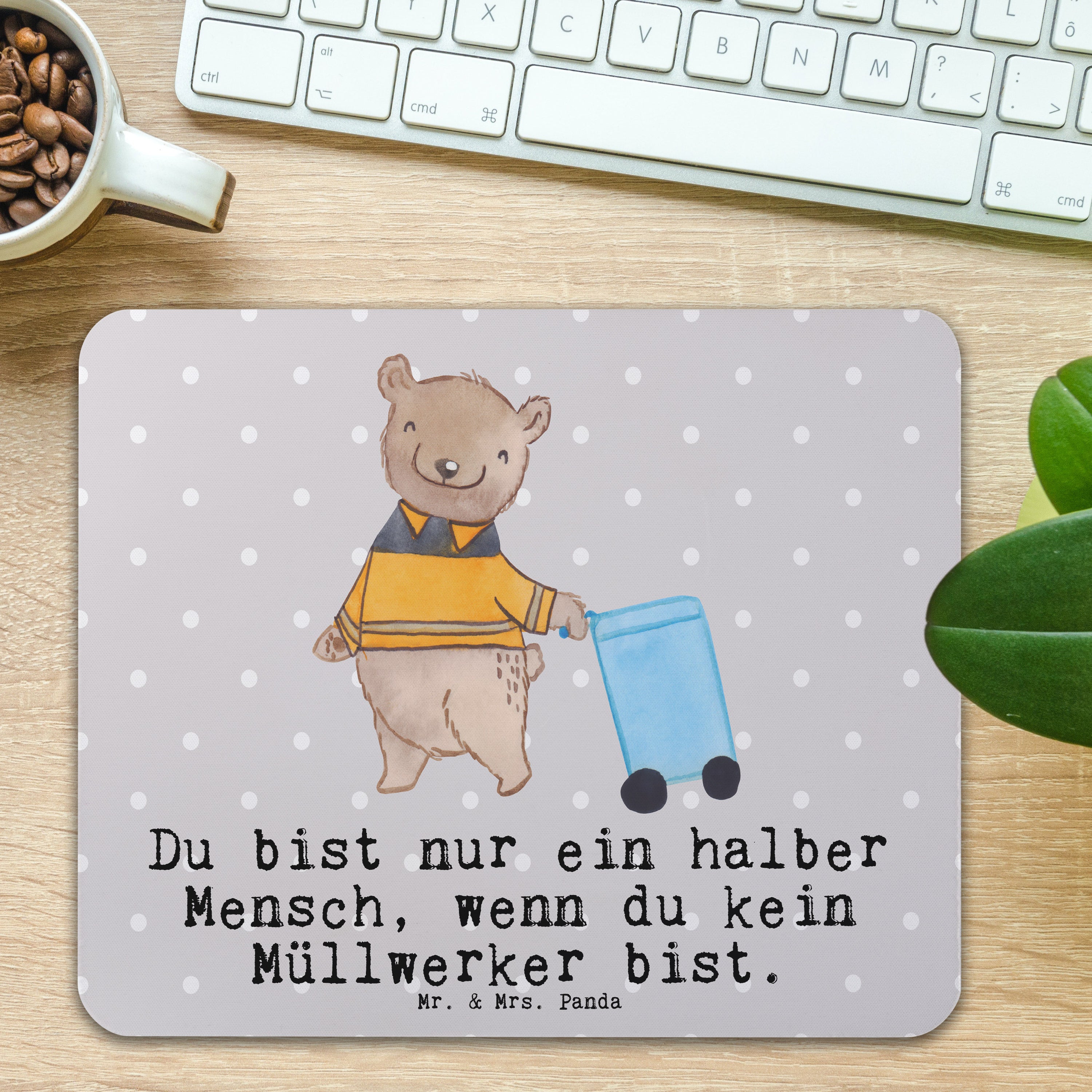 Mauspad Müllwerker mit Herz - Grau Pastell