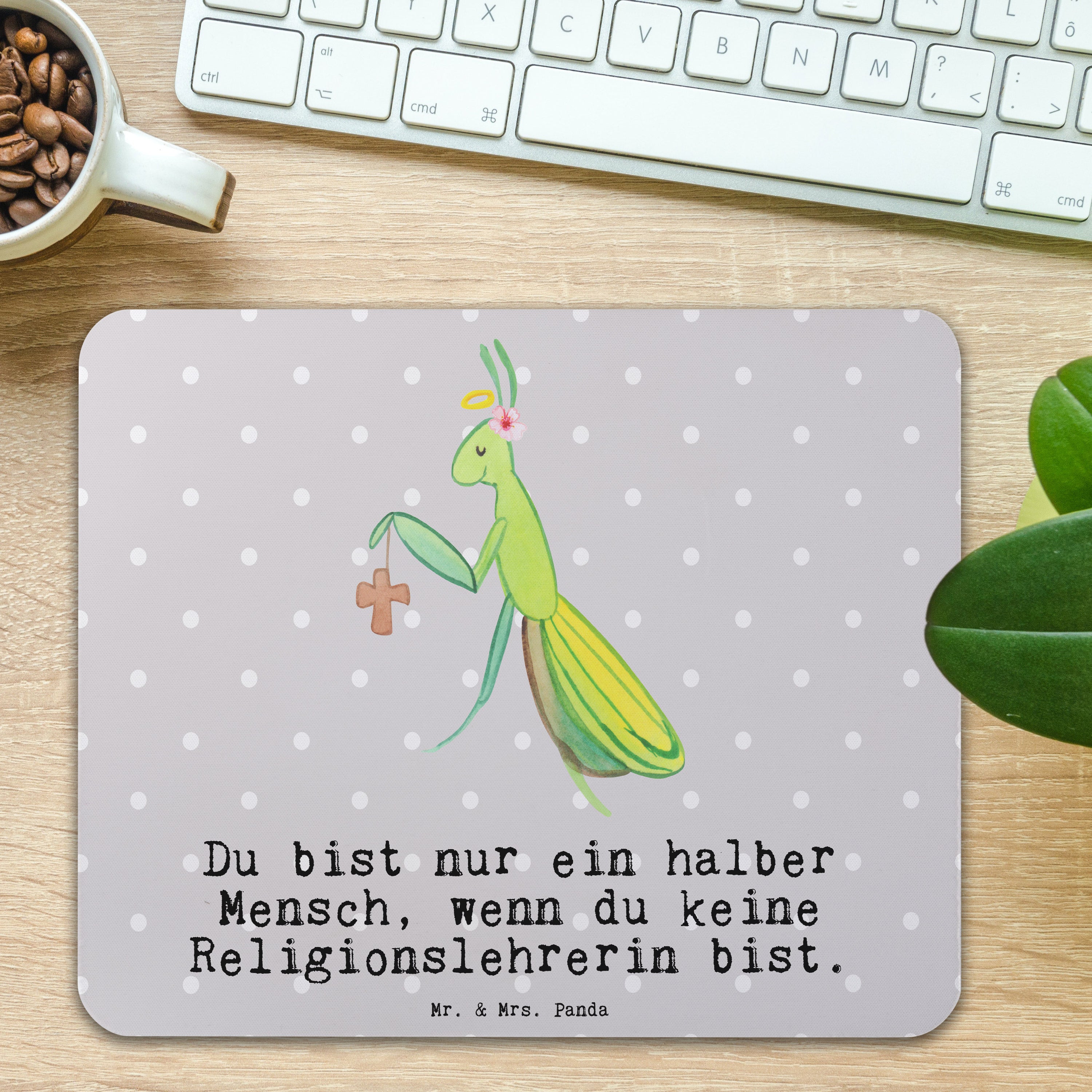 Mauspad Religionslehrerin mit Herz - Grau Pastell