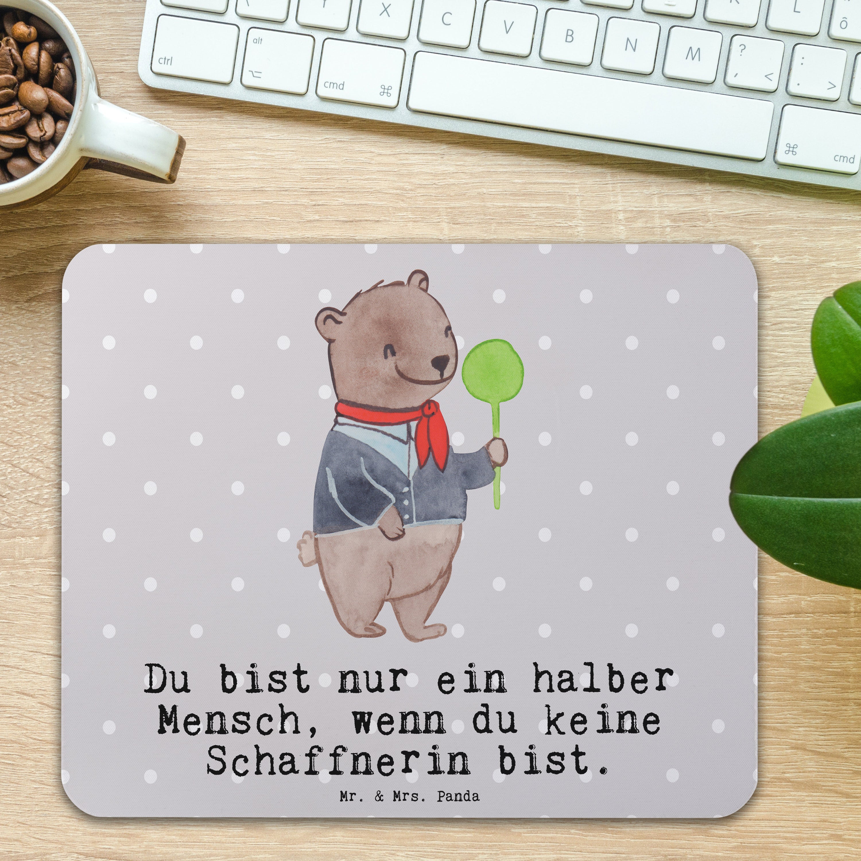 Mauspad Schaffnerin mit Herz - Grau Pastell