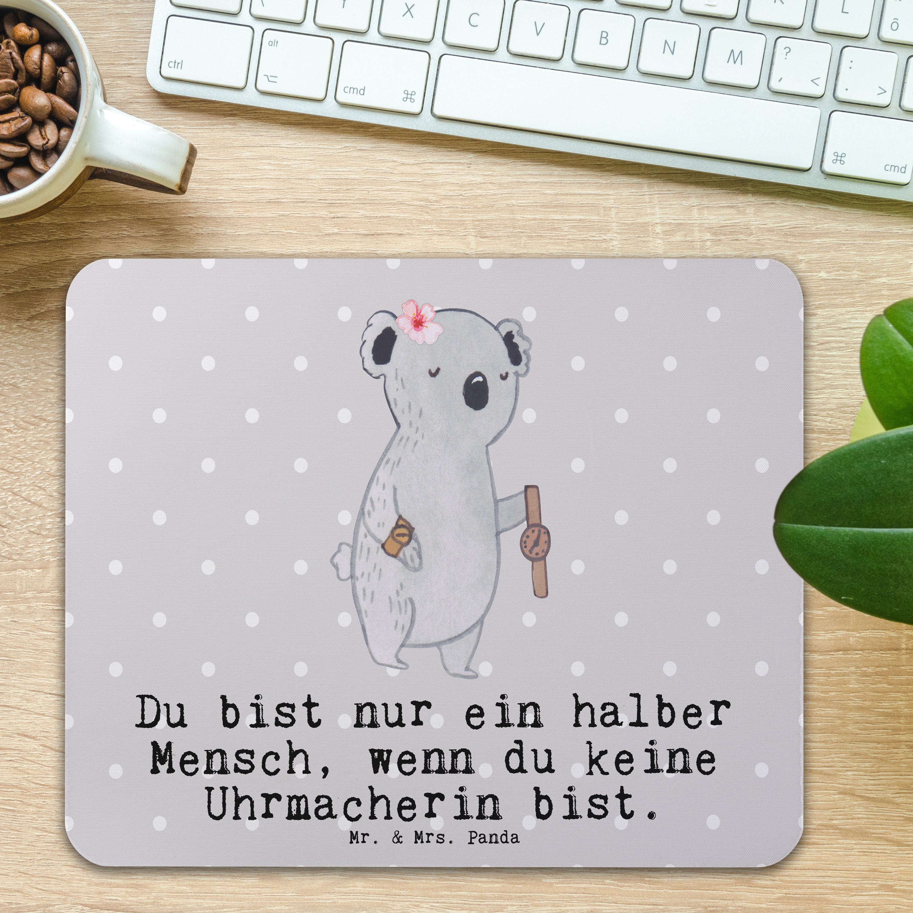 Mauspad Uhrmacherin mit Herz - Grau Pastell