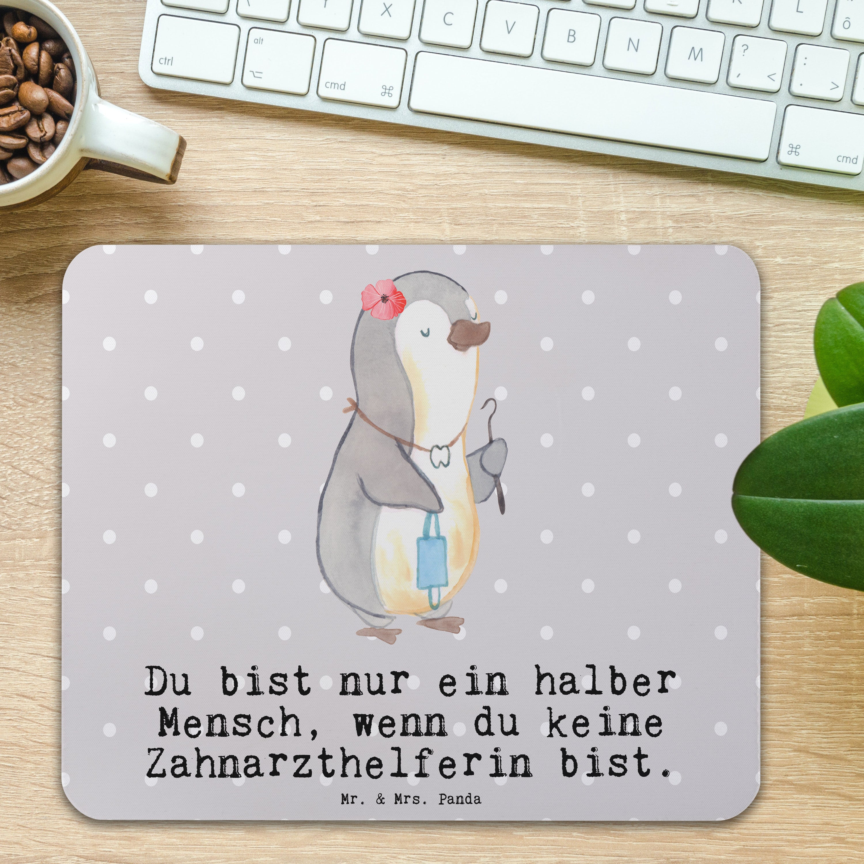 Mauspad Zahnarzthelferin mit Herz - Grau Pastell