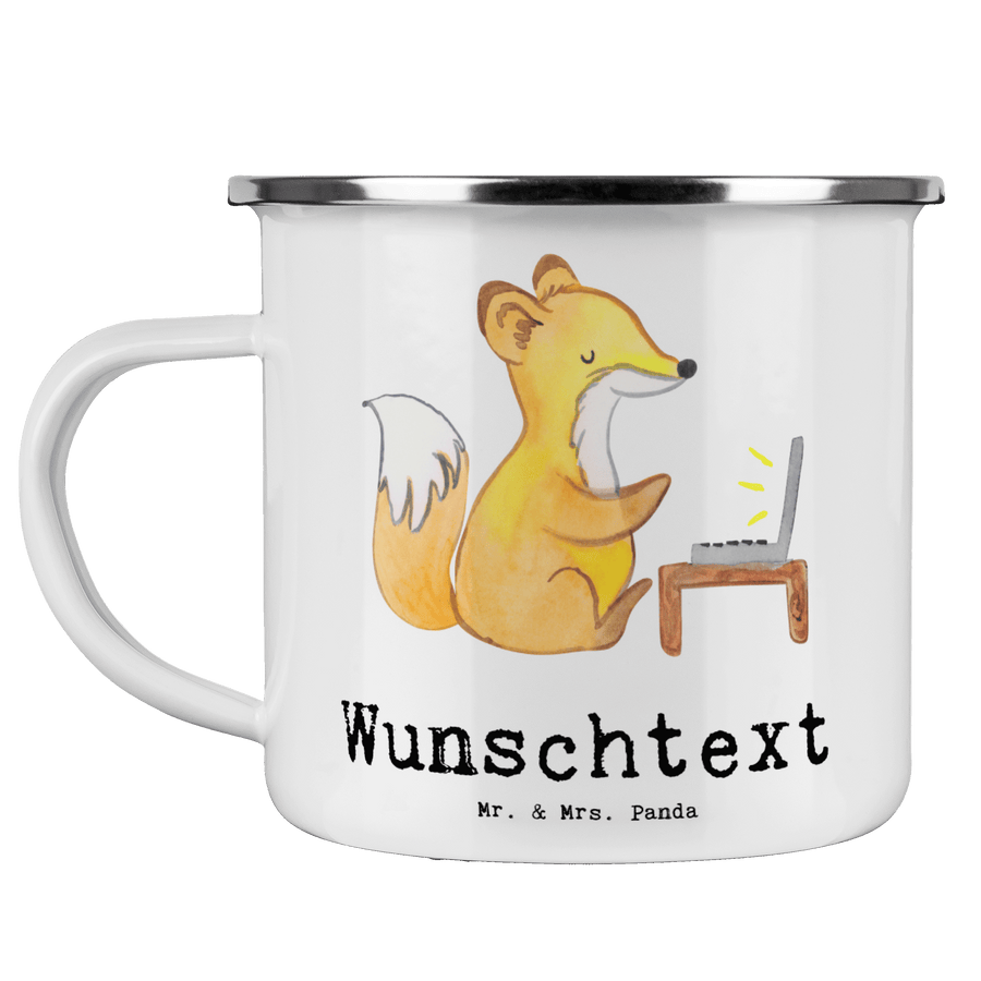 Diese wunderschöne personalisierte Emailletasse von Mr. & Mrs. Panda mit abgesetztem Edelstahl Rand in Emaille Optik ist der perfekte, bruchsichere Begleiter für dein nächstes Abenteuer. Sie wird von uns liebevoll mit deinem Namen oder Wunschnamen bedruckt. Das Füllvolumen des Bechers beträgt 300 ml. So sind die Motivtassen ideal beim Camping als Campingbecher einsetzbar.