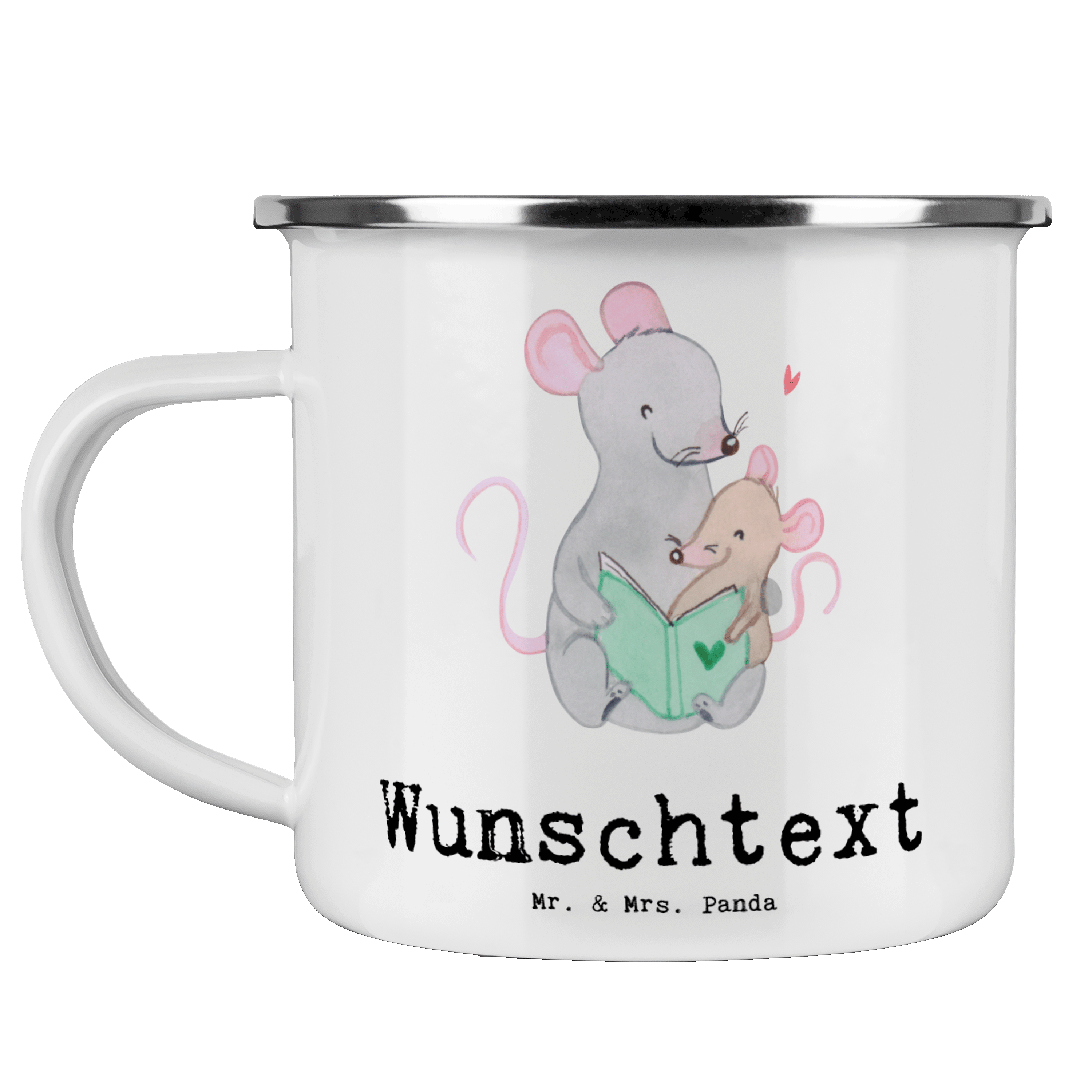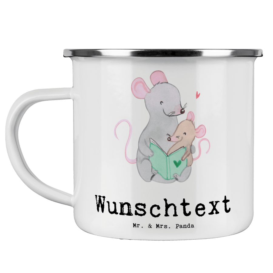 Diese wunderschöne personalisierte Emailletasse von Mr. & Mrs. Panda mit abgesetztem Edelstahl Rand in Emaille Optik ist der perfekte, bruchsichere Begleiter für dein nächstes Abenteuer. Sie wird von uns liebevoll mit deinem Namen oder Wunschnamen bedruckt. Das Füllvolumen des Bechers beträgt 300 ml. So sind die Motivtassen ideal beim Camping als Campingbecher einsetzbar.