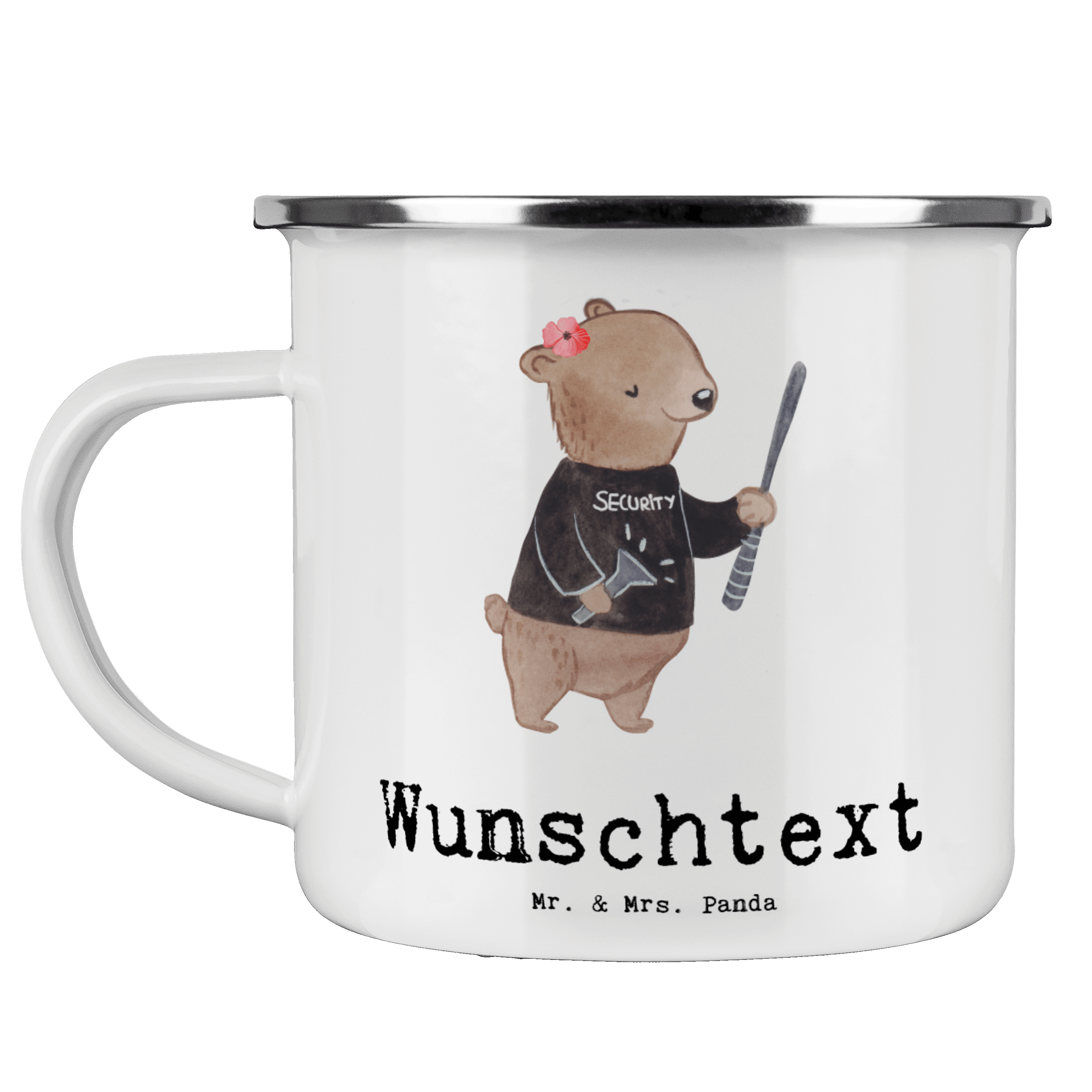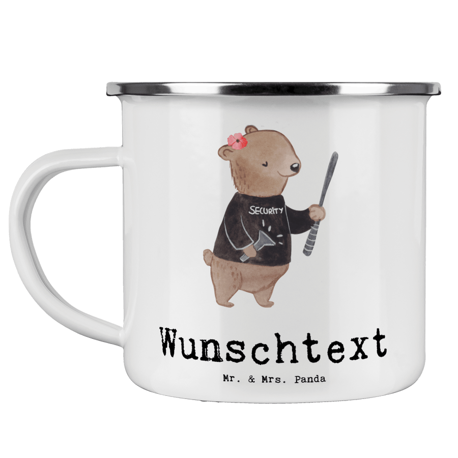 Personalisierte Emaille Tasse Security Mitarbeiterin mit Herz
